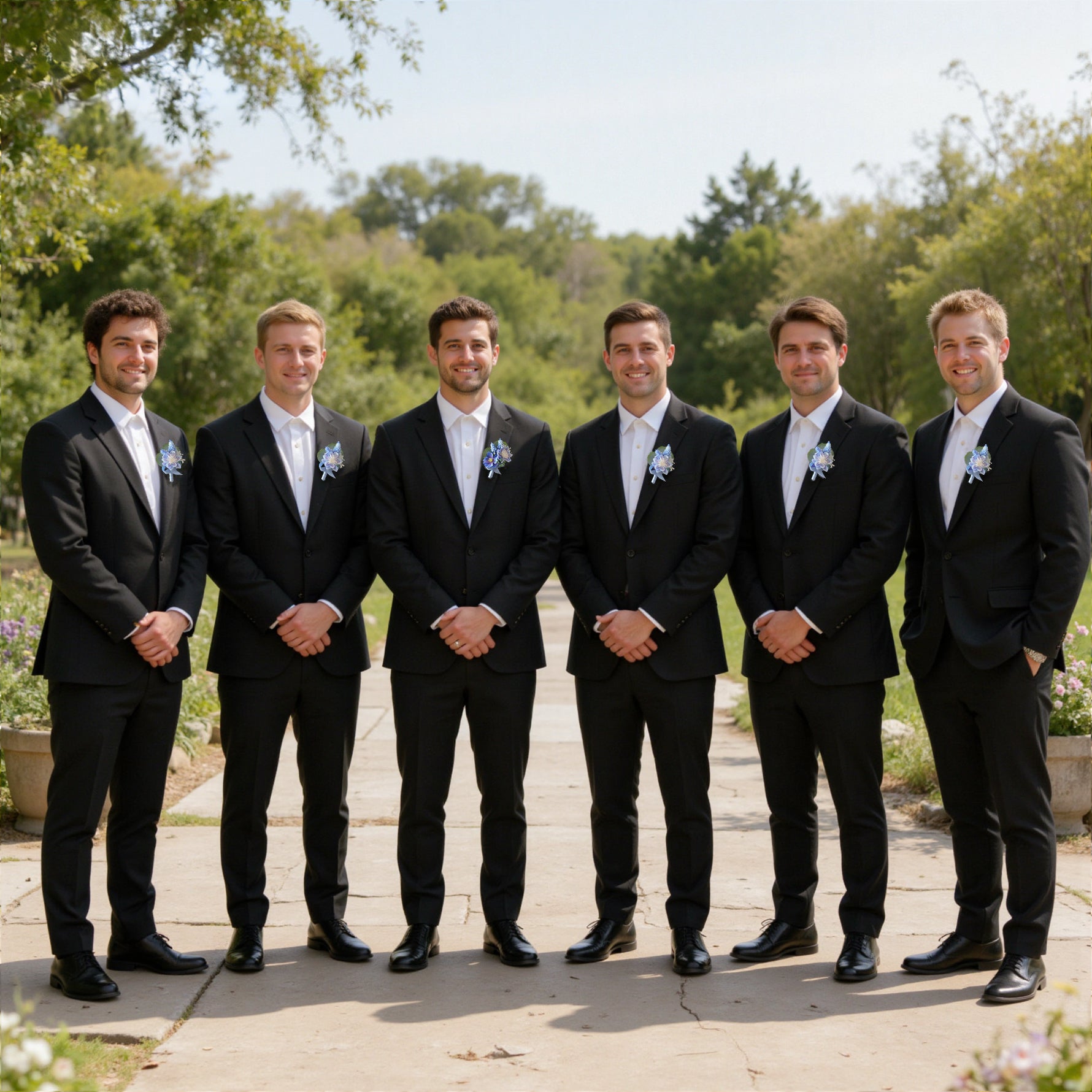 Size and package: Each boutonniere is approx. 0.26ft L x 0.16ft W, suitable for all men; The set includes six boutonnieres in tota. 1 for Groom, and others for groomsmen or any important guest.