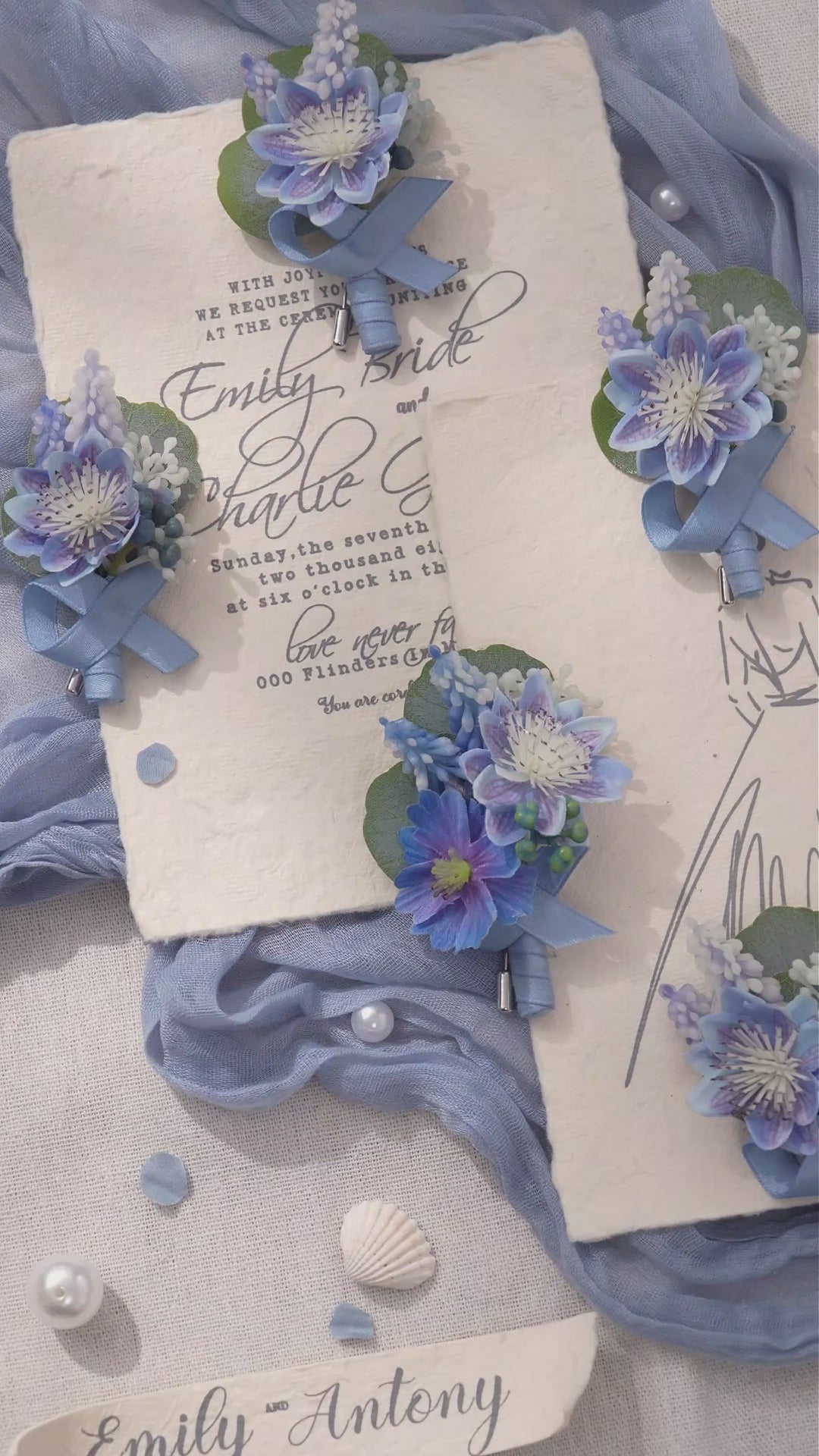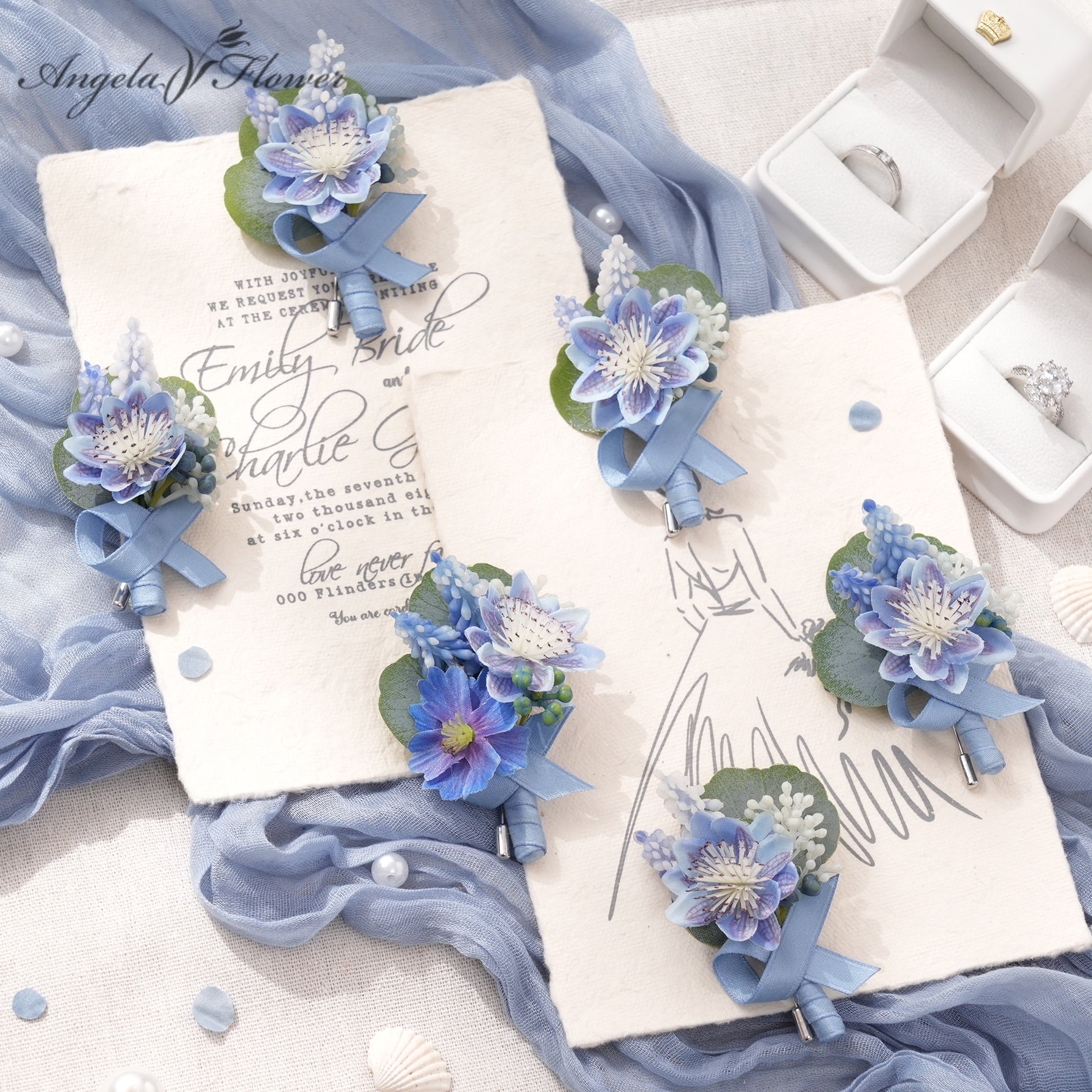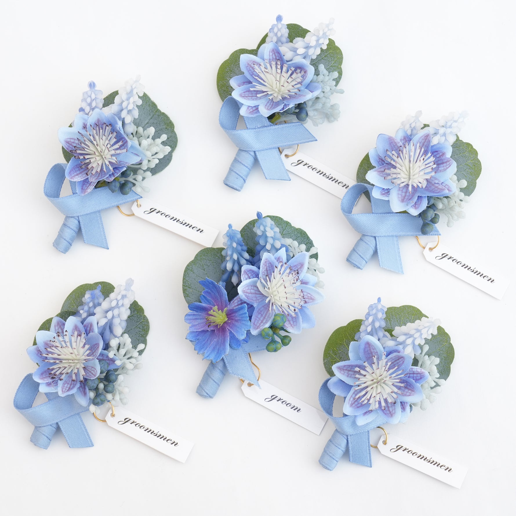 A9006 6pcs/set Blue Artificial Borsages Boutonniere Romantic Wedding Floral Accessories
