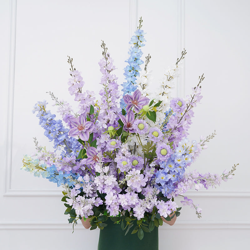 A8802 Purple Delphinium Wedding Floor Row Table Floor Floral Arrangement Decor Props