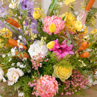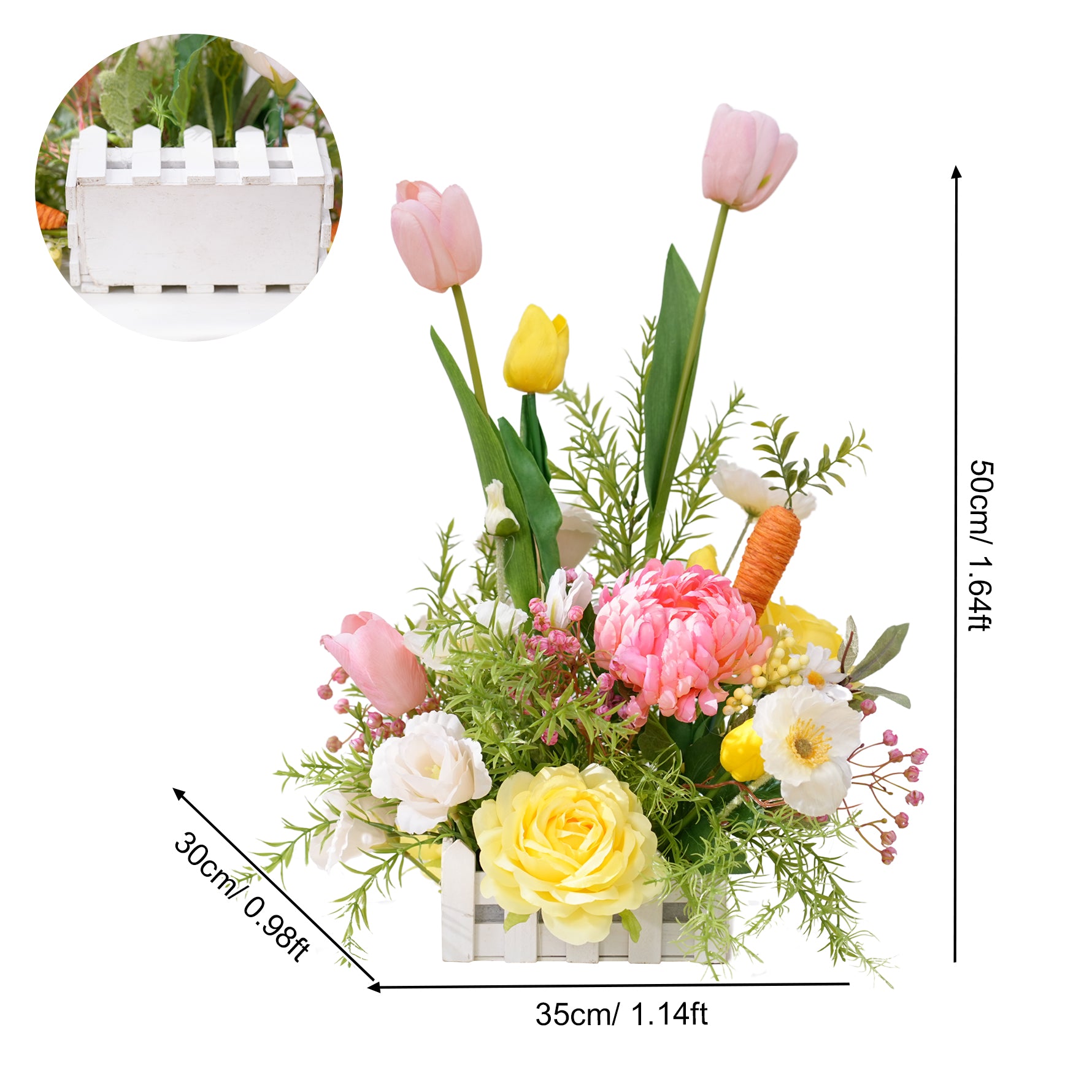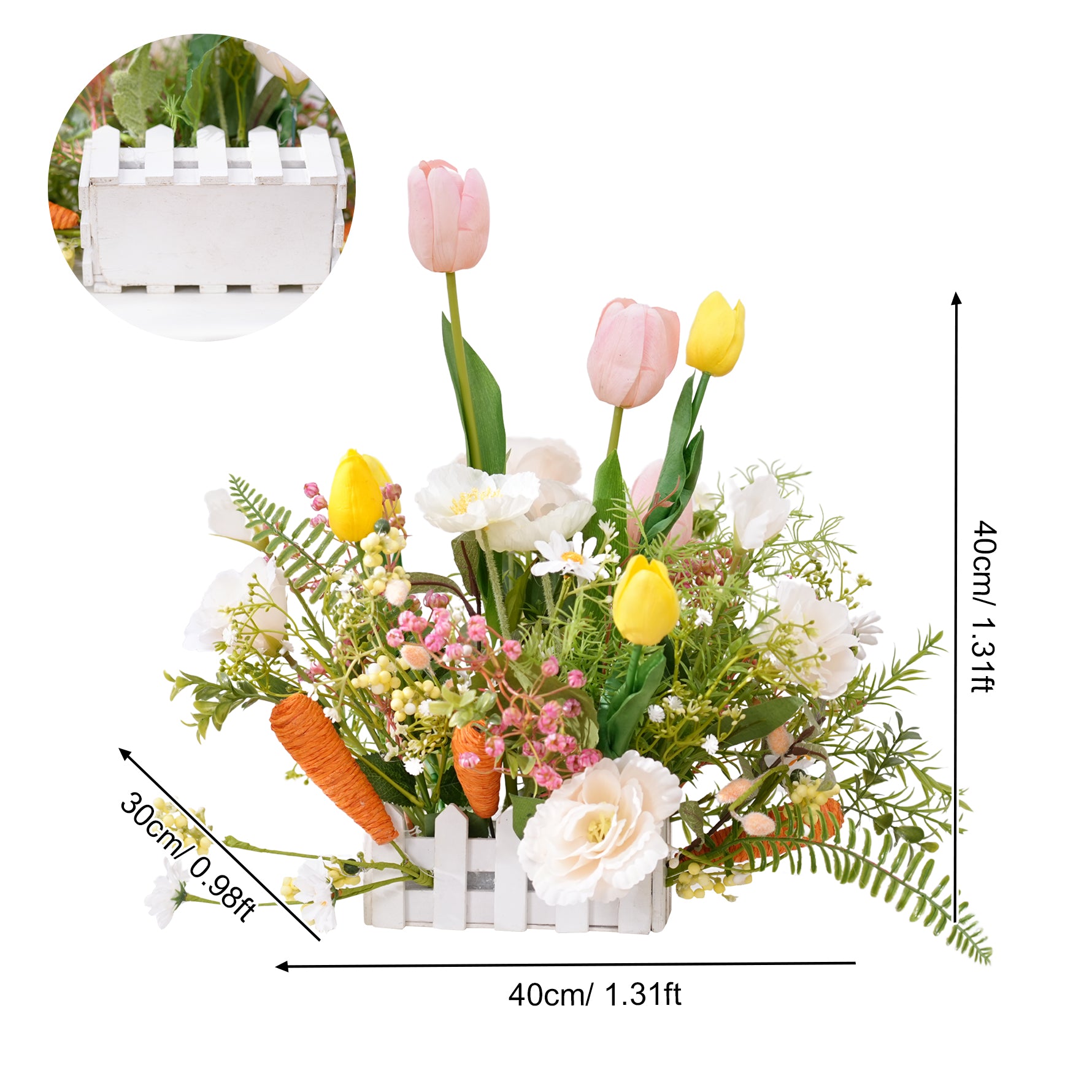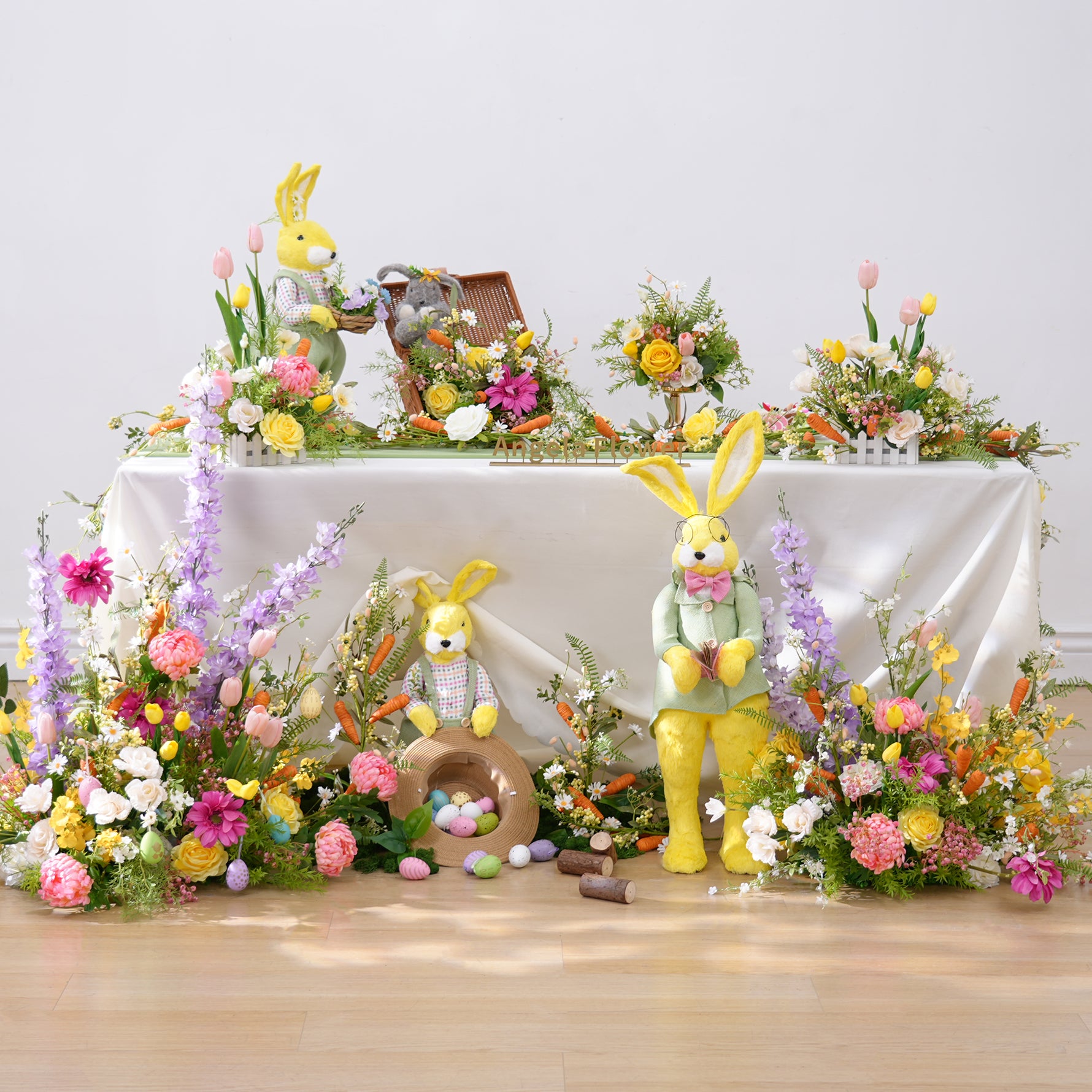 Color Inspiration: Flower arrangement consisting of various colorful flowers with cute radish decorations in lively and cute Easter tones, meet all your Easter dress up needs and give you a memorable Easter party.