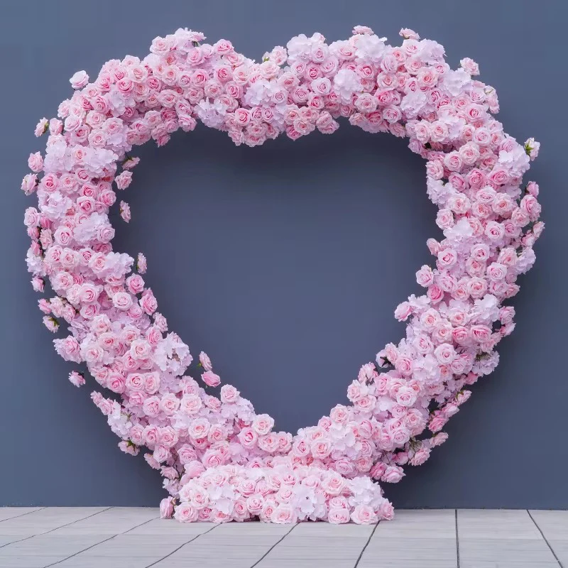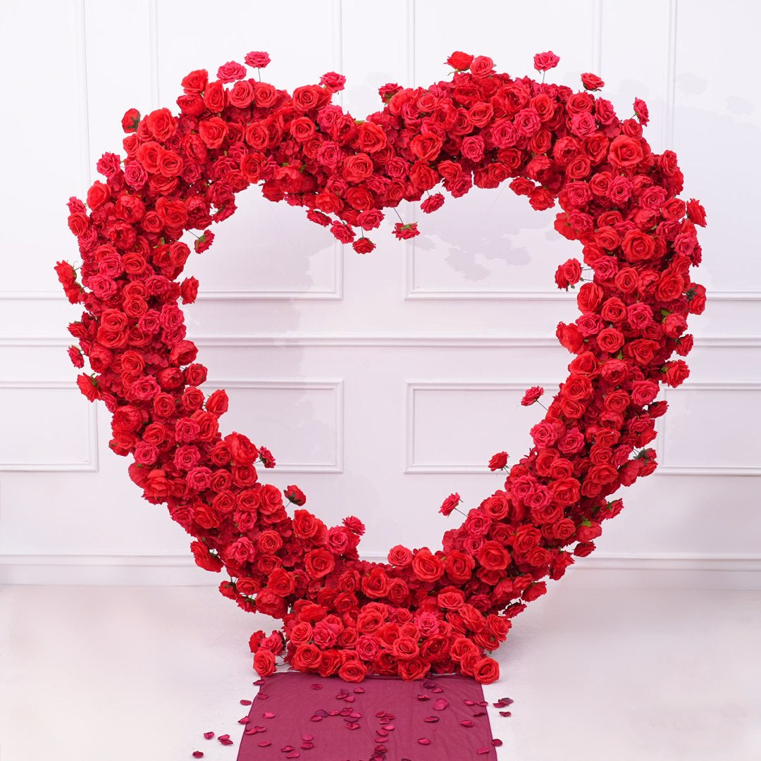 A8203 Cloth Base White Rose Floral Arrangement Wedding Backdrop Heart-Shaped Arch