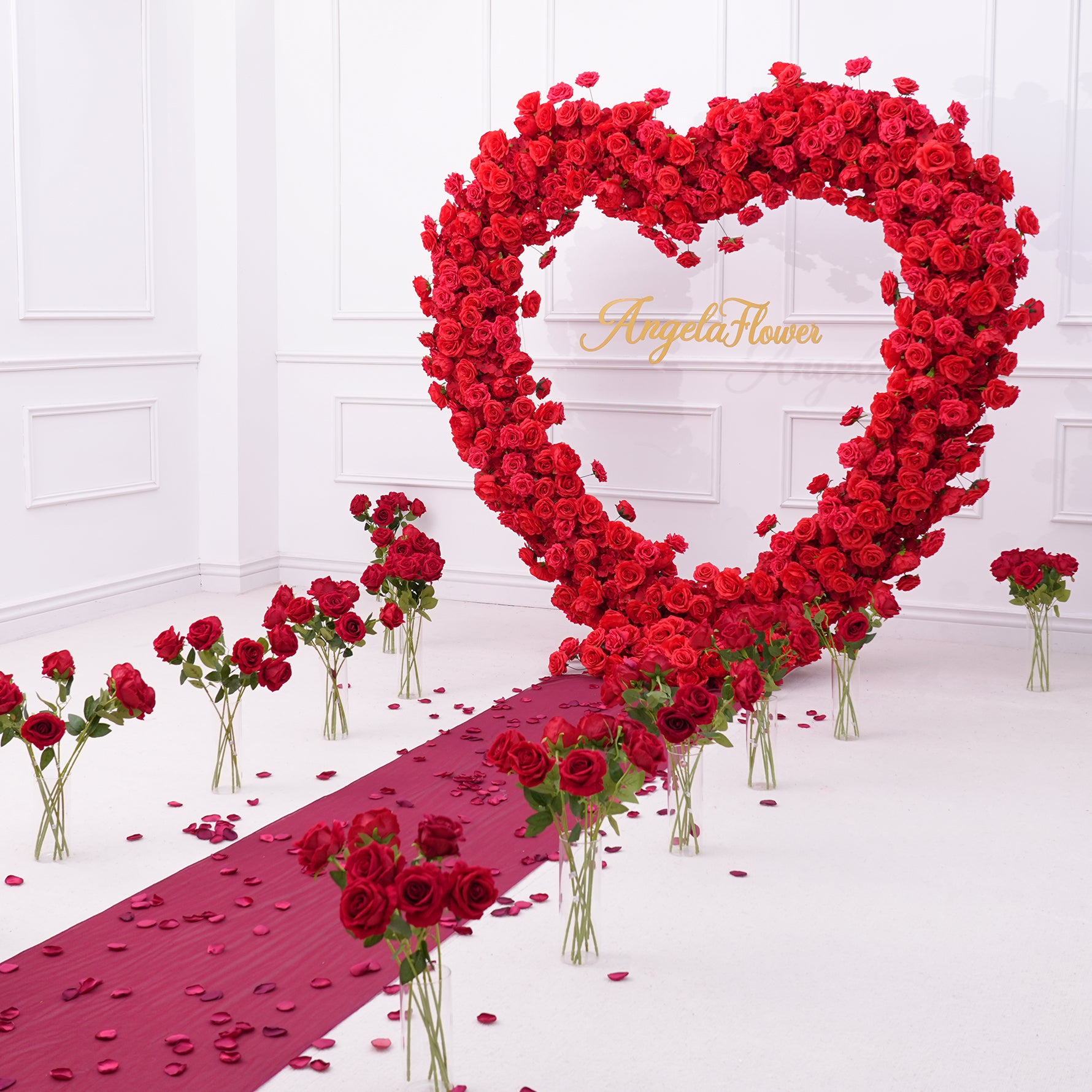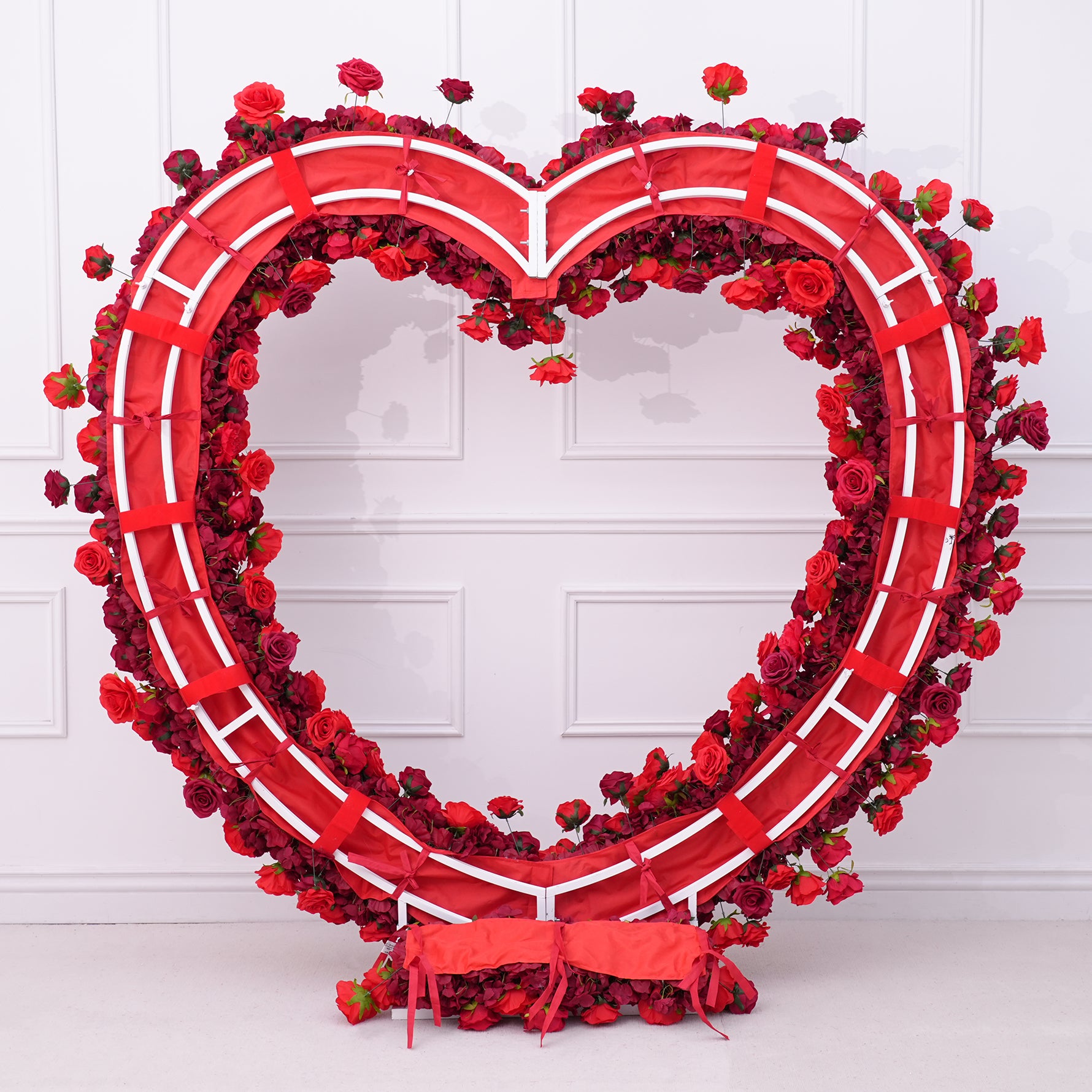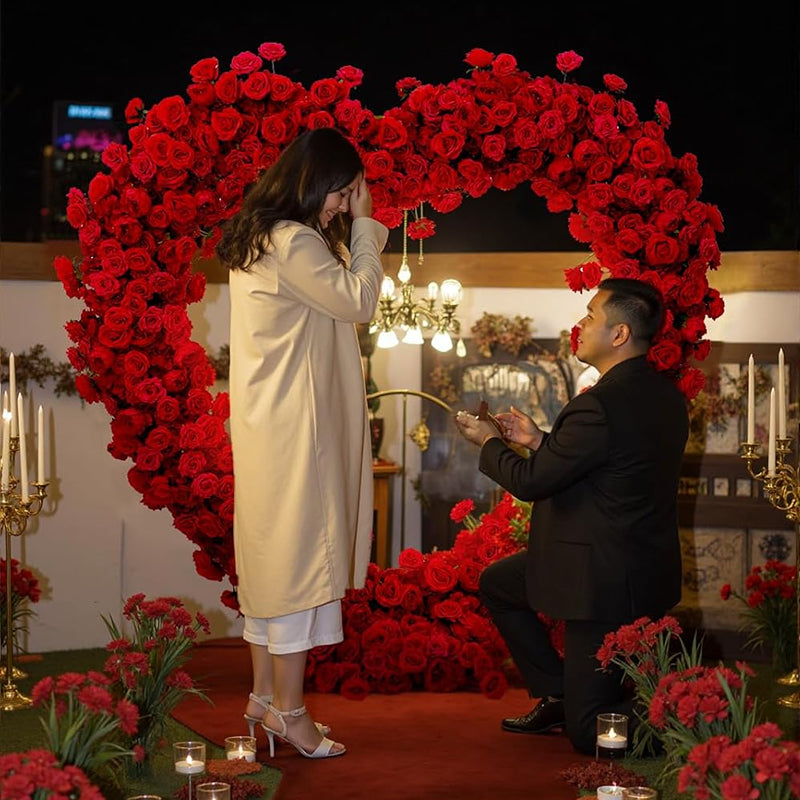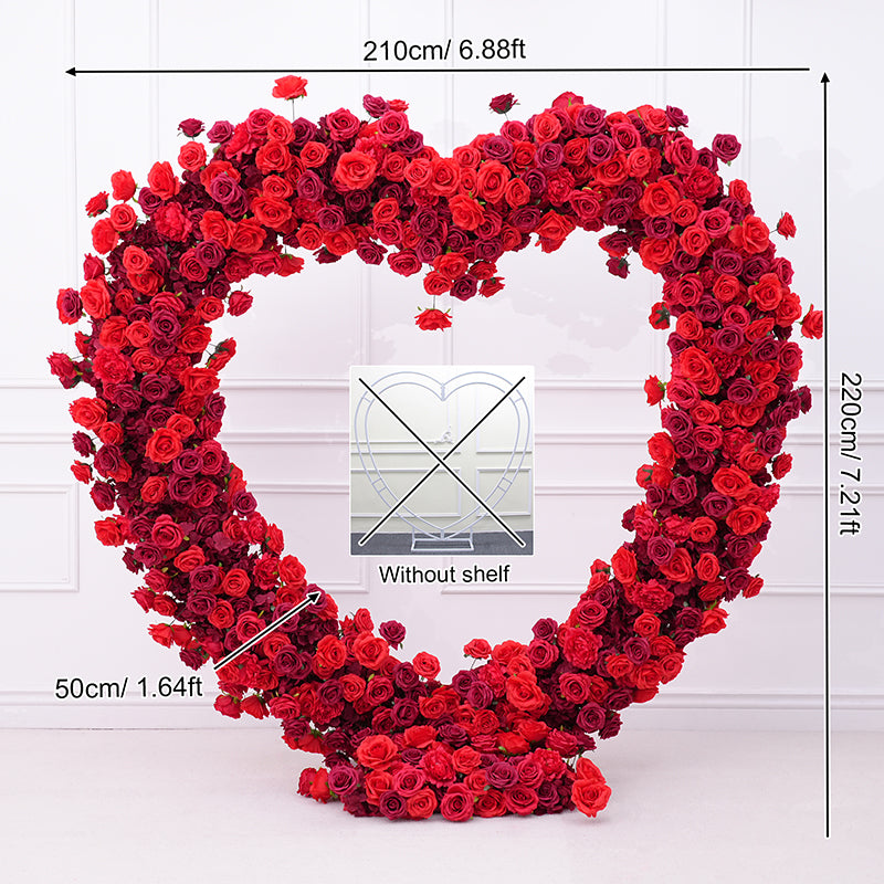 A8869 Luxury Red Rose Floral Arrangement Cloth Base Heart-Shaped Arch Props