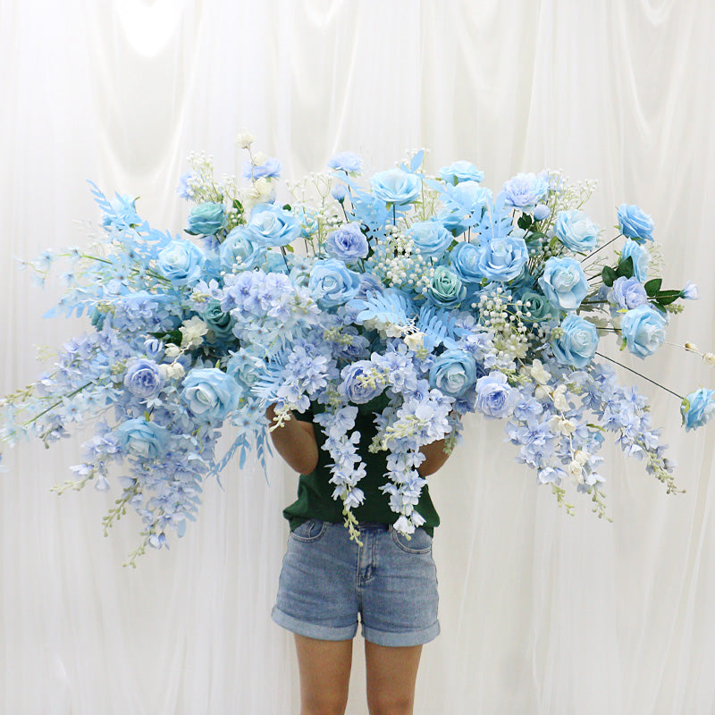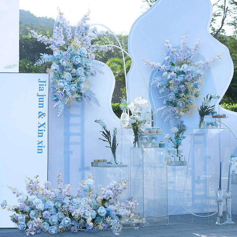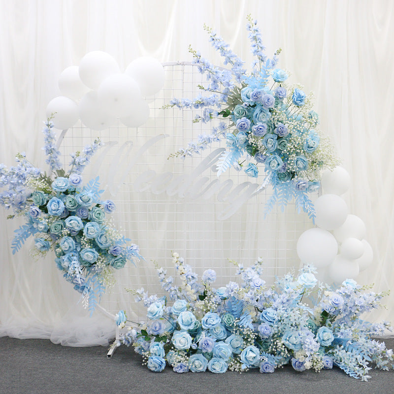 A145 A7618 Blue Wedding Backdrop Artificial Flower Arrangement Arch Hanging Floral