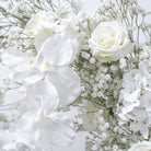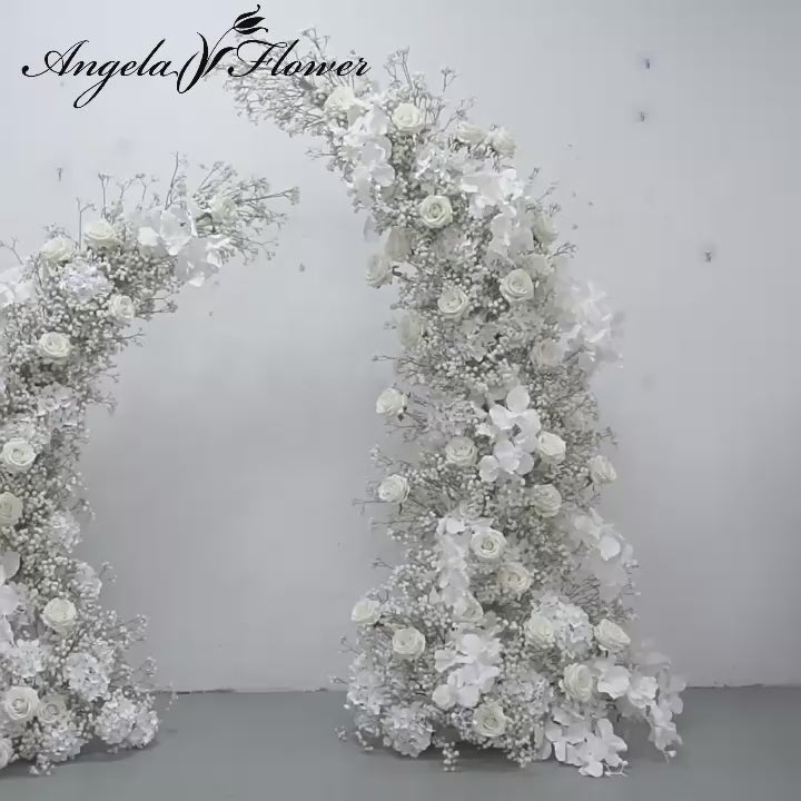 A8121 White Babysbreath Orchid Hydrangea Floral Arrangement With Horn Arch Frame Wedding