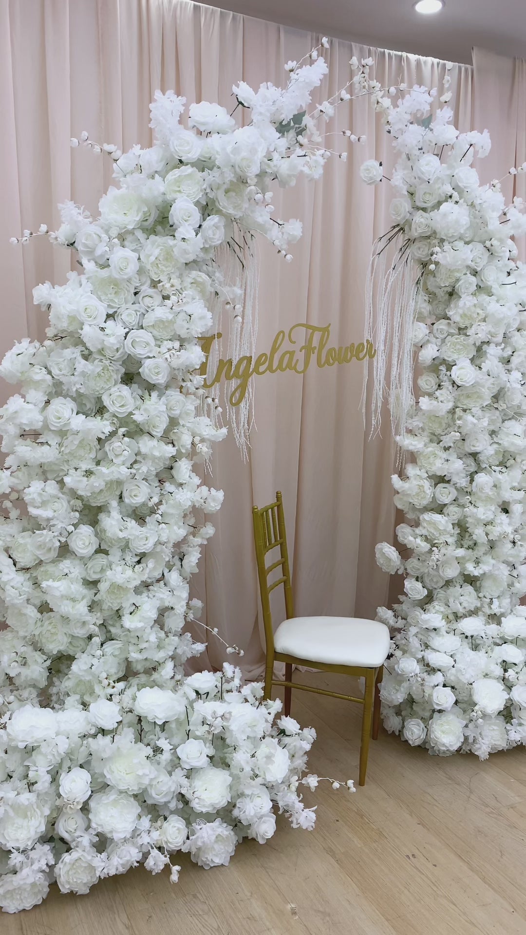 A8656 White Hang Wisteria Rose Floral Arrangement Decor Wedding Horn Arch Frame