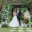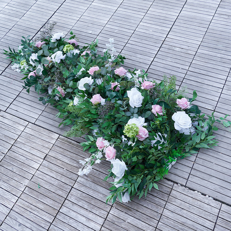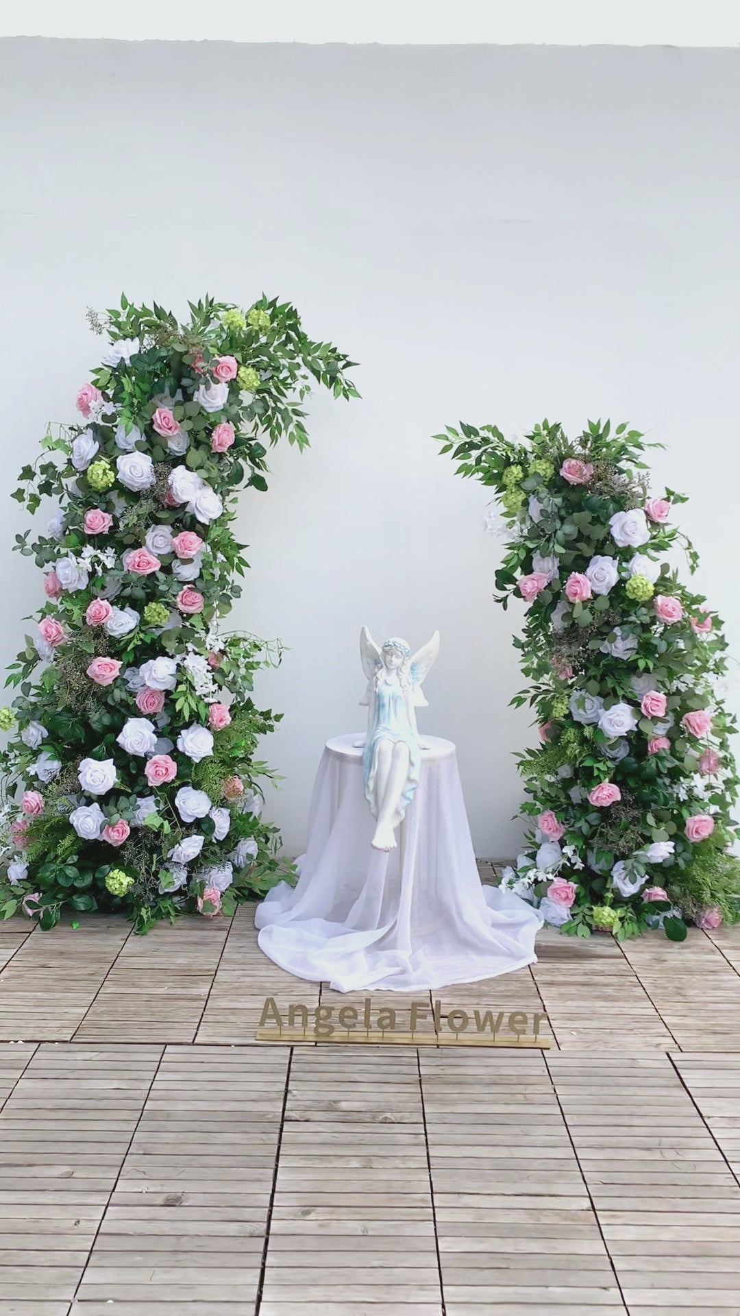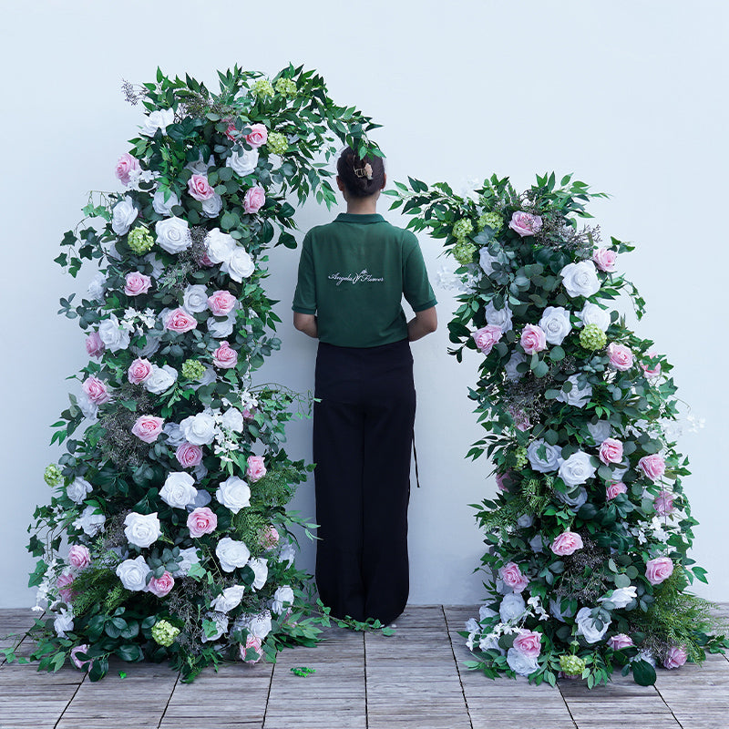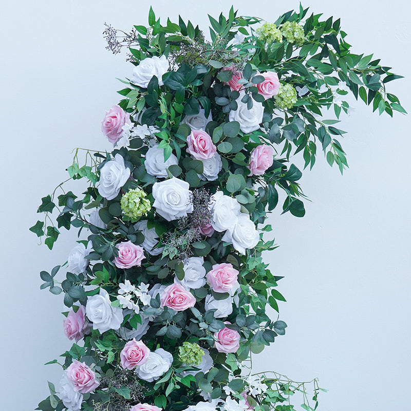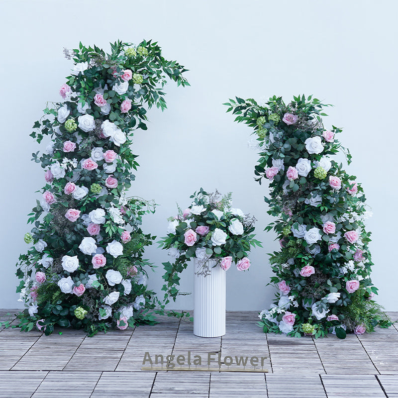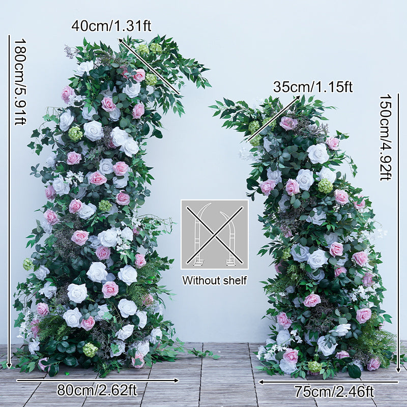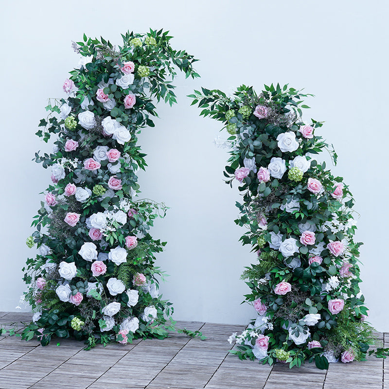A8751 White Pink Rose Green Plant Flower Row Wedding Backdrop Horn Arch
