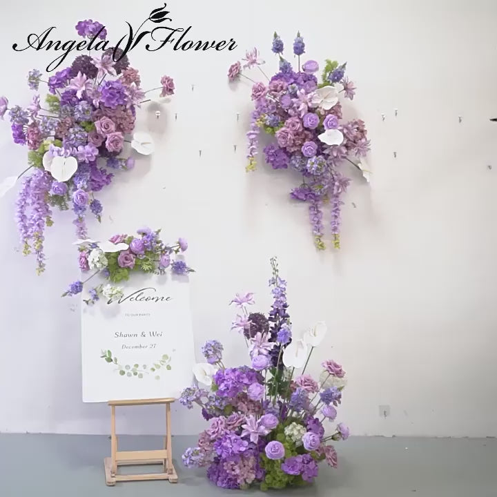 Purple Rose Wisteria Palm Flower Row Wedding Backdrop Decor Aisle Floor Floral