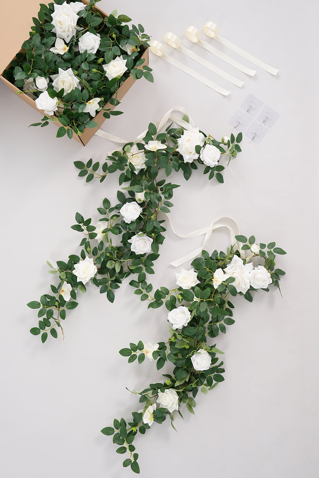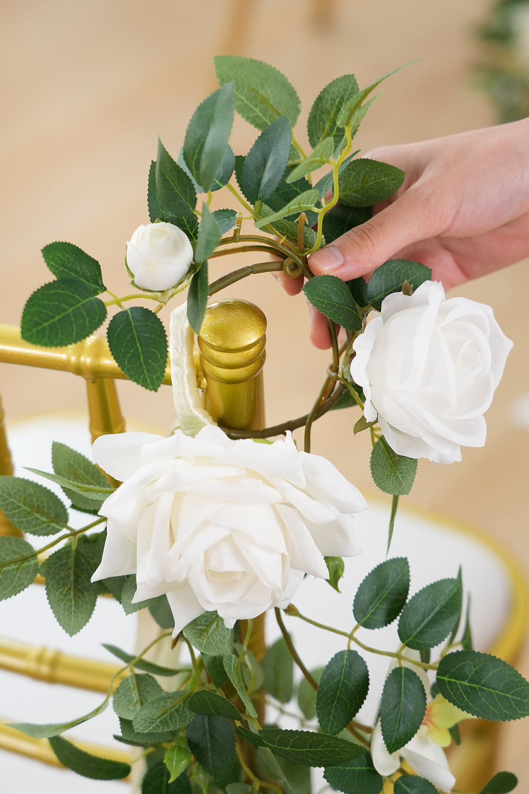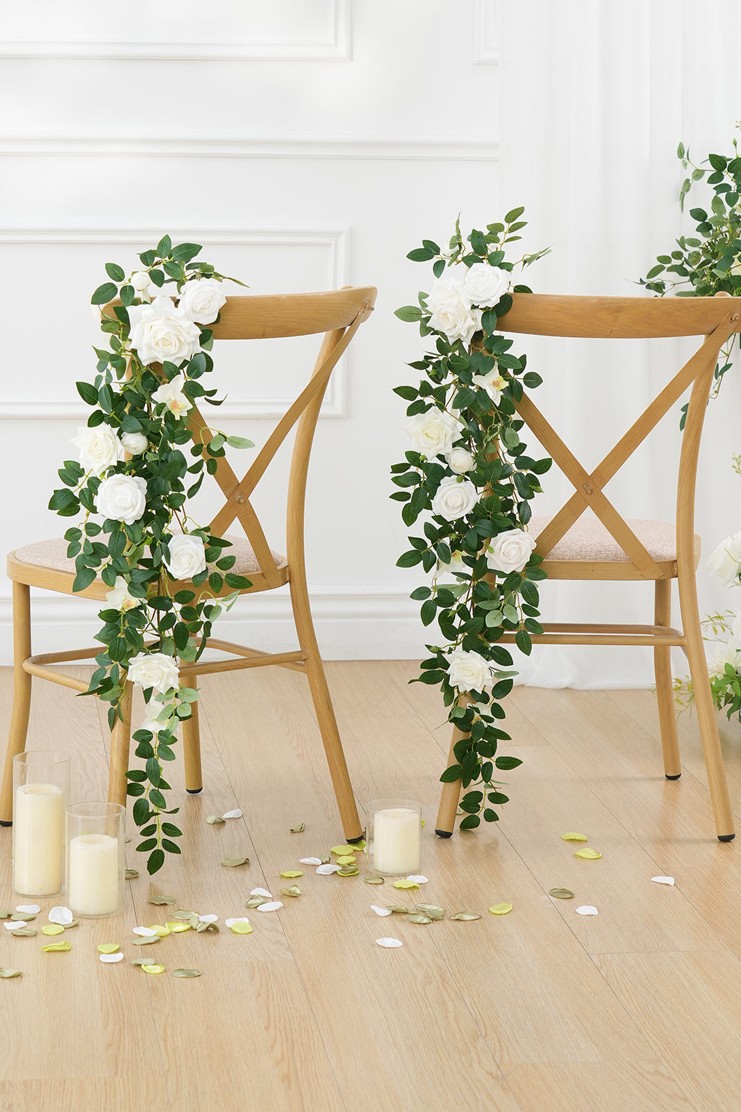 A8996 4pcs/set White Rose Hanging Garland Chair Flower Wedding Banquet Decor Props