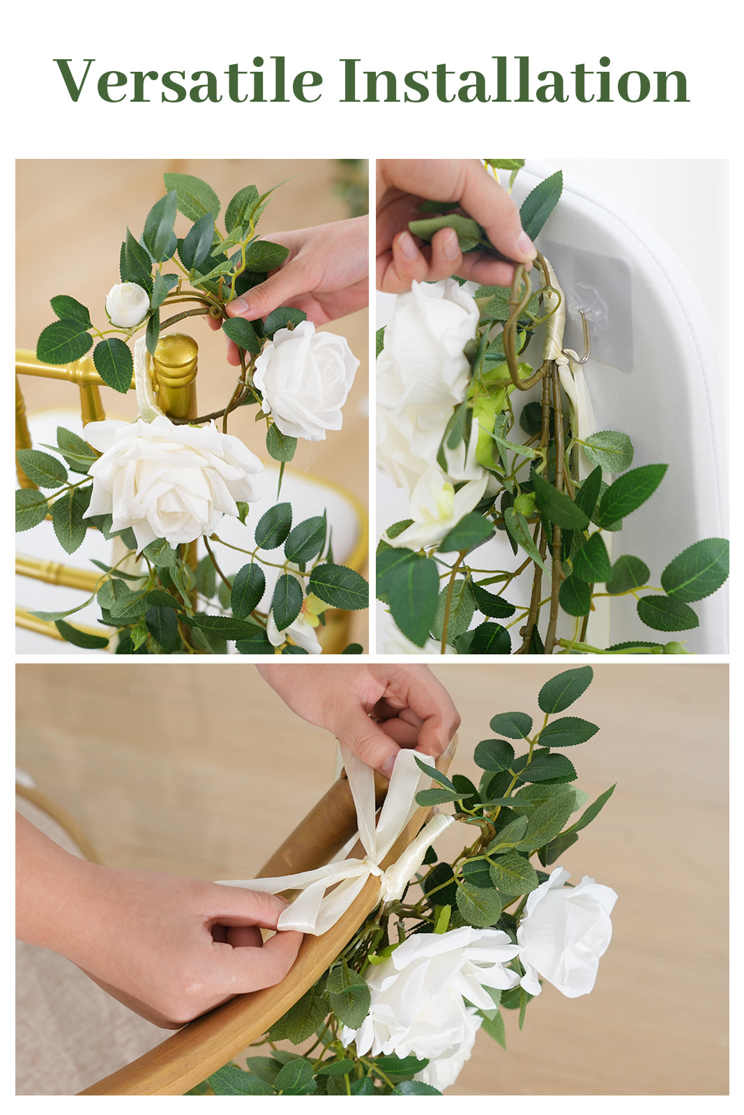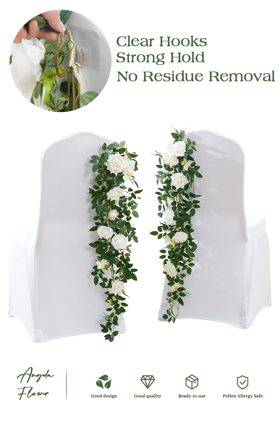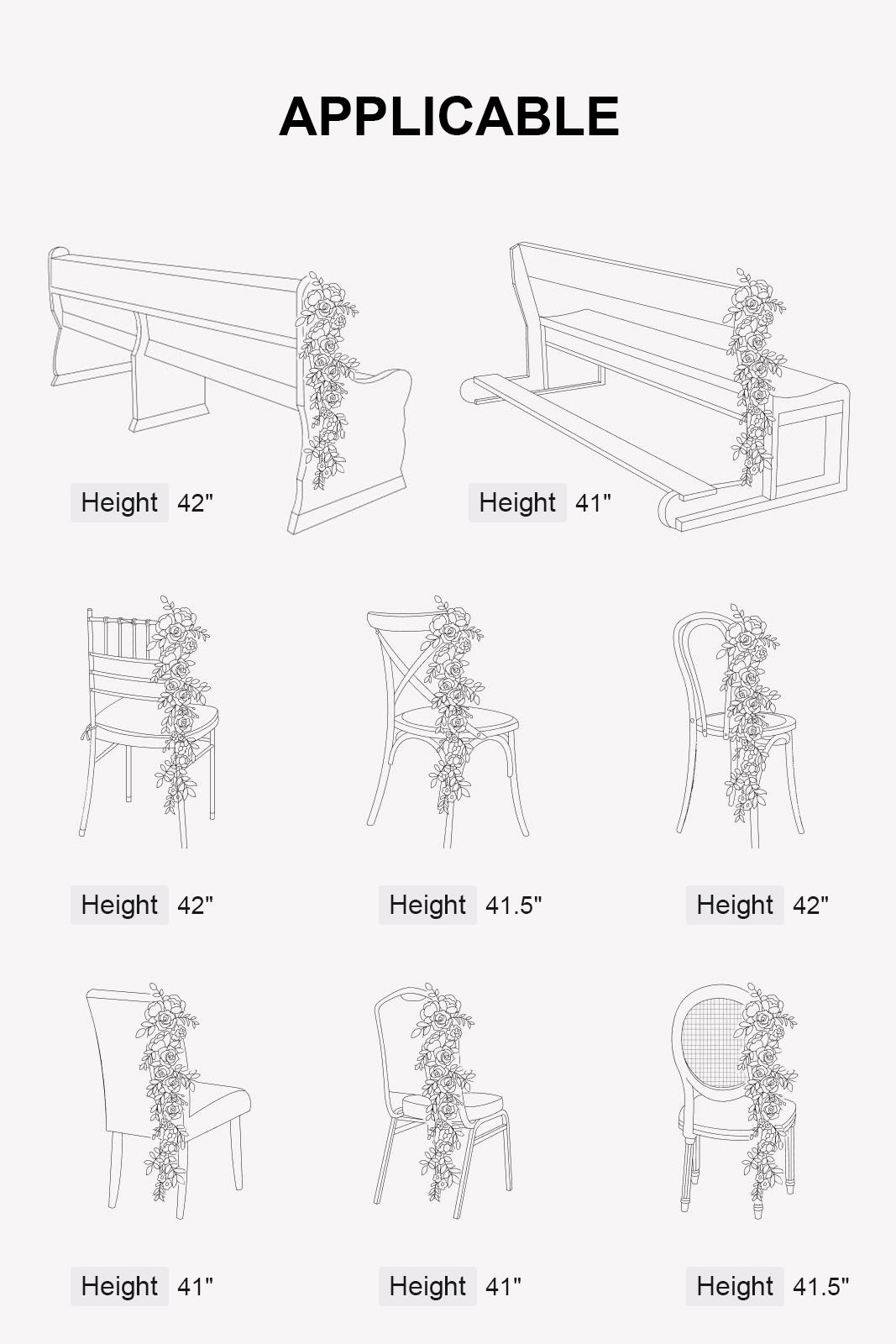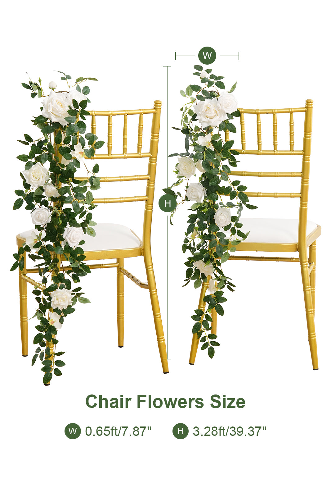 Size and package: The fully extended size is approximately 39.37'' length by 7.87'' width. Includes chair back flowers*4, traceless transparent hooks*4, high-grade ribbons*4.