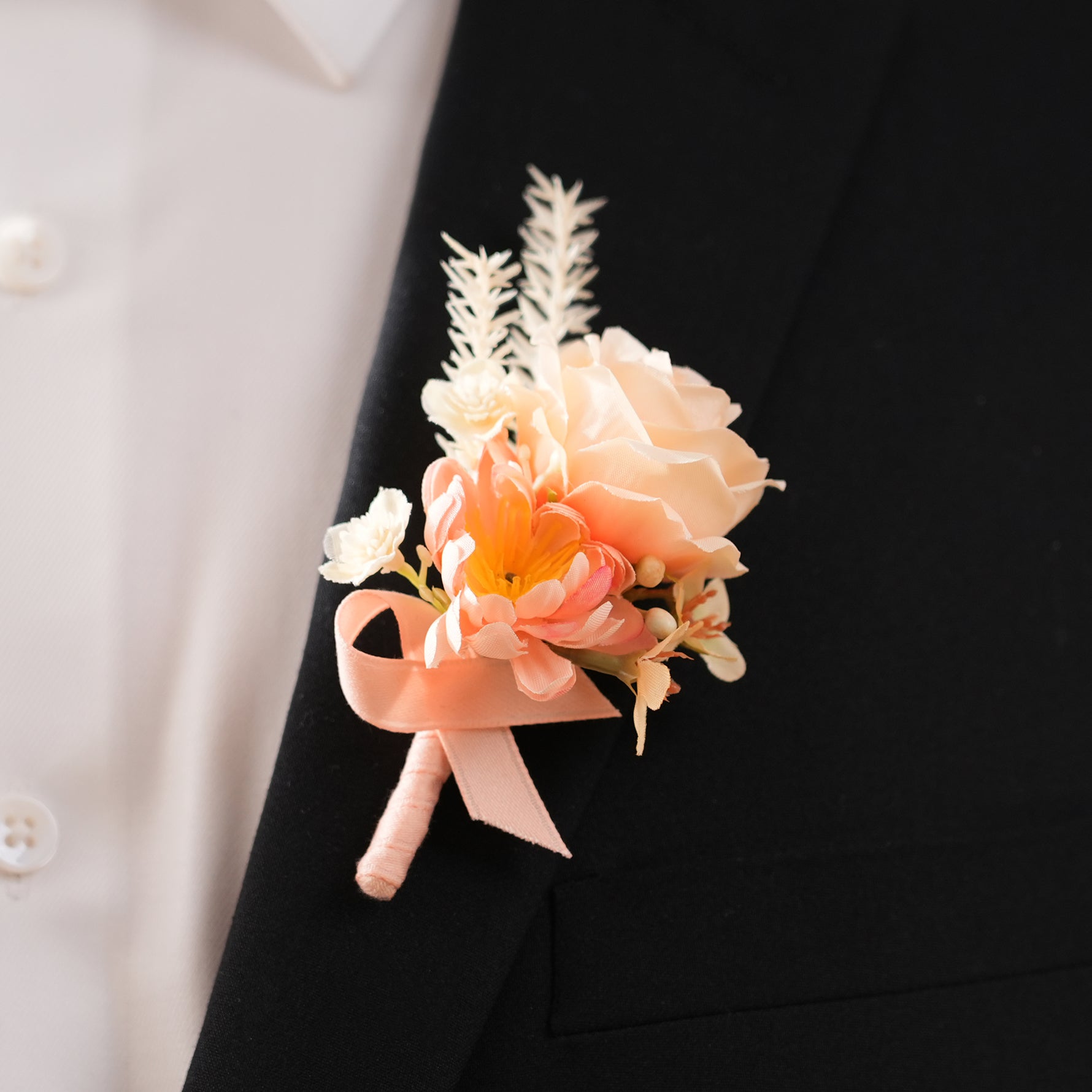 Size and package: Each boutonniere is approx. 0.29ft L x 0.14ft W, suitable for all men; The set includes six boutonnieres in tota. 1 for Groom, and others for groomsmen or any important guest.