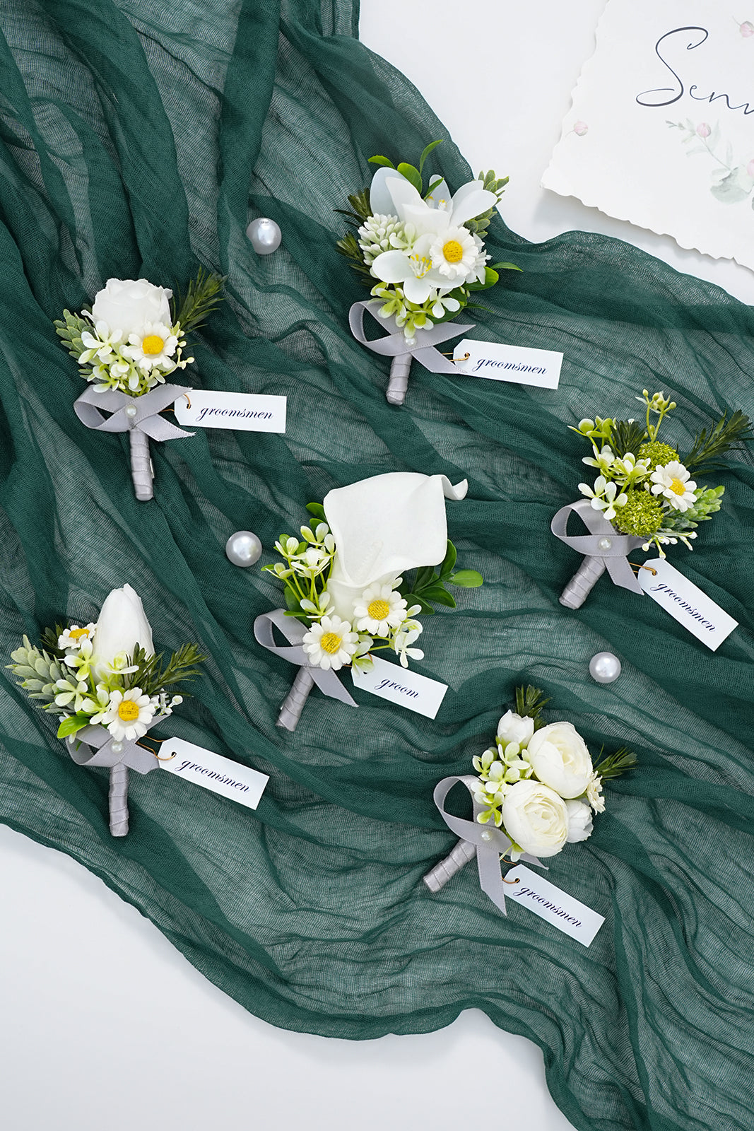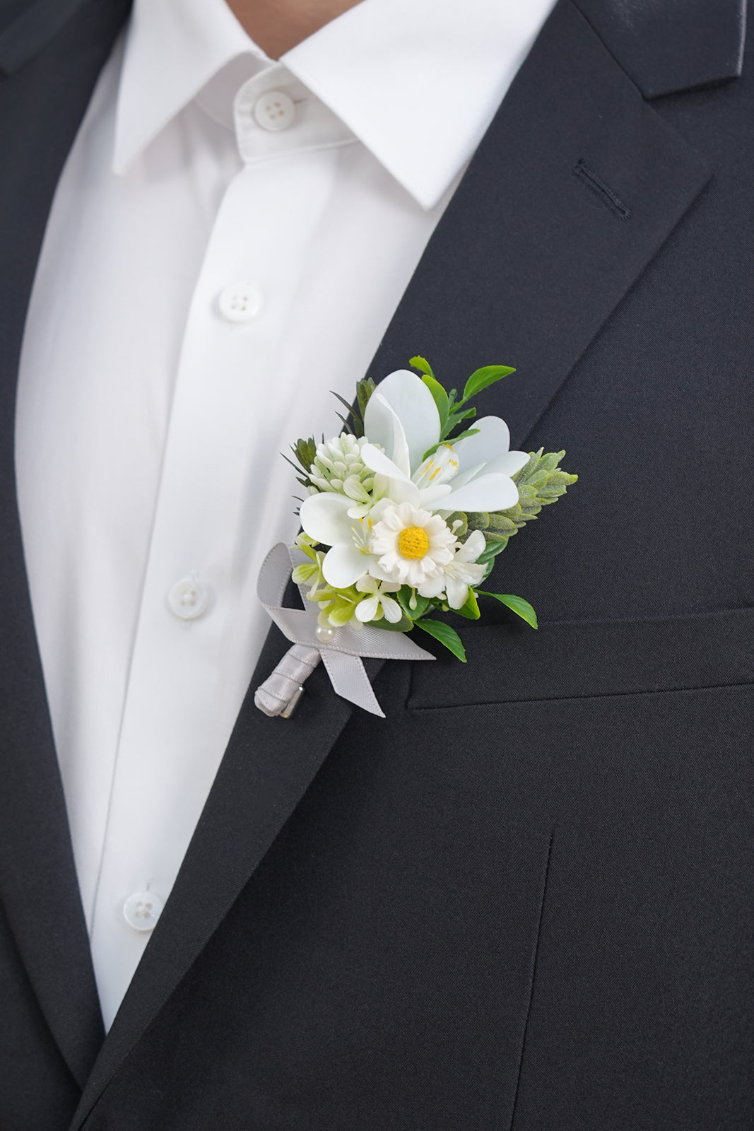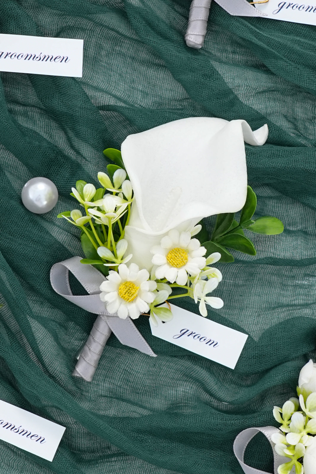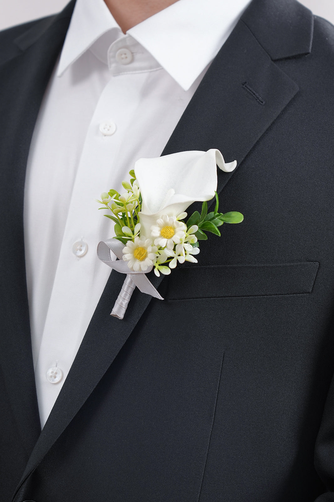 Color Inspiration: This corsage is carefully matched with pure white PU real touch calla lilies, rose, daisy and other green plant vine accessories. Every detail shows exquisite craftsmanship, adding an elegant and exquisite embellishment to the wedding look, making it ideal as one of your corsages for wedding. As an artificial corsage, it provides lasting beauty and serves as a cherished keepsake of your special day.