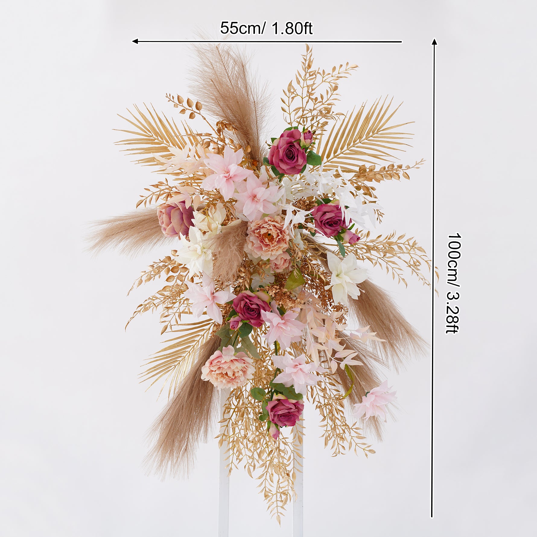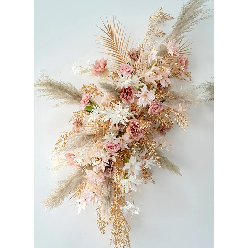 A216 A7542 Simulation Pampas Grass Gold Leaf Hanging Artificial Flower Row Wedding Arch