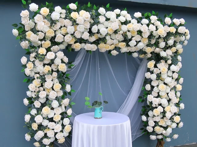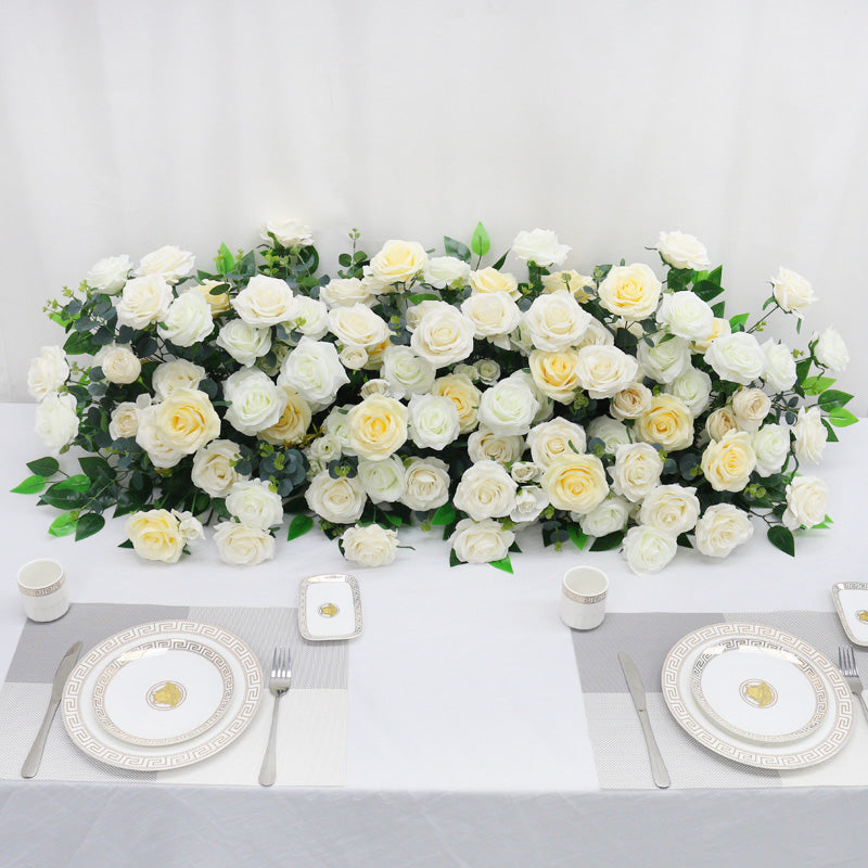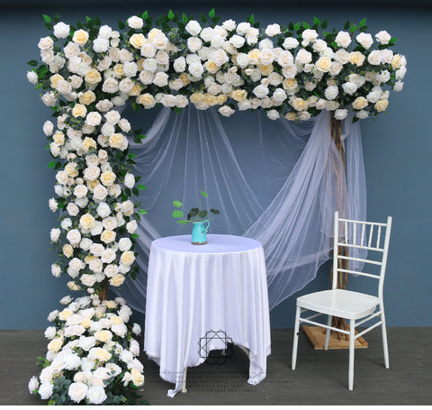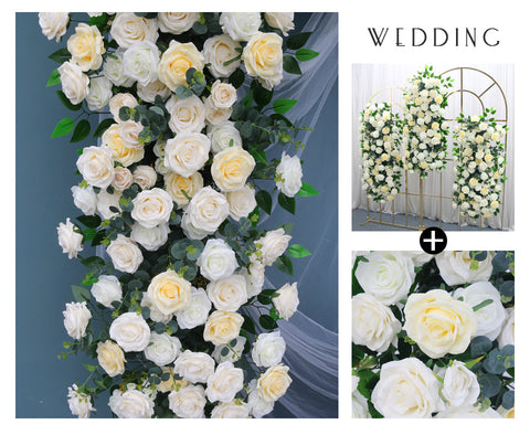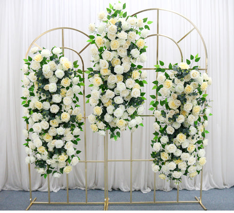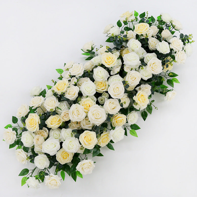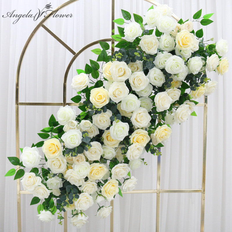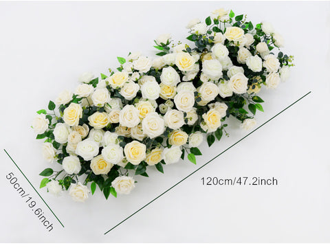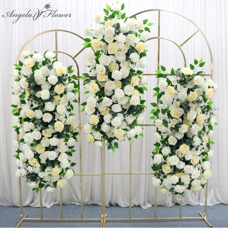 Luxury 3D Ivory White Artificial Flower Row Rose Green Floral Arrangement Wedding Arch Deco Hanging Flowers Marriage Party Props A753 A8939