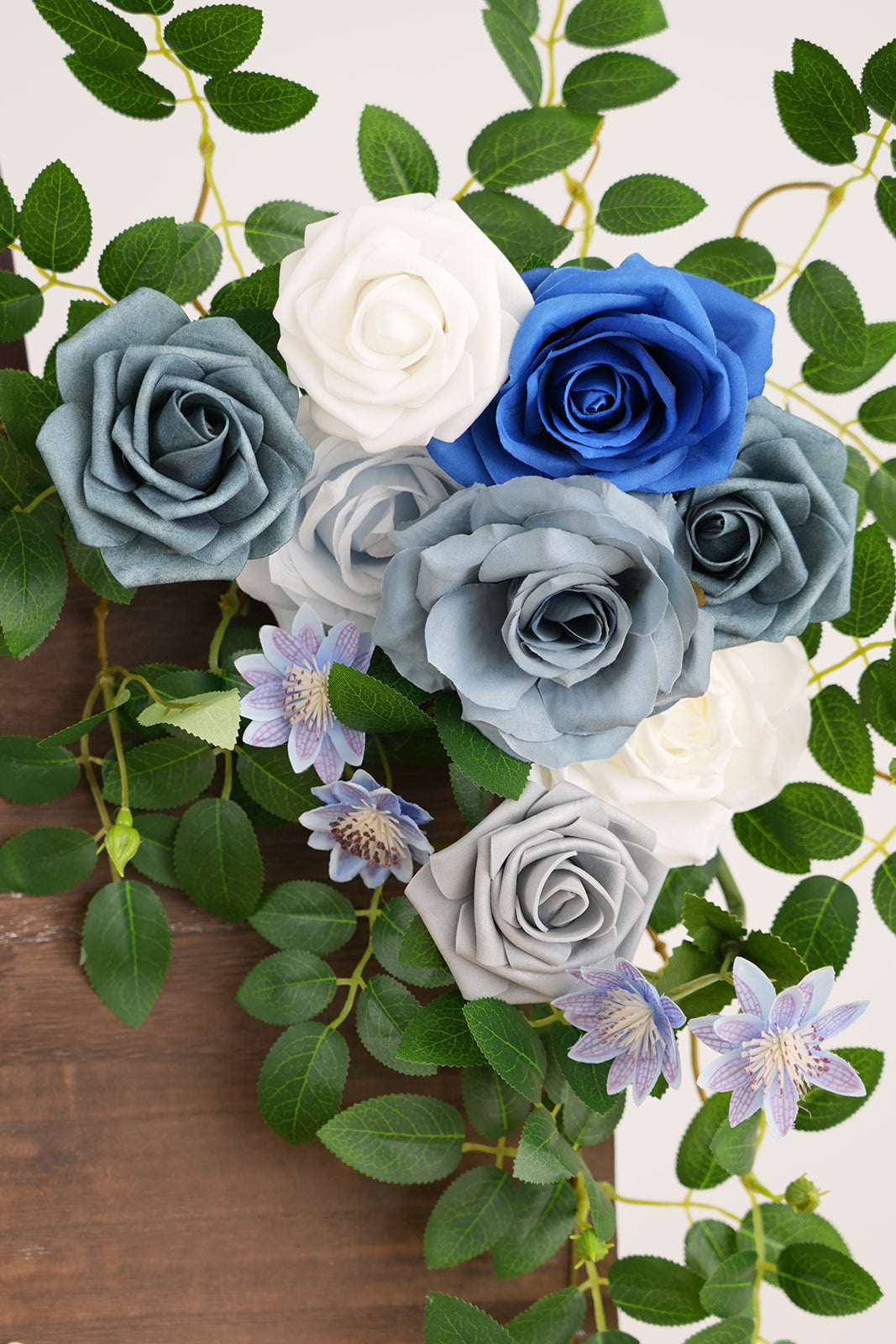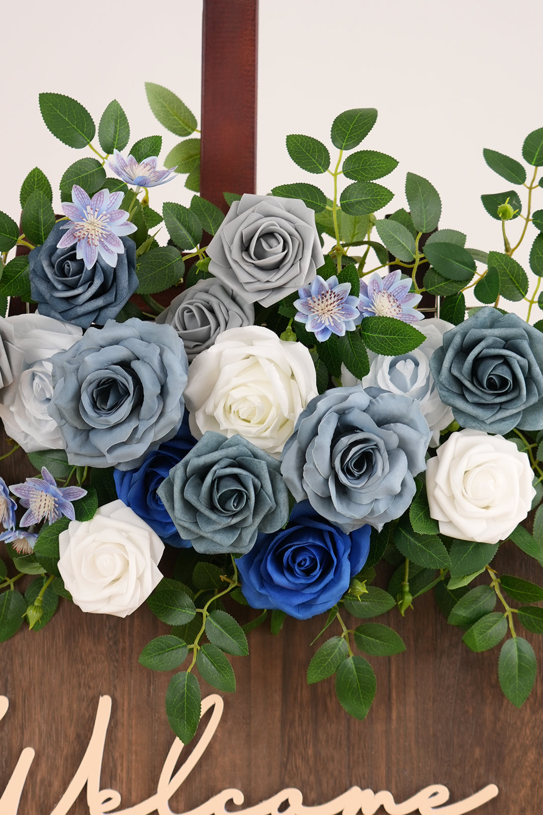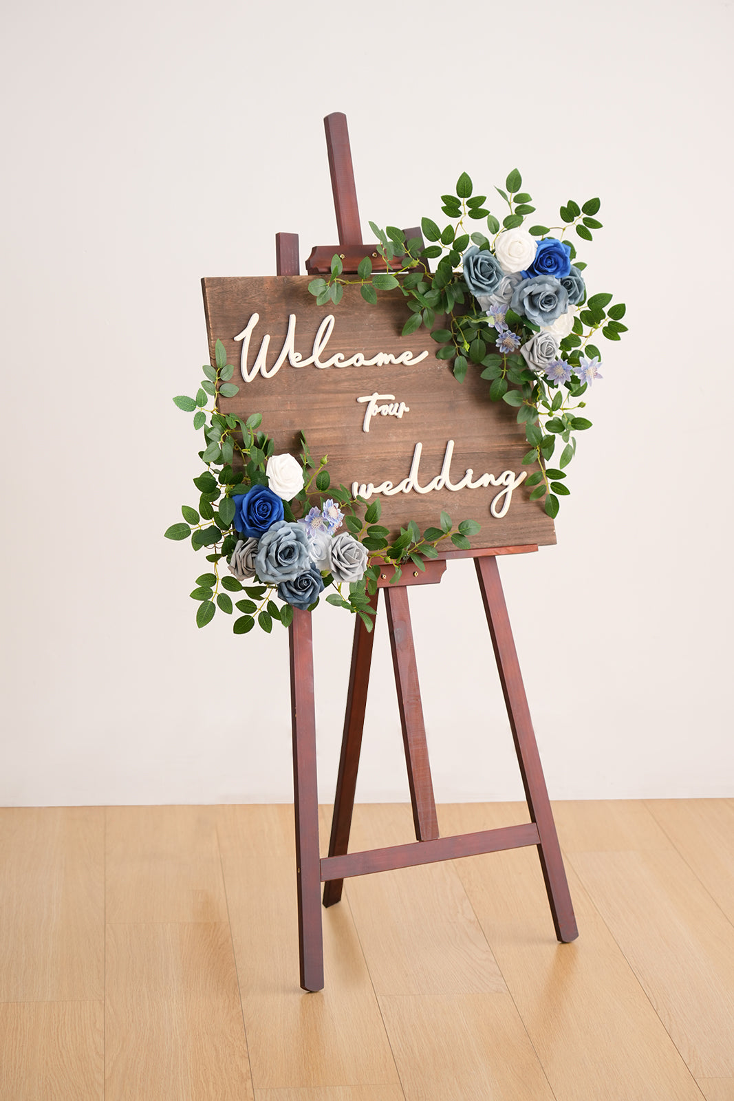 A9006 2pcs Blue Artificial Welcome Sign Flowers Wedding Backdrop Garland Supplies