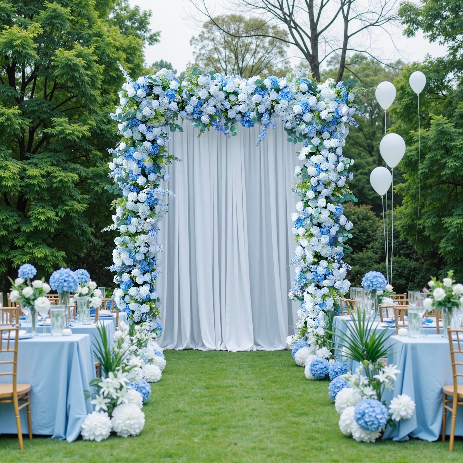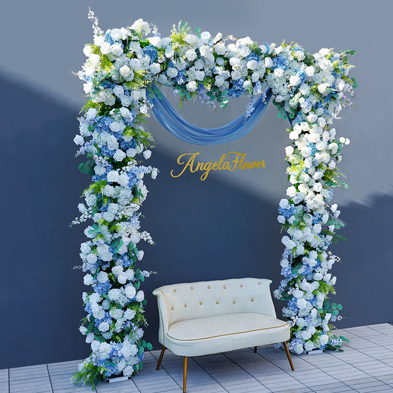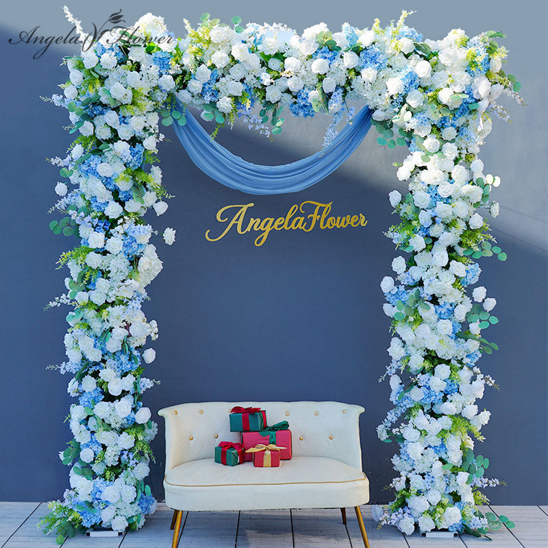 A8706 Blue White Rose Floral Arrangement Decor Wedding Backdrop