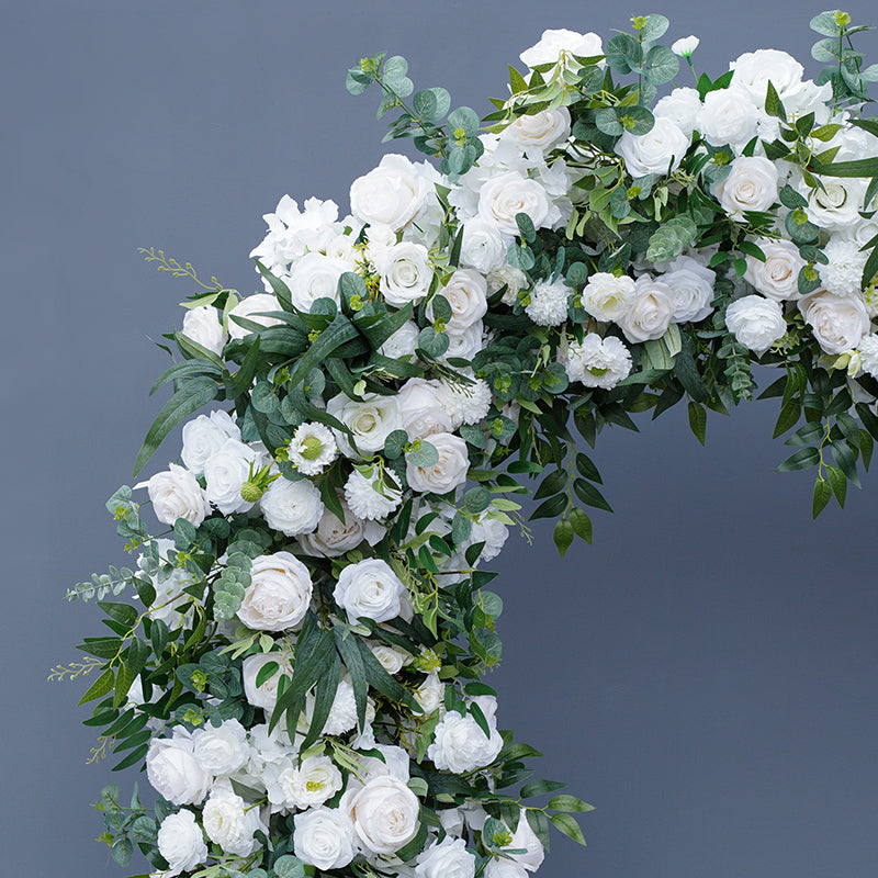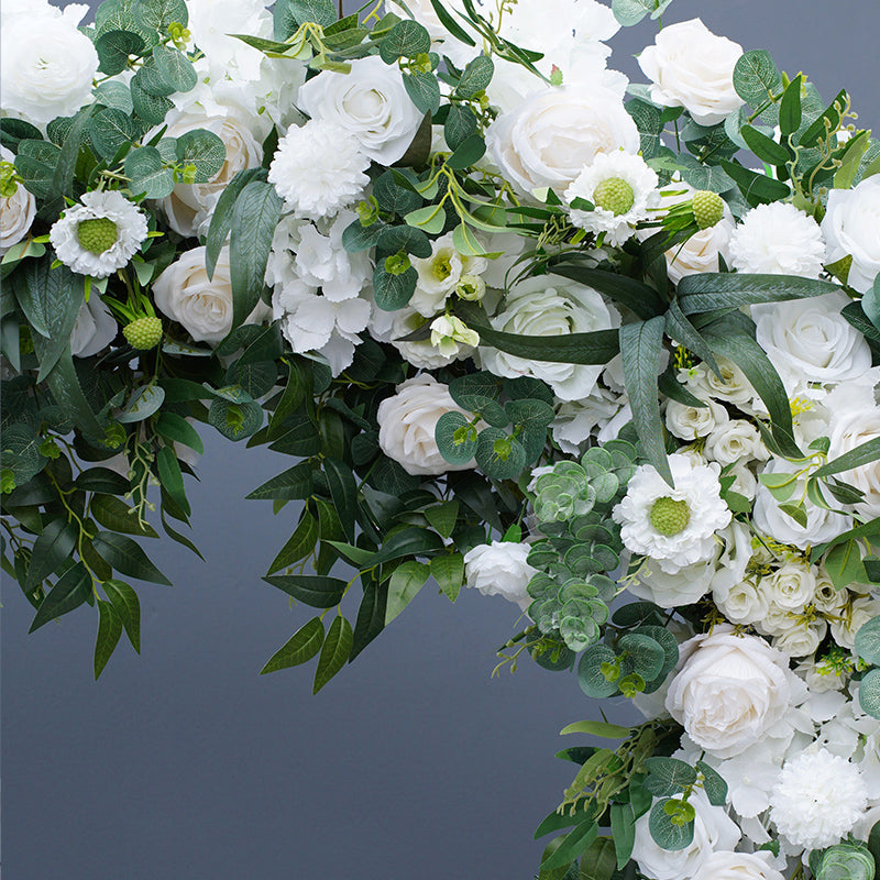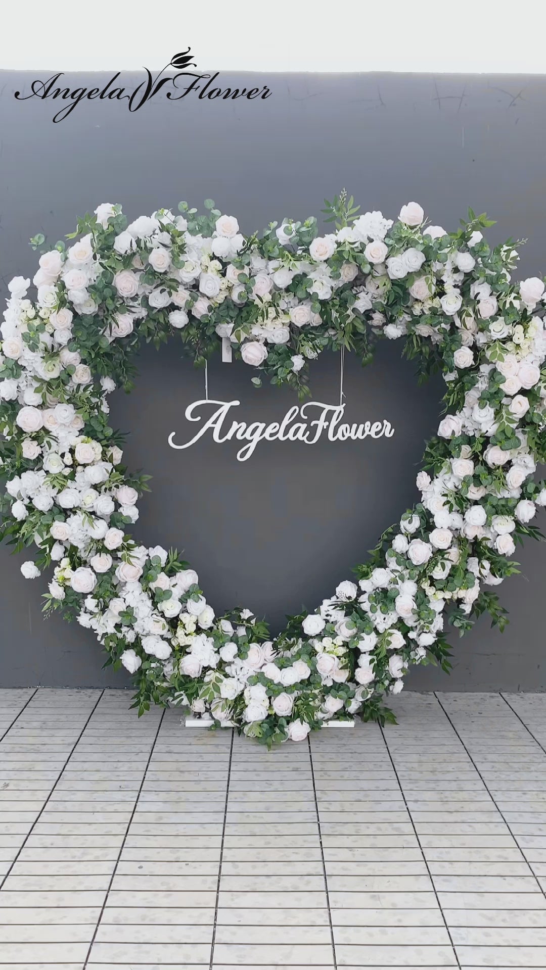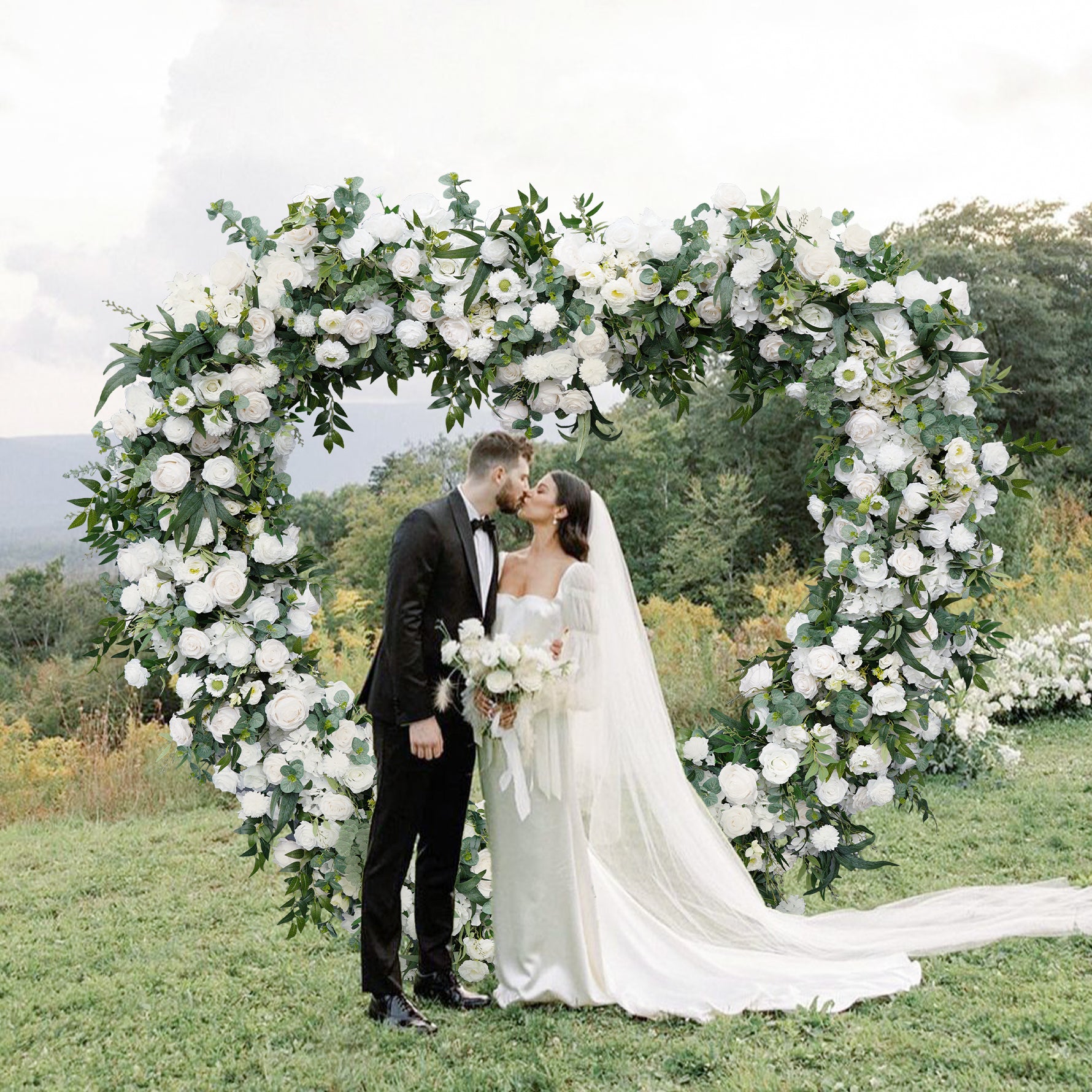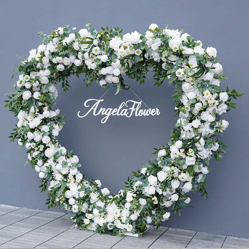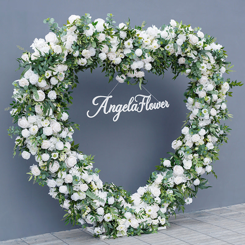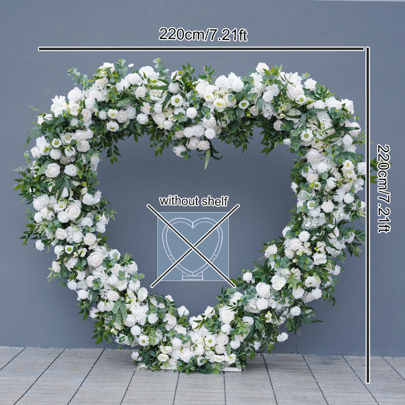 A8641 White Rose Green Willow Leaf Floral Arrangement Decor Heart-Shaped Wedding Arch
