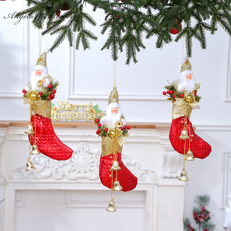 SD0406 New Christmas Decorations Red Socks Santa Hanging Small Bells