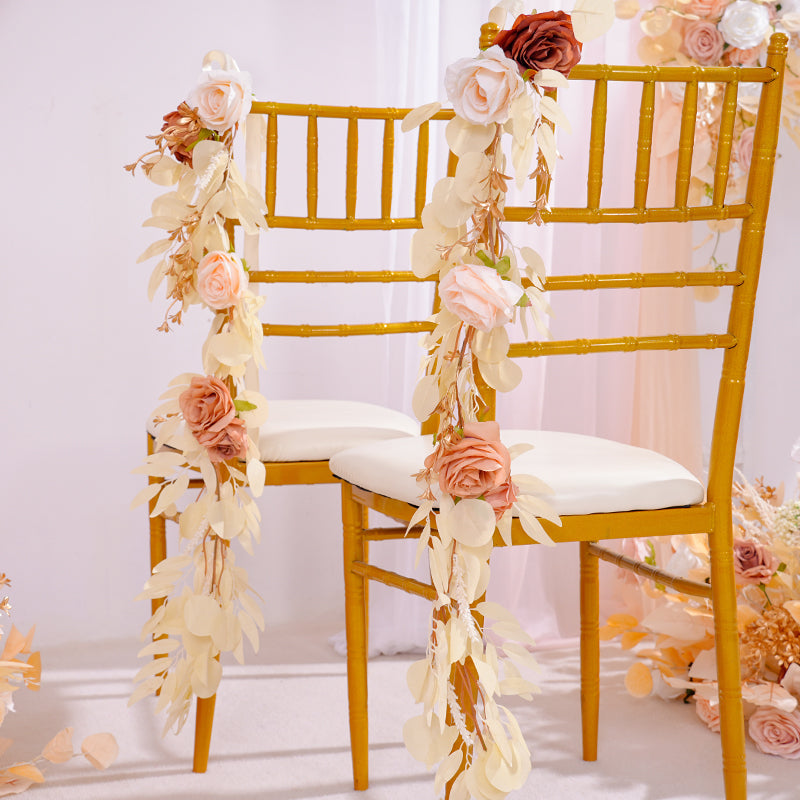 A863814 Champagne Series Rose Plant Vine Chair Flower Wedding Reception Supplies