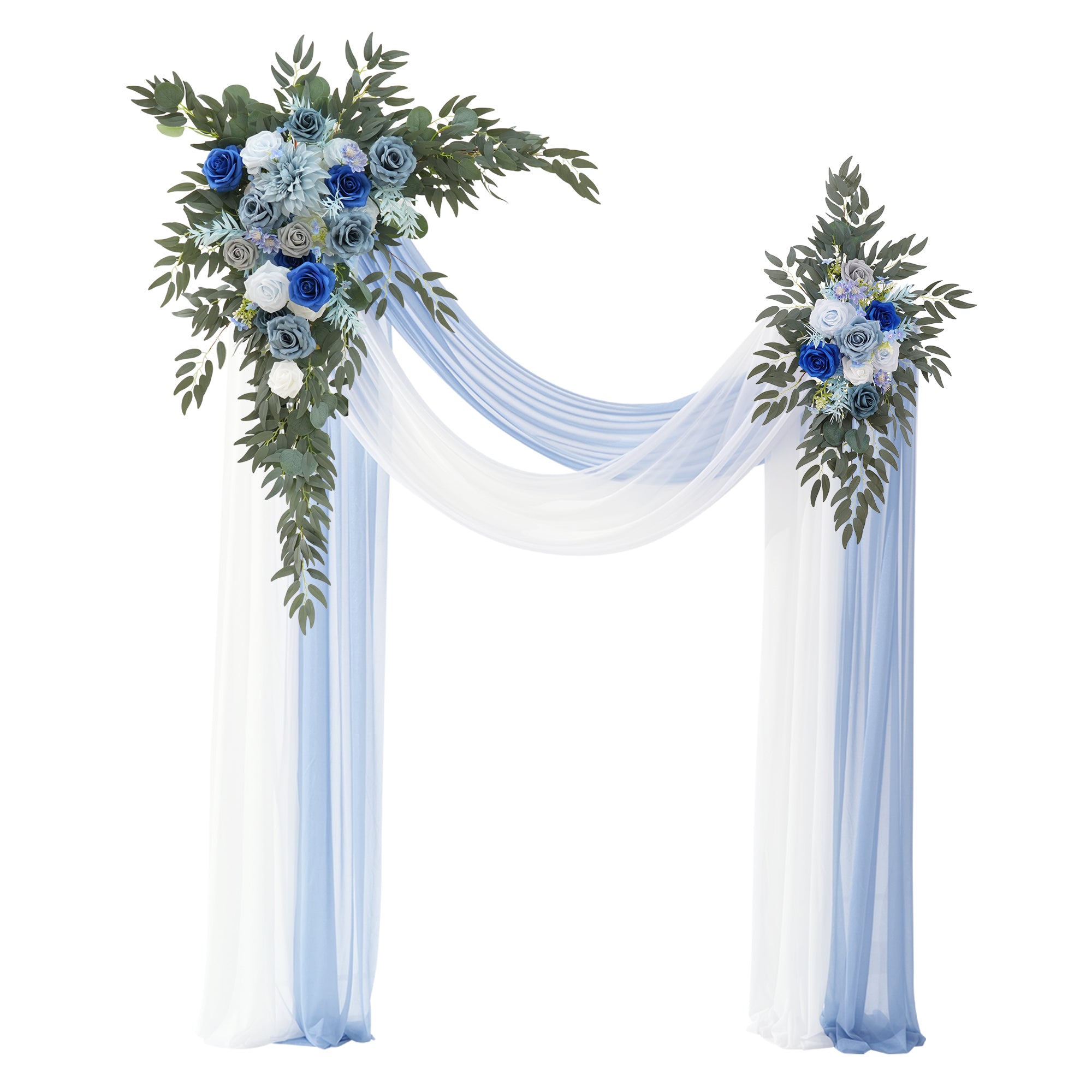 Size and package: luxury corner flower x1 luxury corner flower (39'' H * 29'' W), tie-back flower (29'' H * 7.8'' W), 6m pink wrinkle-resistant chiffon x1, 6m champagne wrinkle-resistant chiffon x1, velcro fasteners x4. Carefully packaged in a reinforced box to prevent damage during transportation.