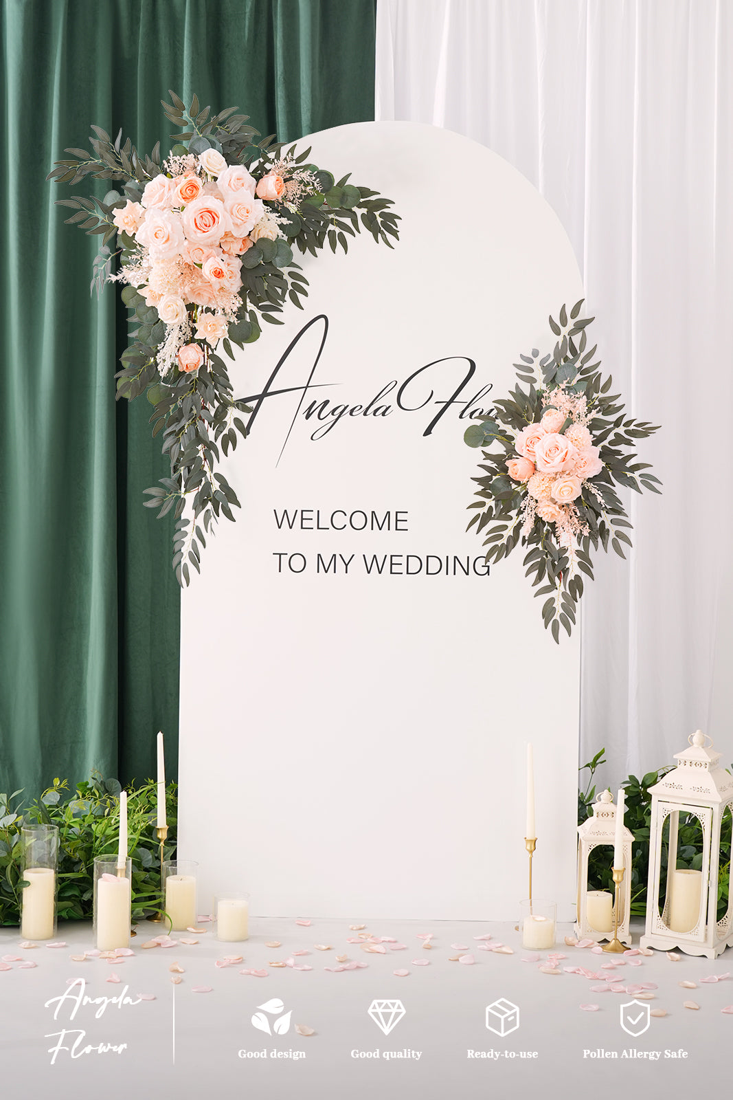 Color Inspiration: Elevate any space with our champagne rose floral garland and 2 matching drapes. Perfect for weddings, parties, and photo studios, it creates dreamy, elegant backdrops. The durable design ensures lasting beauty for both event and home decor. Its versatile champagne tone blends seamlessly with various themes, offering an effortless solution to transform ordinary settings into enchanting atmospheres.