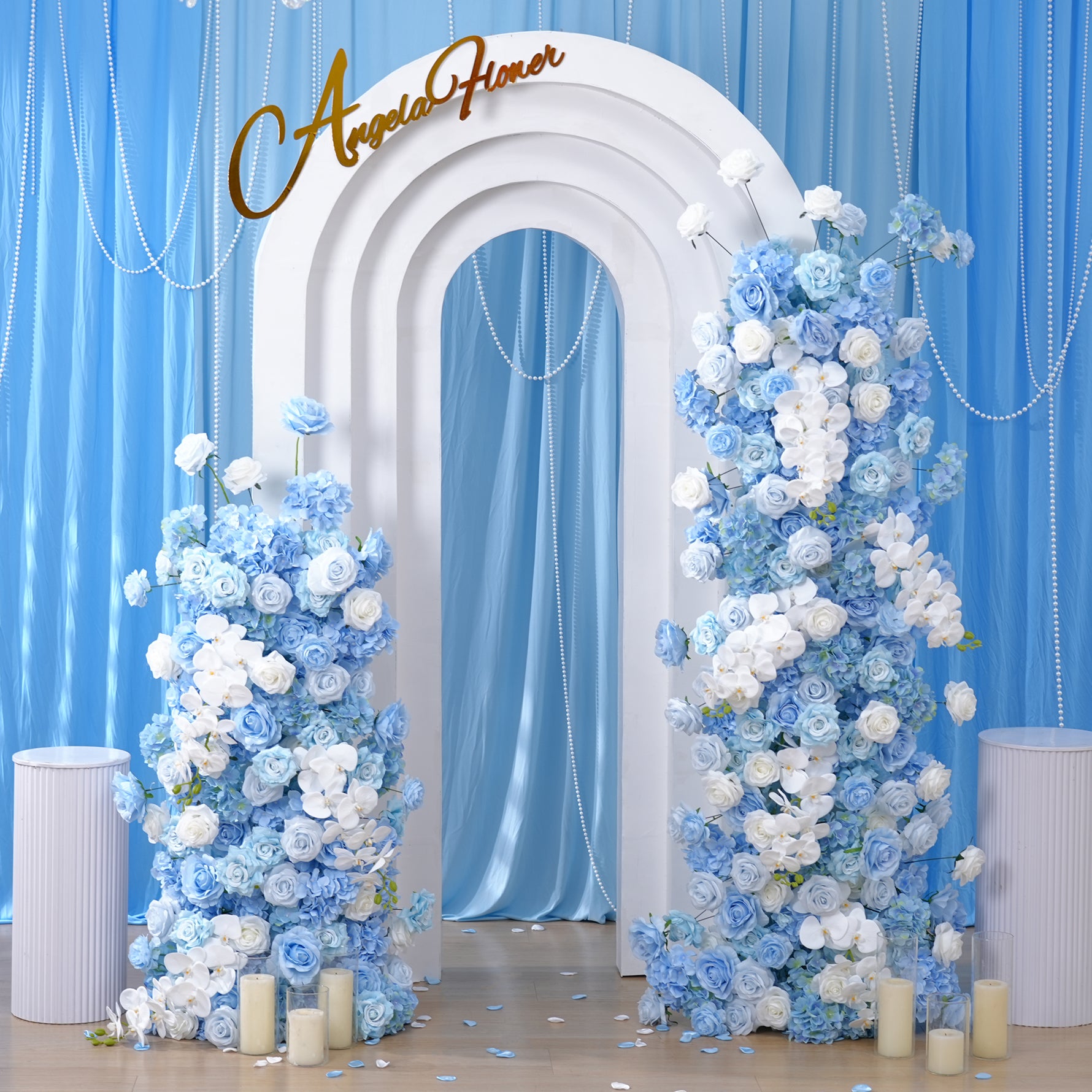 A8955 Blue Rose White Orchid Floral Row KT Board Wedding Backdrop Event Supplies