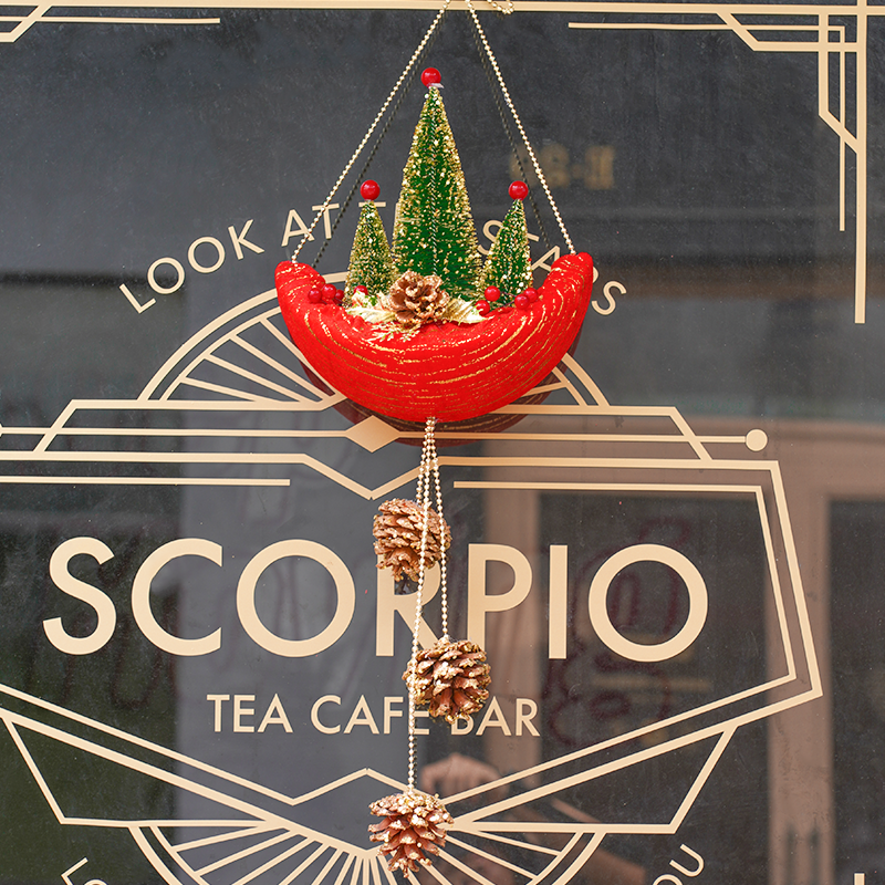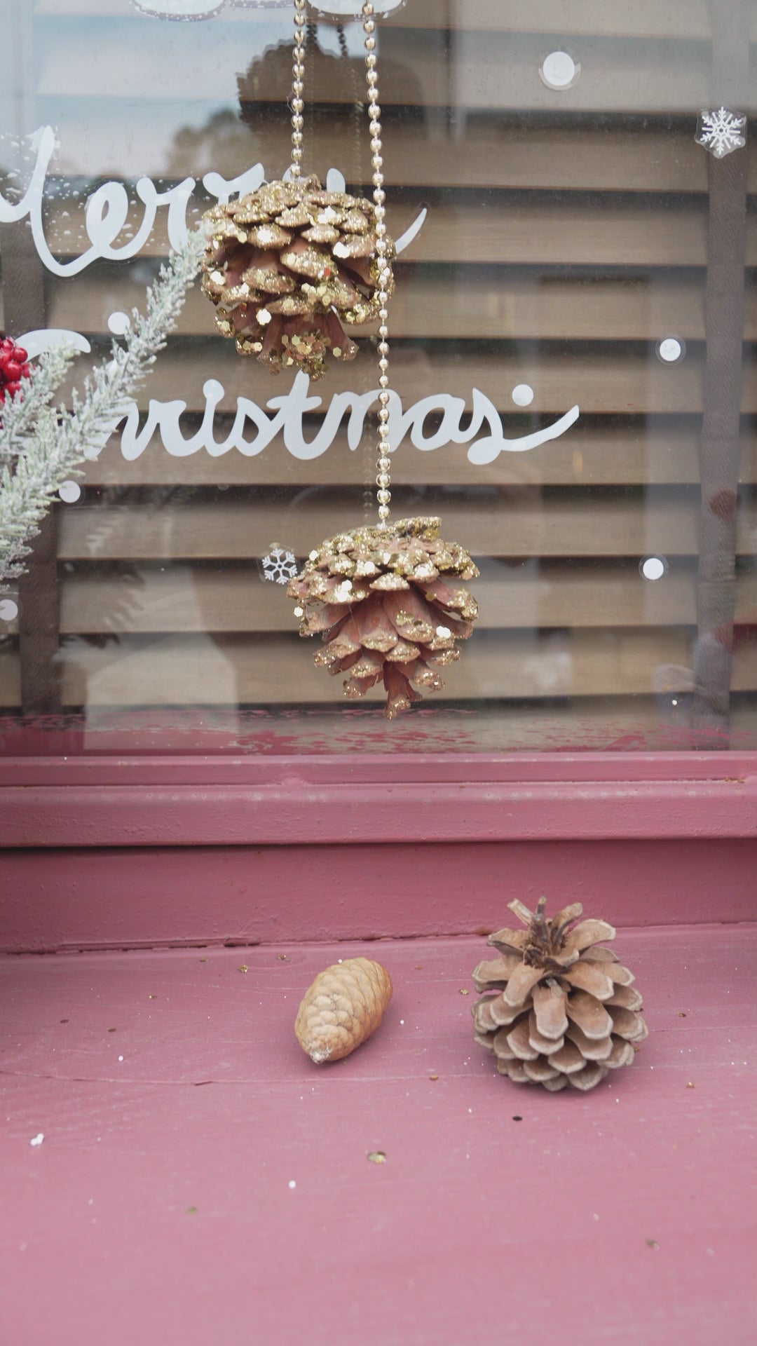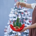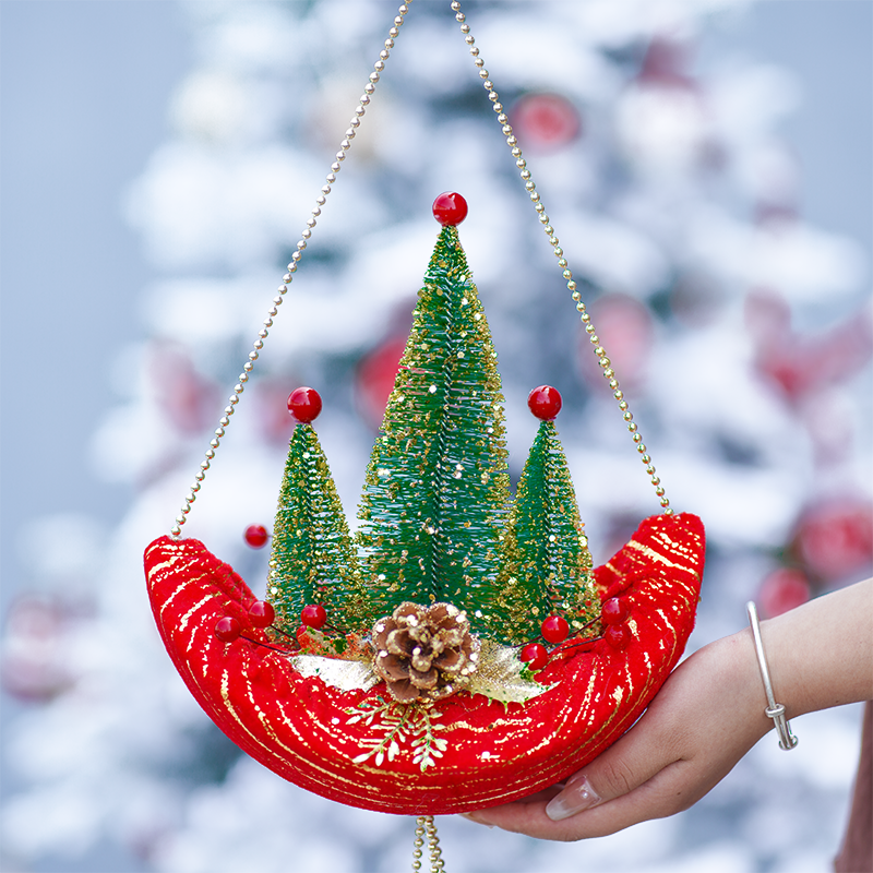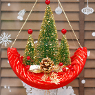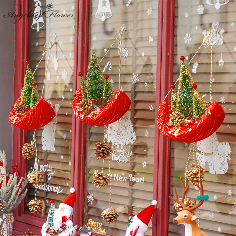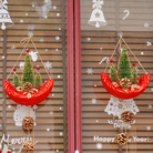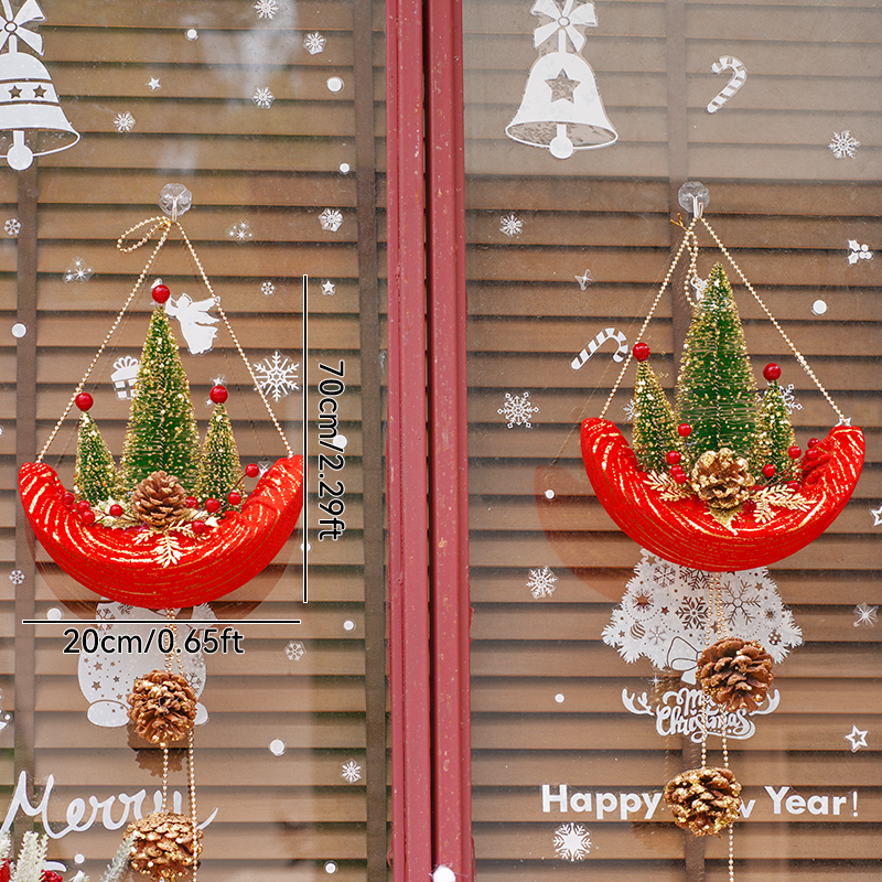 SD0218-10001 Christmas Wall Window Hanging Red Crescent Tree Dropping Pinecones