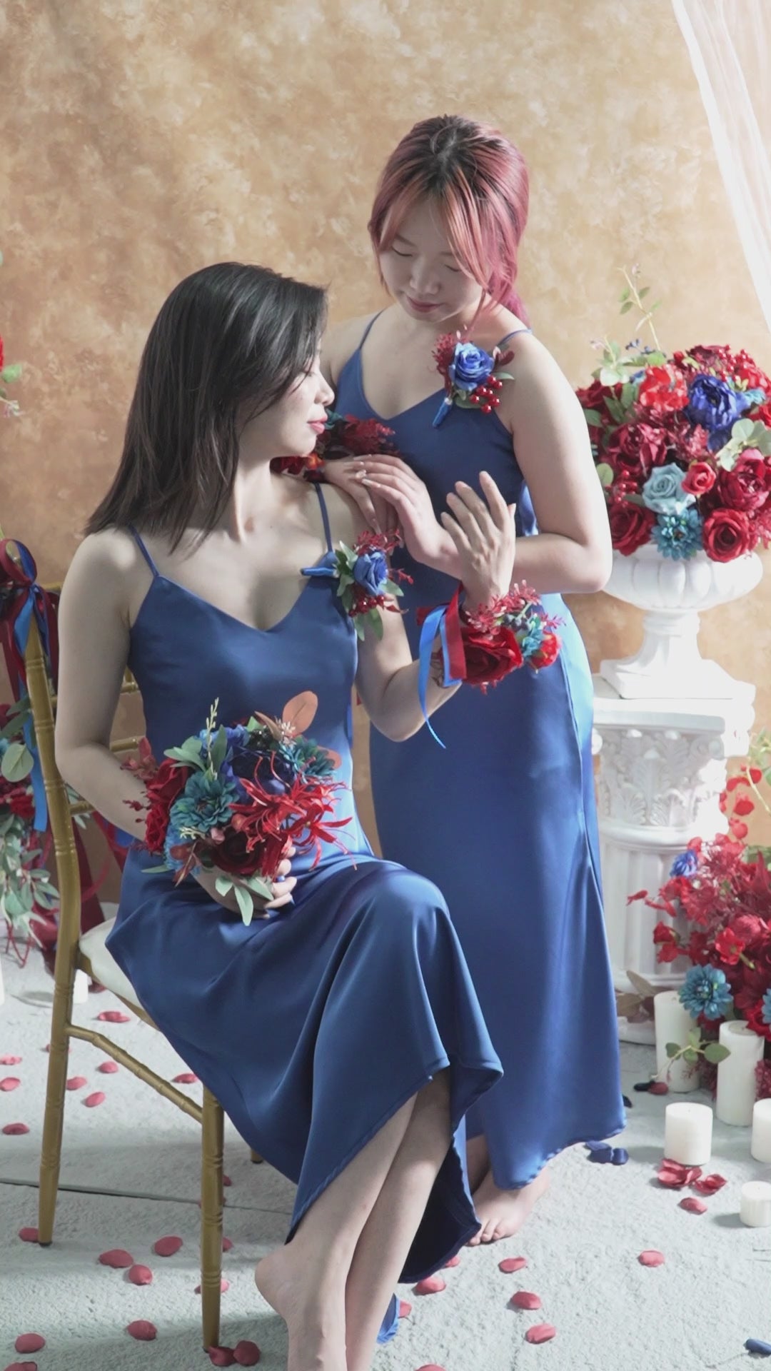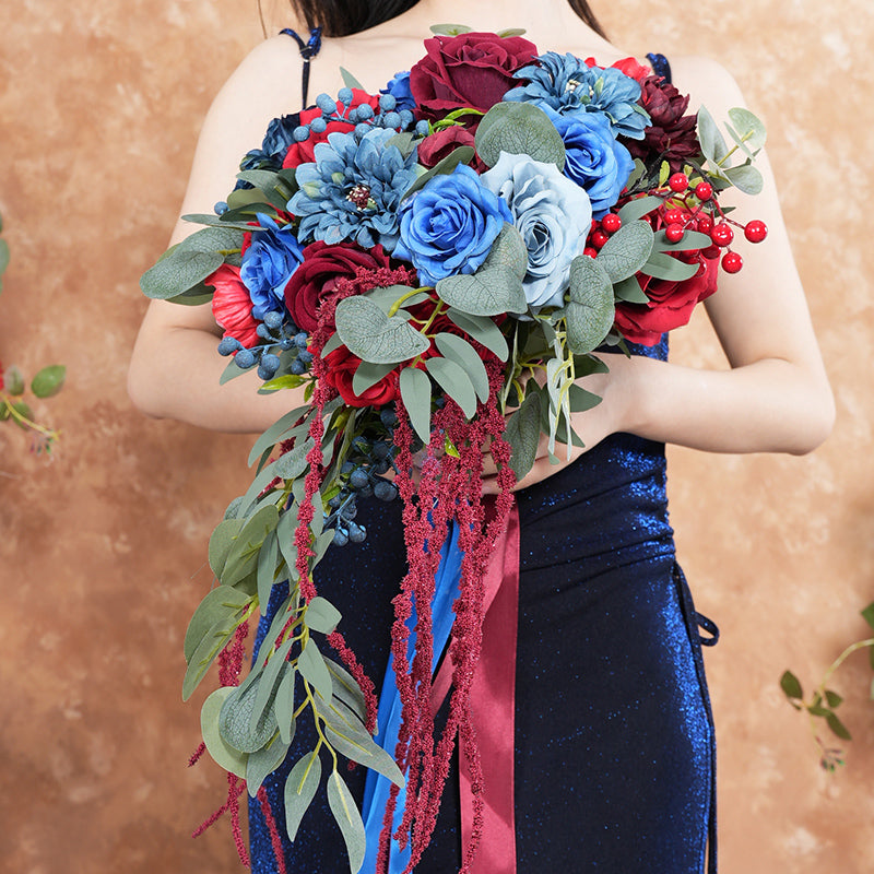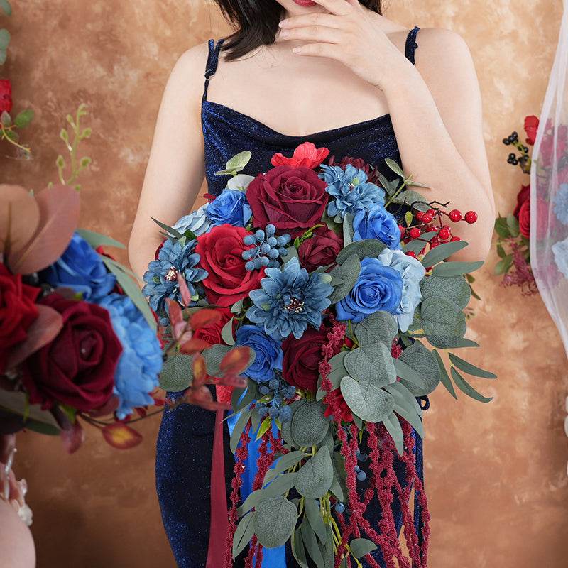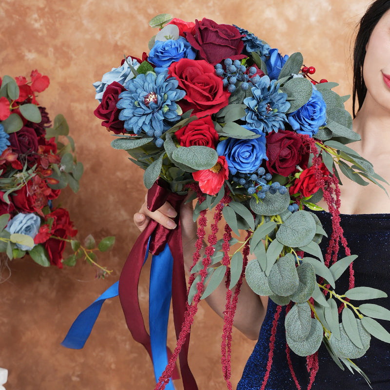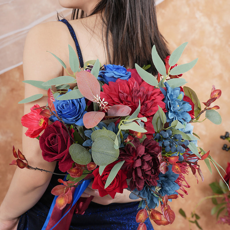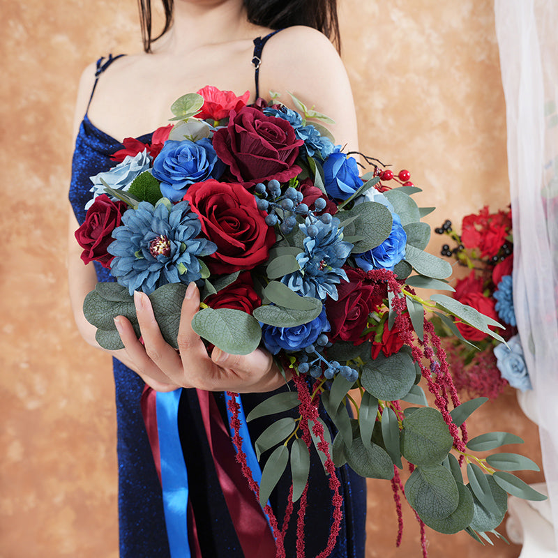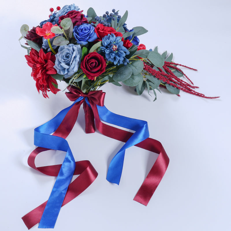 A8637 Red Blue Series Greenery Bridal Hand Bouquet Wedding Floral Arrangement