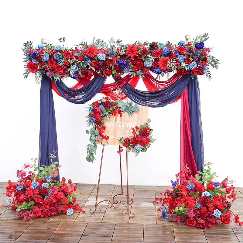A8637 Red Blue Series With Greenery Floor Flower Wedding