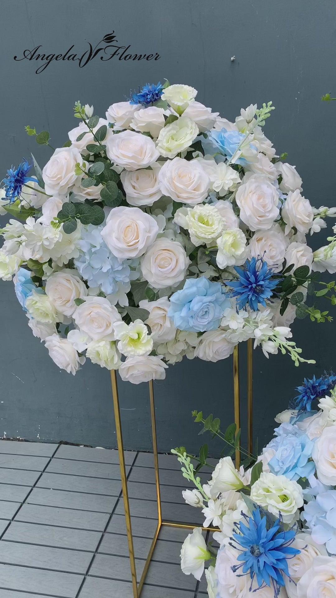 A7707 60cm 3/4 White Blue Wedding Table Centerpieces Floral Ball