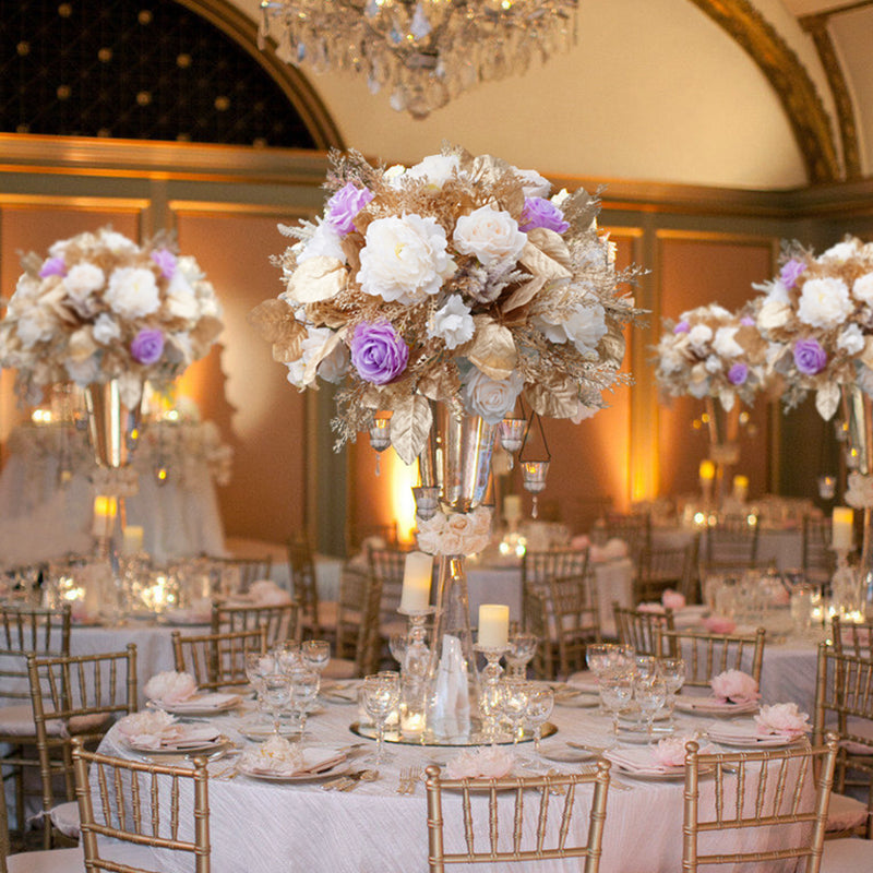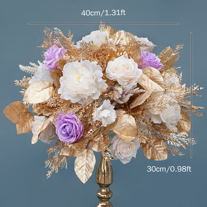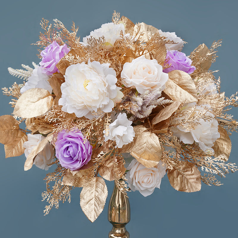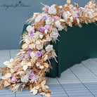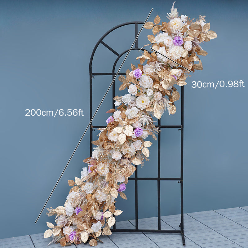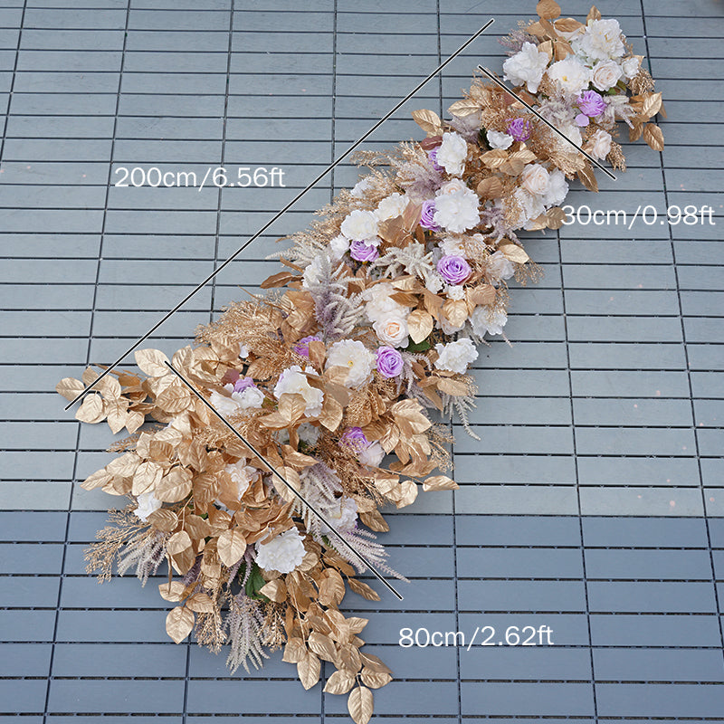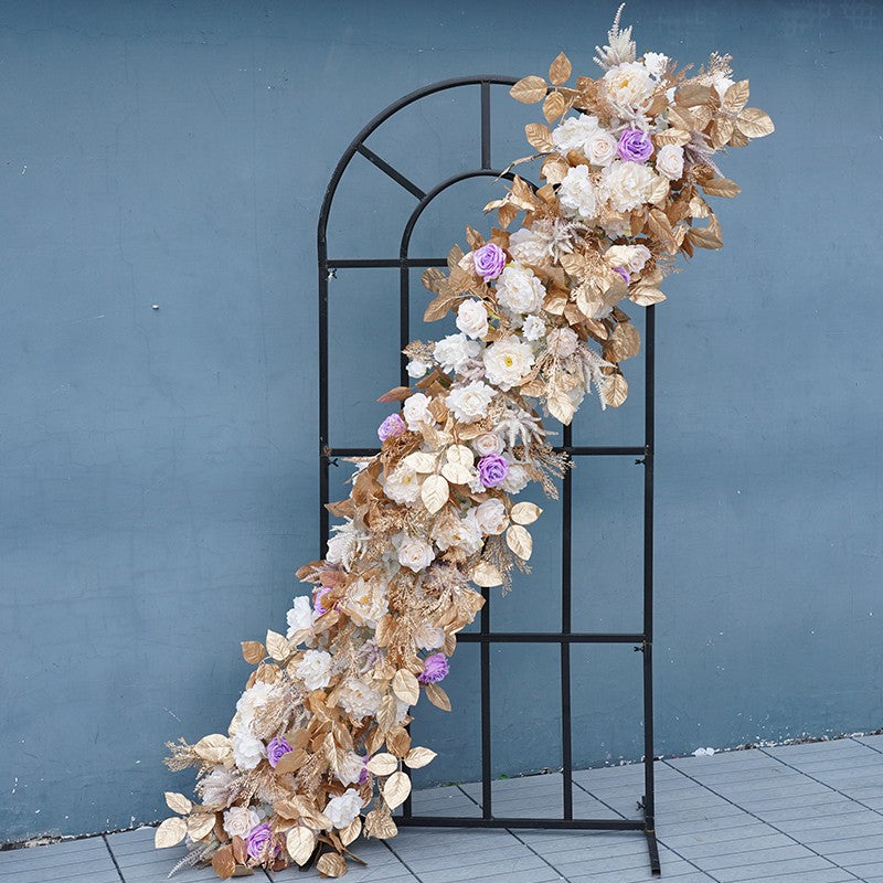 A7762 Gold Leaf Lavender Rose Foggrass Wedding Background Arch Flower Row