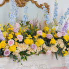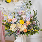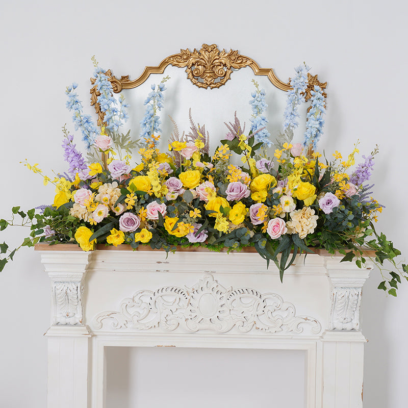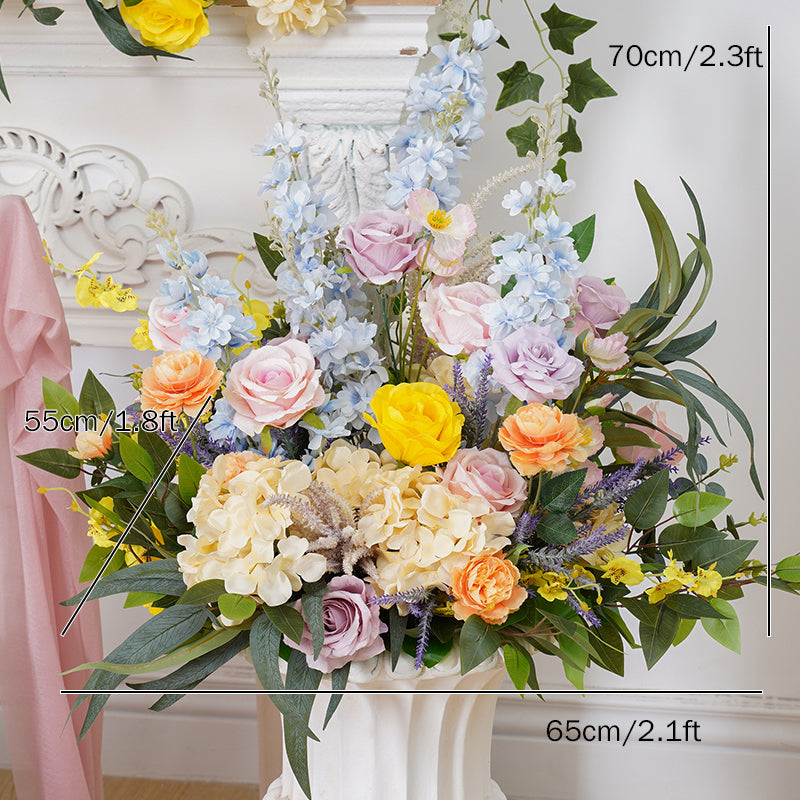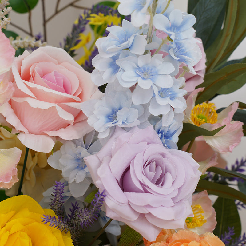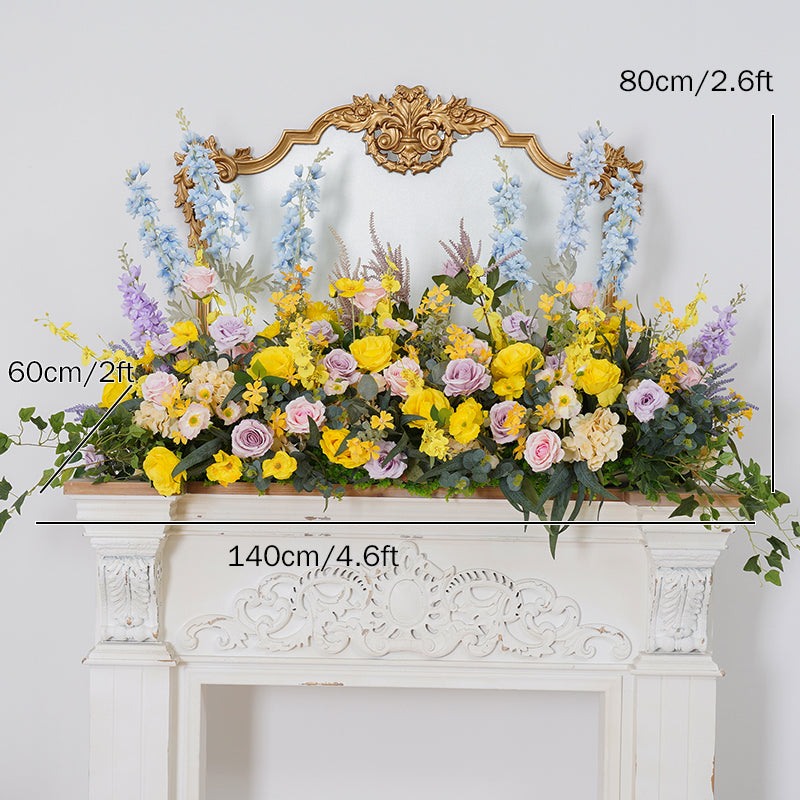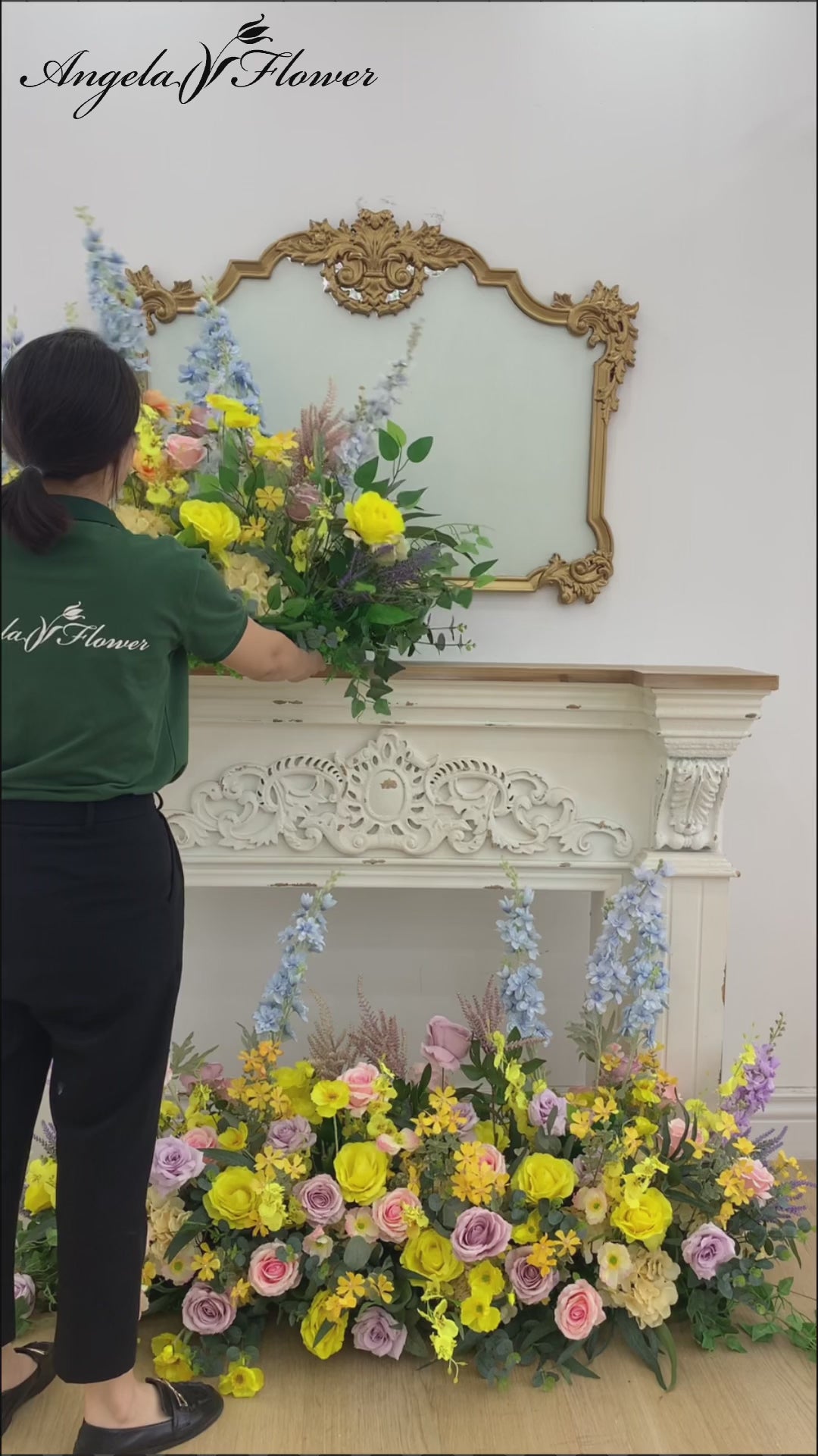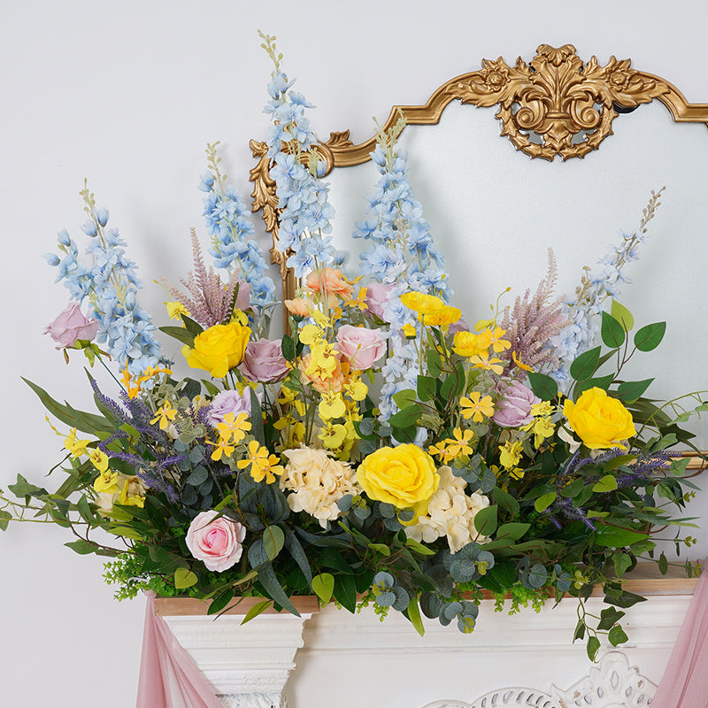 A8196 Yellow Purple Hyacinth Rose Green Leaves Floral Arrangement Wedding Backdrop