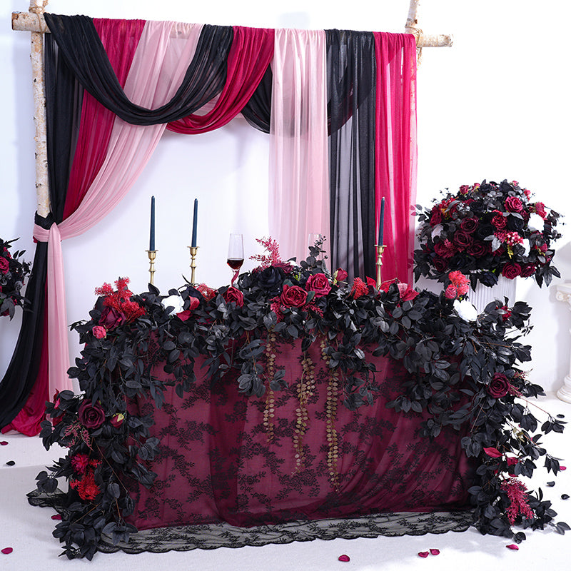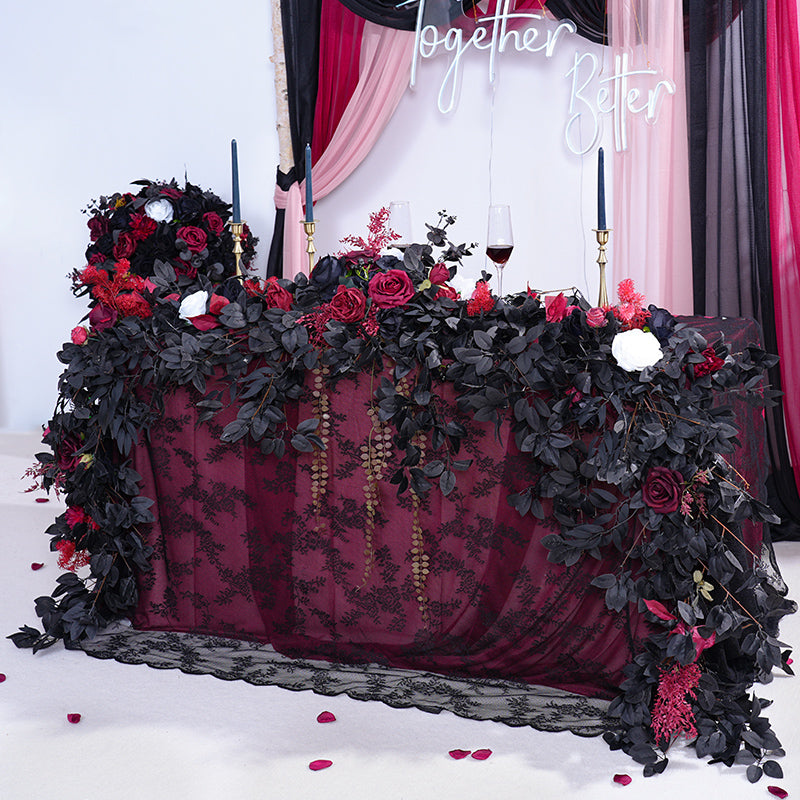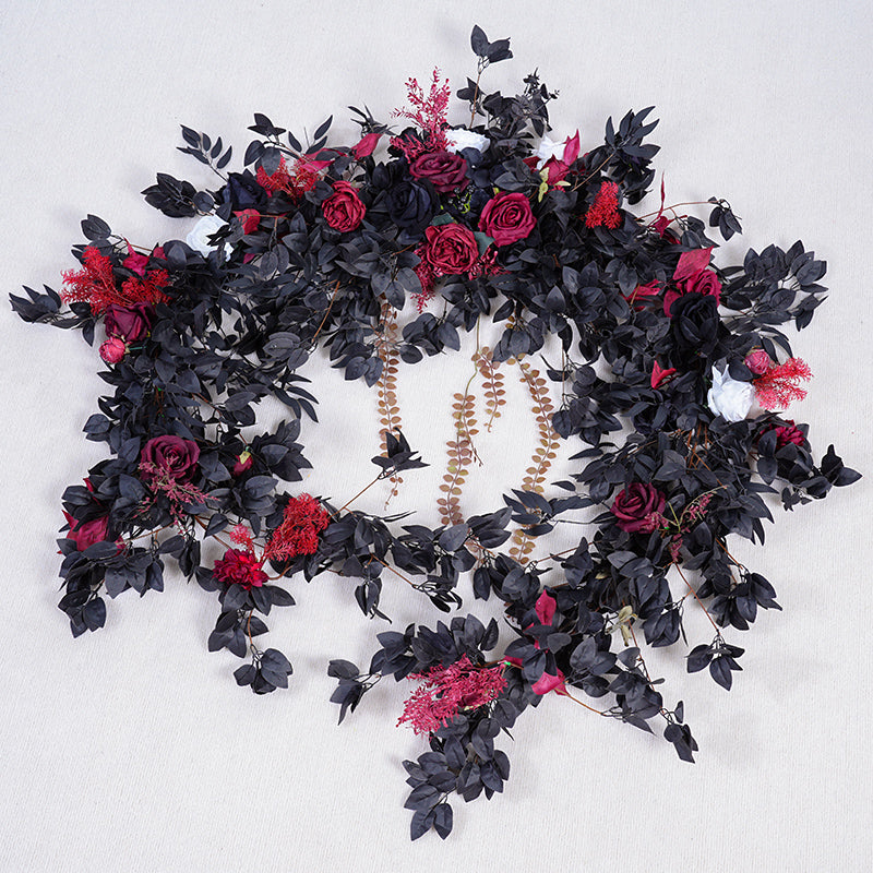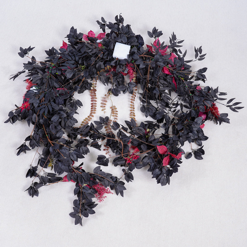 A865415 Black Burgundy Plam Mist Grass Plant Vine Garland Table Sofa Runner