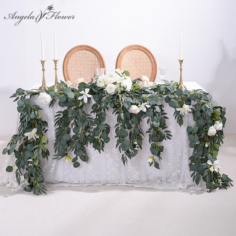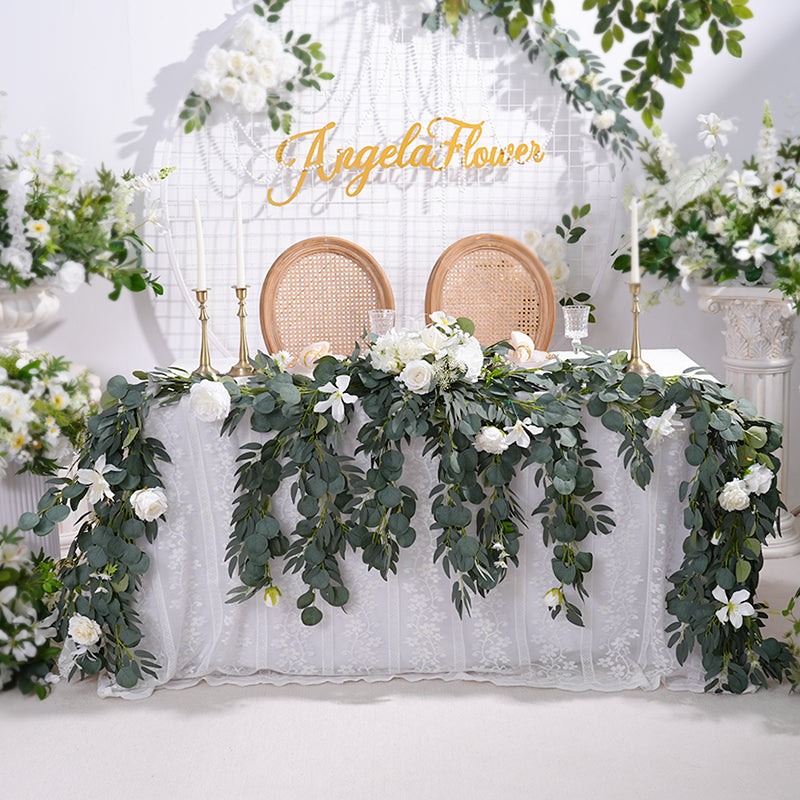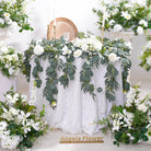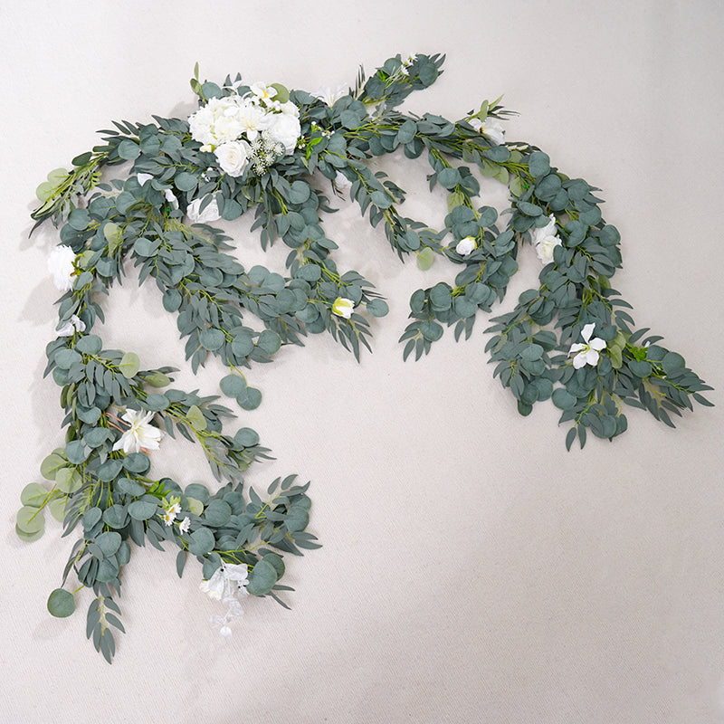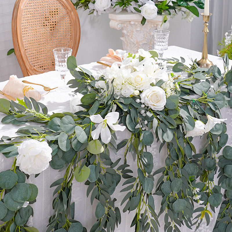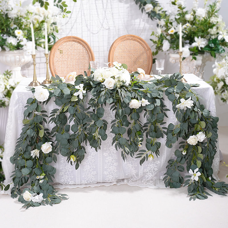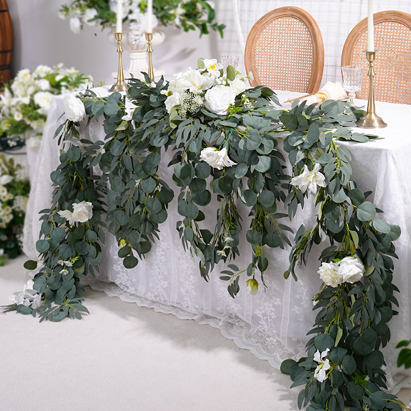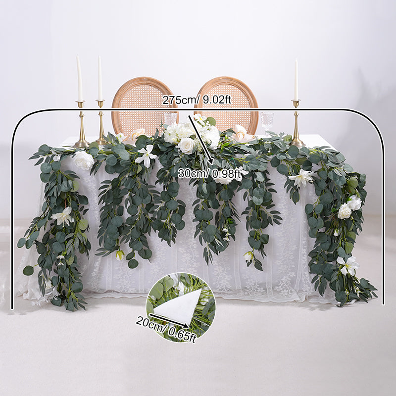 A869715 9.02ft White Rose Series Green Plant Vine Wedding Table Flower Garlands
