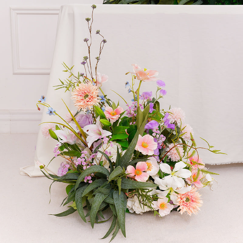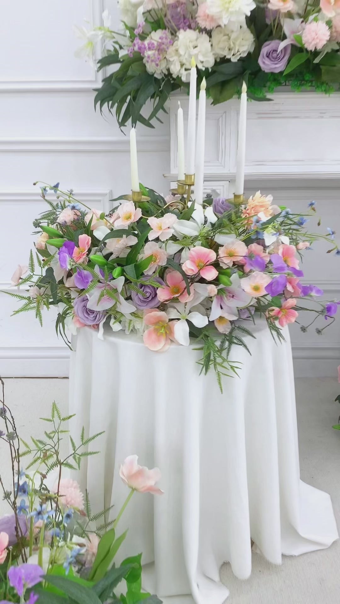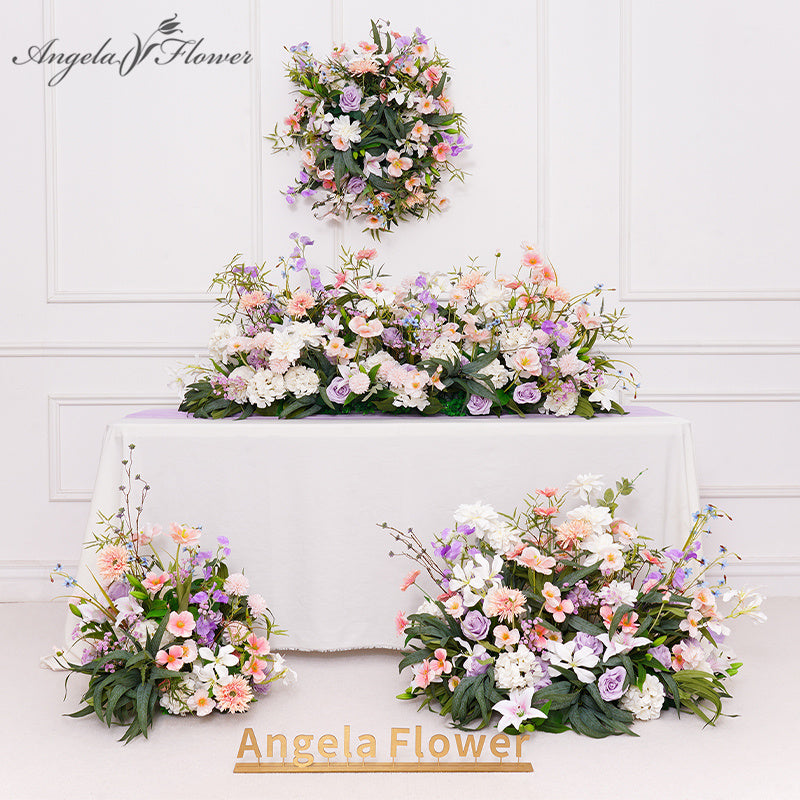 A8742 Lilac Pink White Wedding Backdrop Floor Floral Arrangement Table Crown
