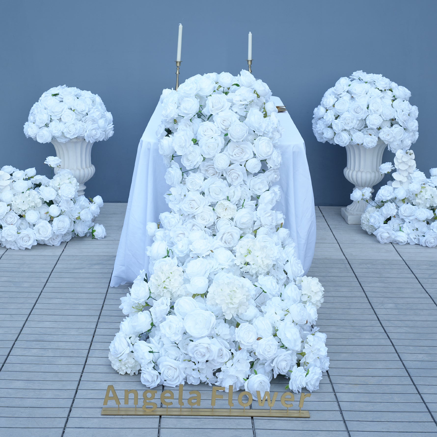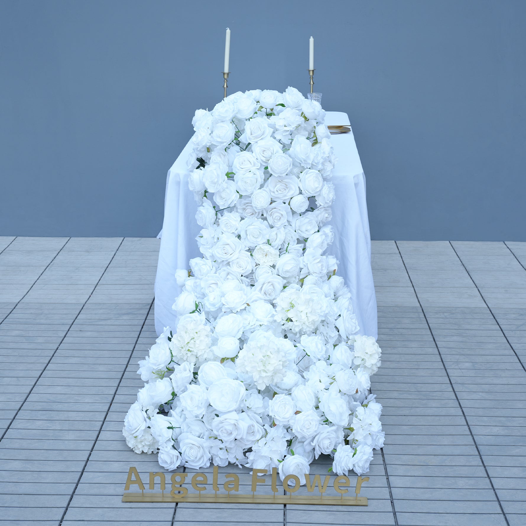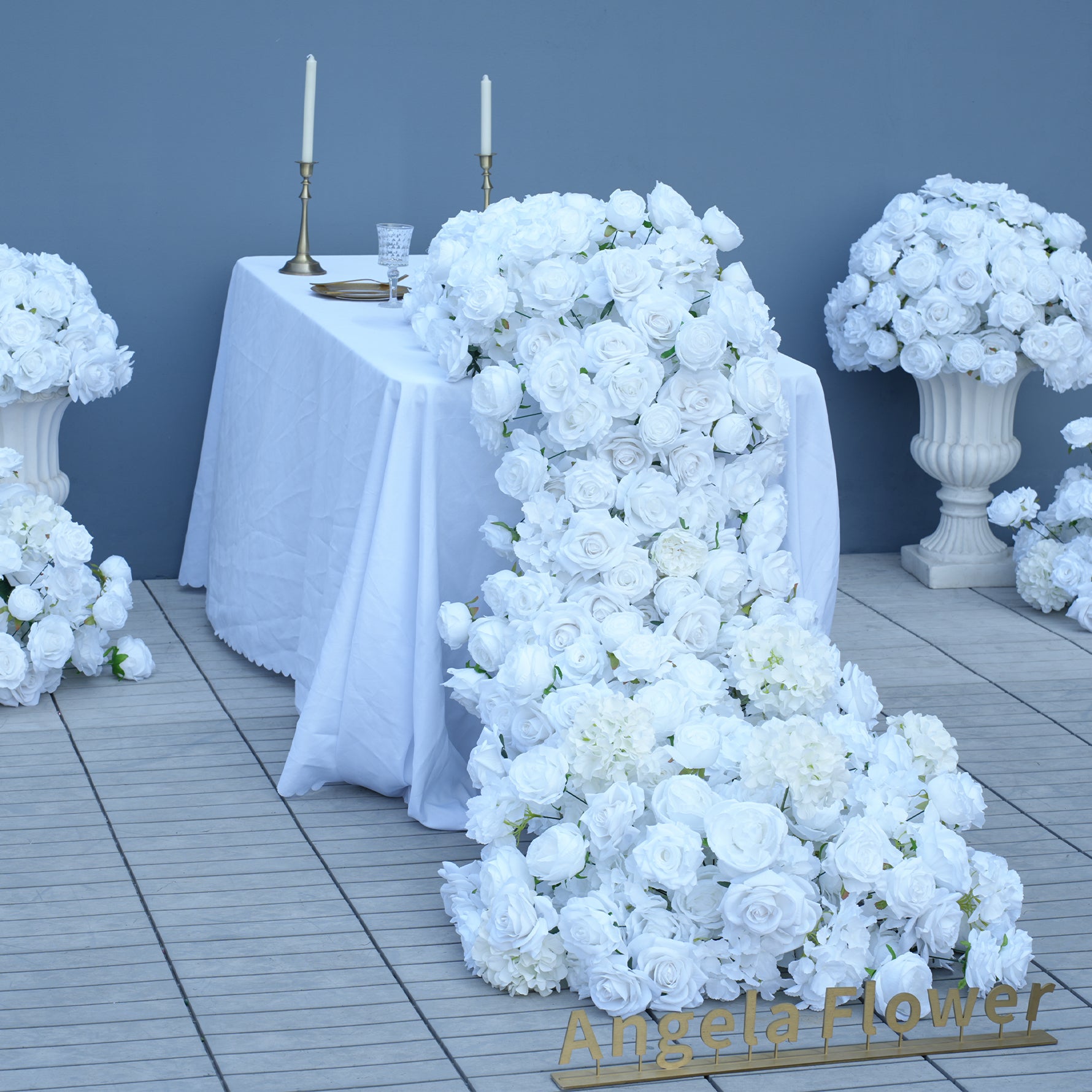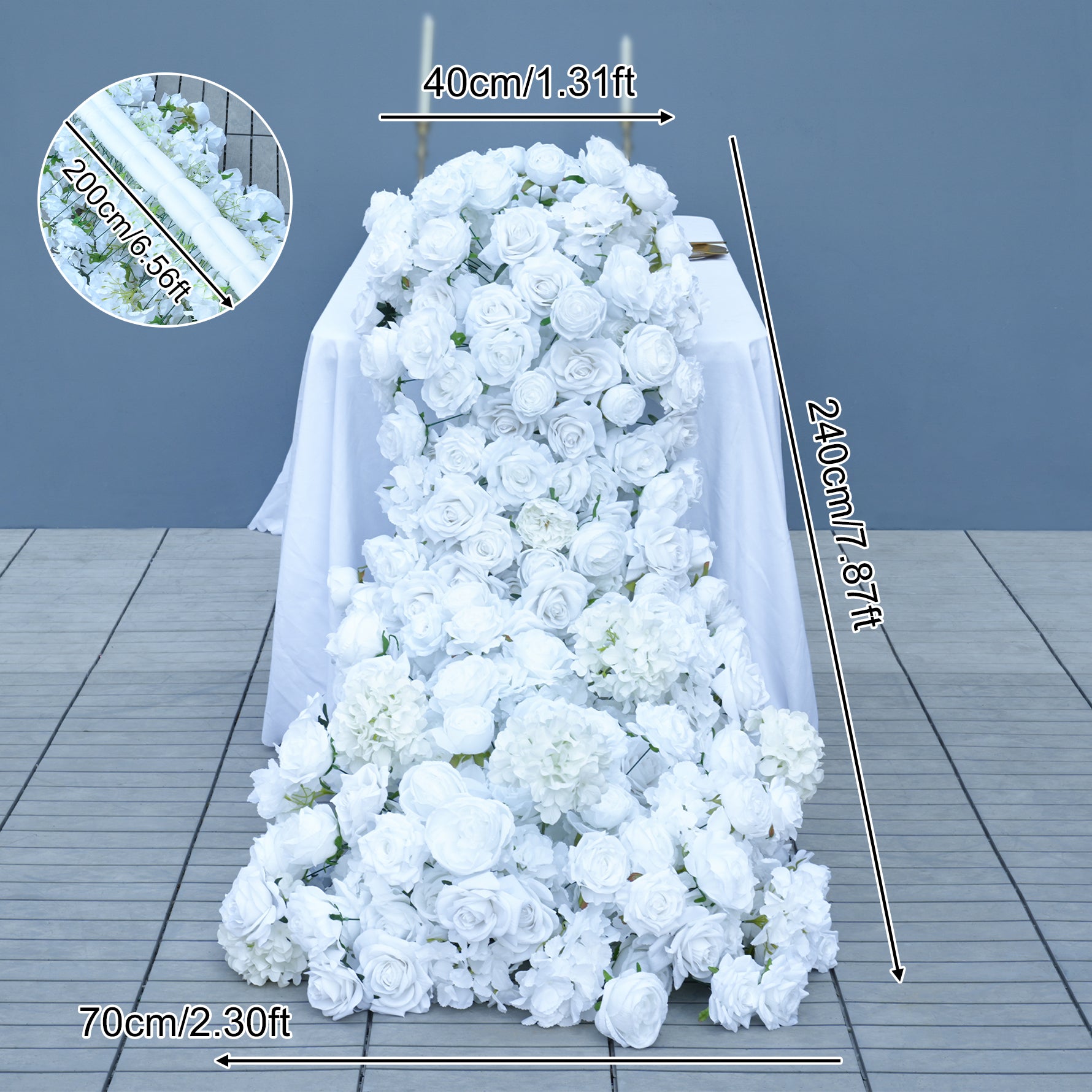 A875604 Pure White Rose Table Sofa Runner Wedding Decor Props