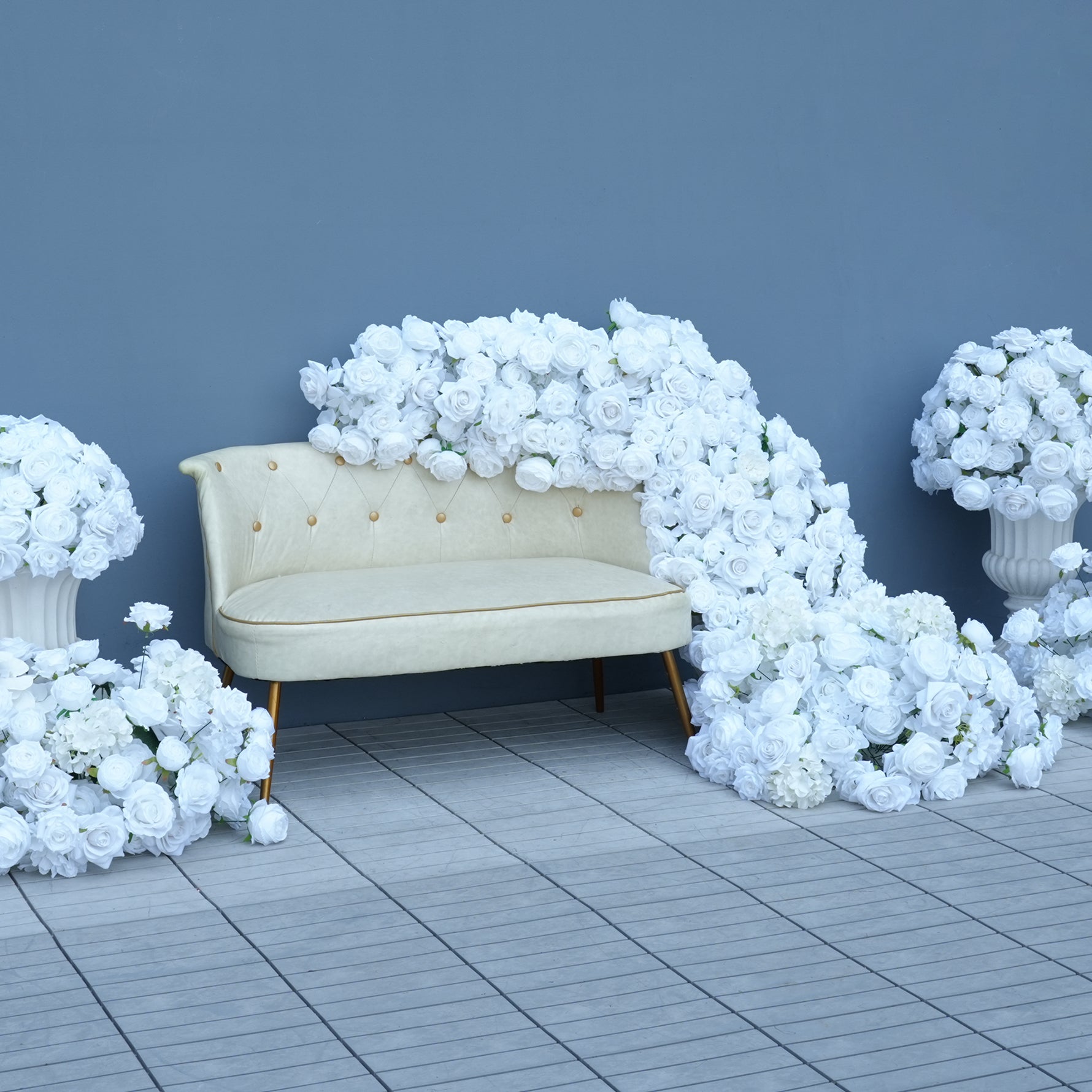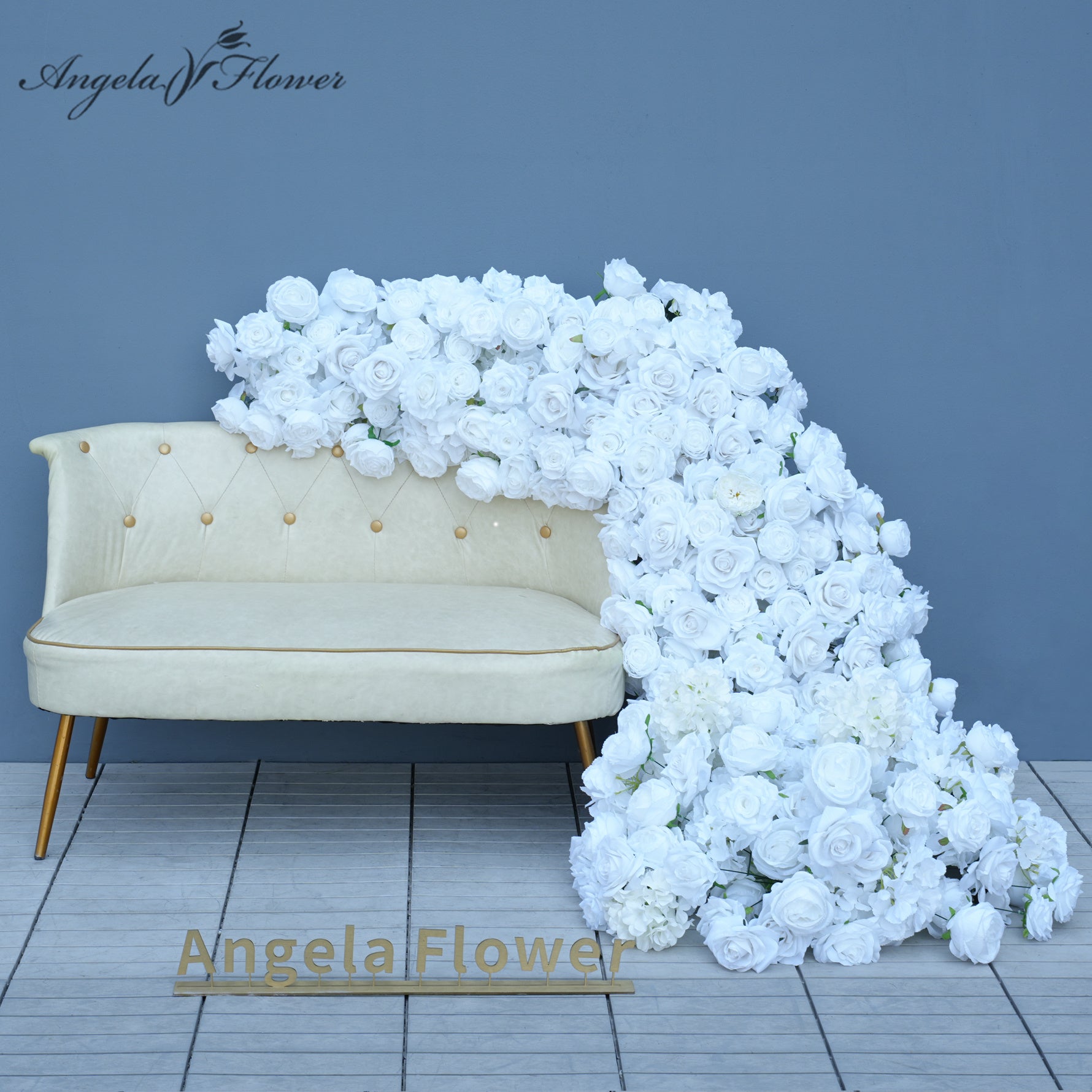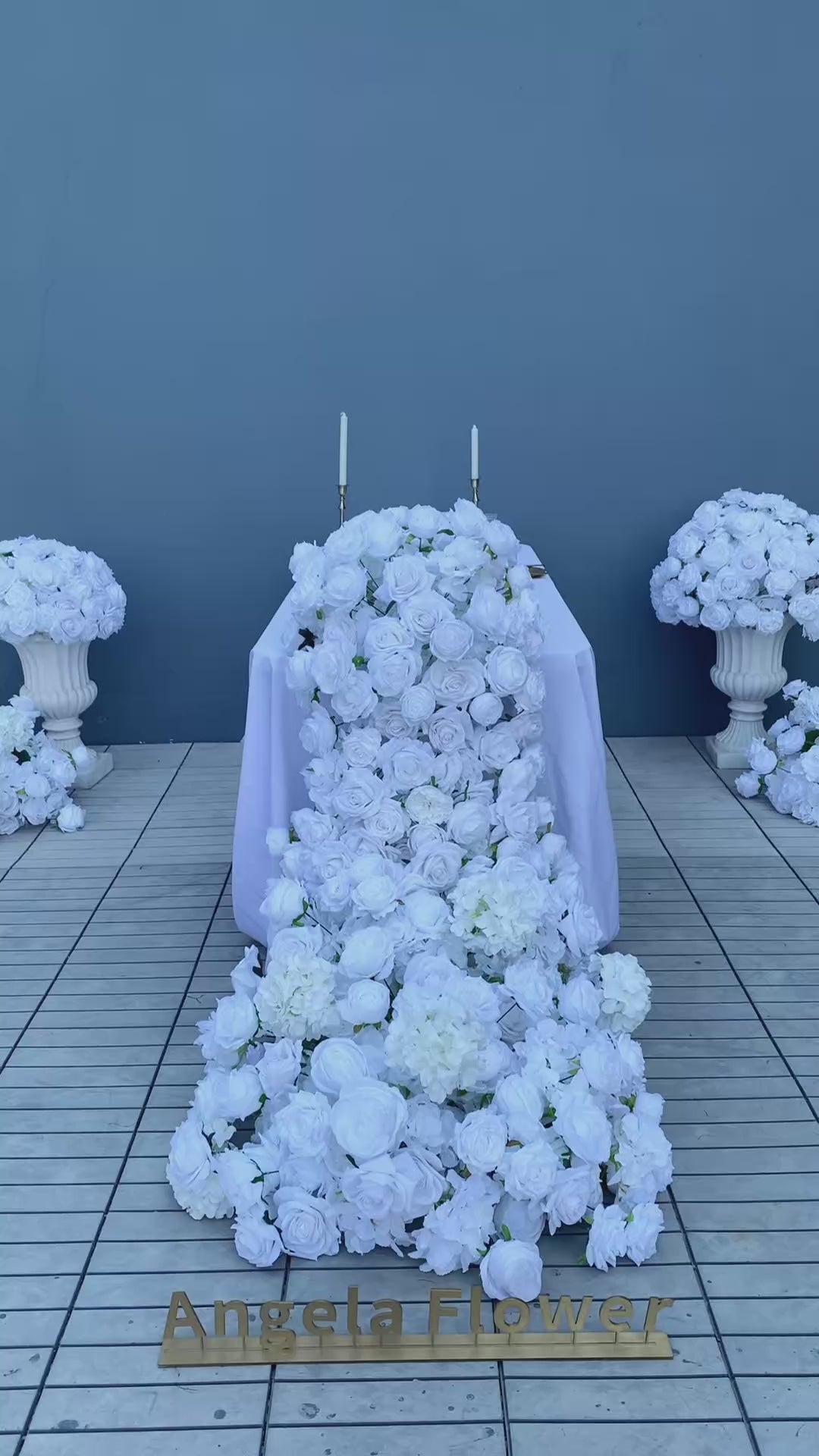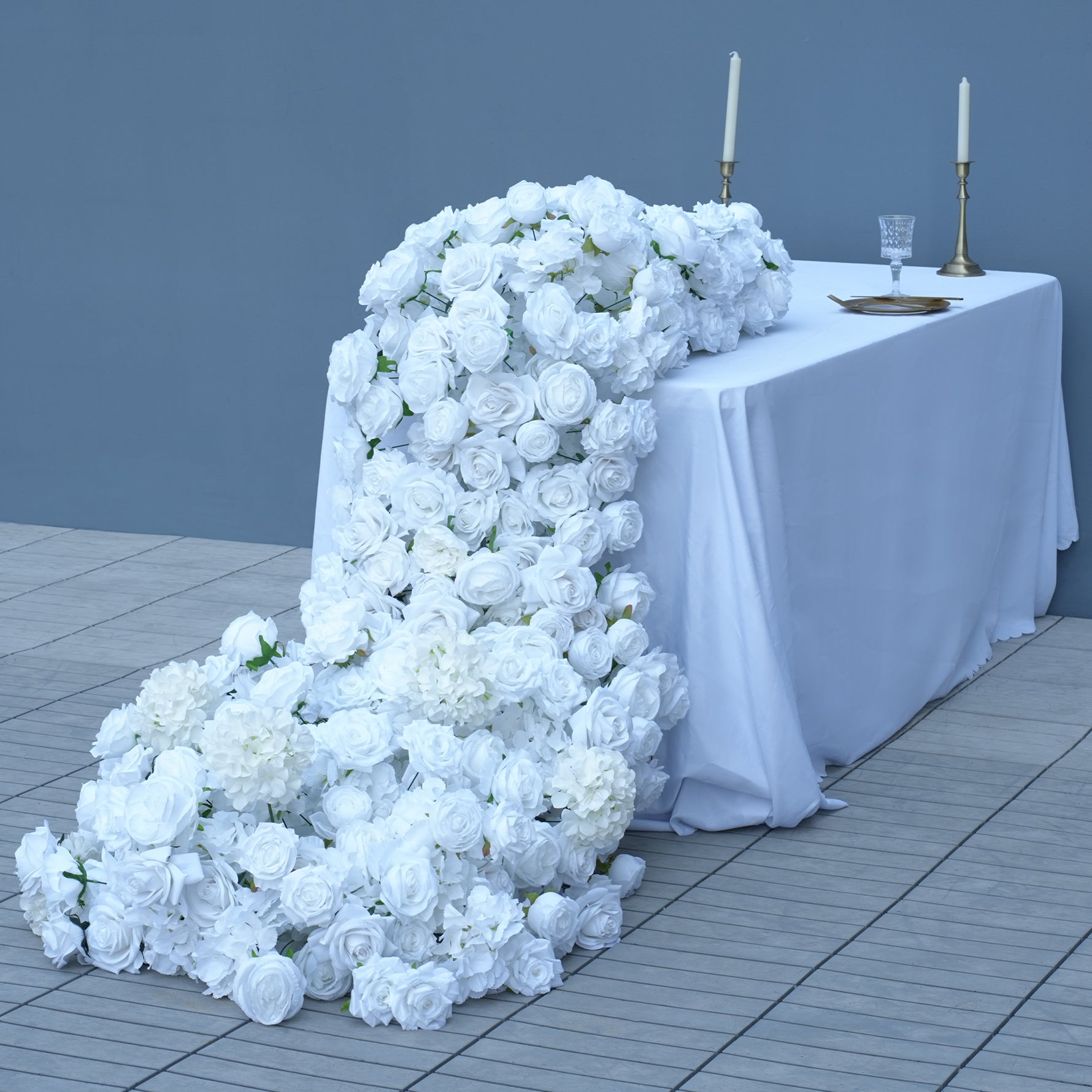 A875604 Pure White Rose Table Sofa Runner Wedding Decor Props