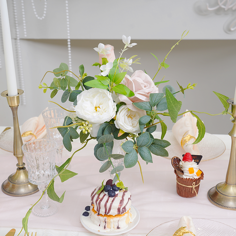 A8806 Anson Green Leaf Tulip Rose Flower Arrangement Wedding Bouquet Vase