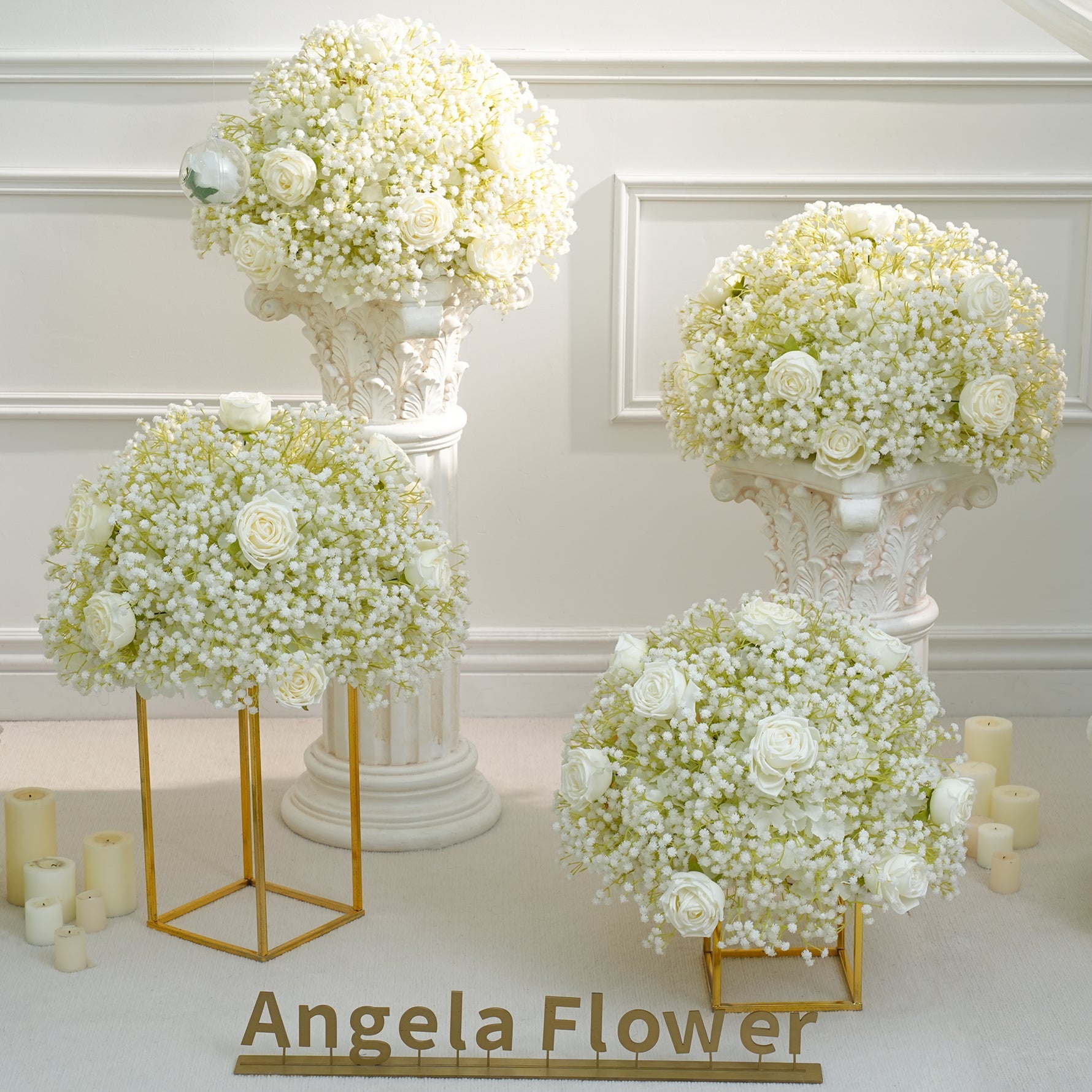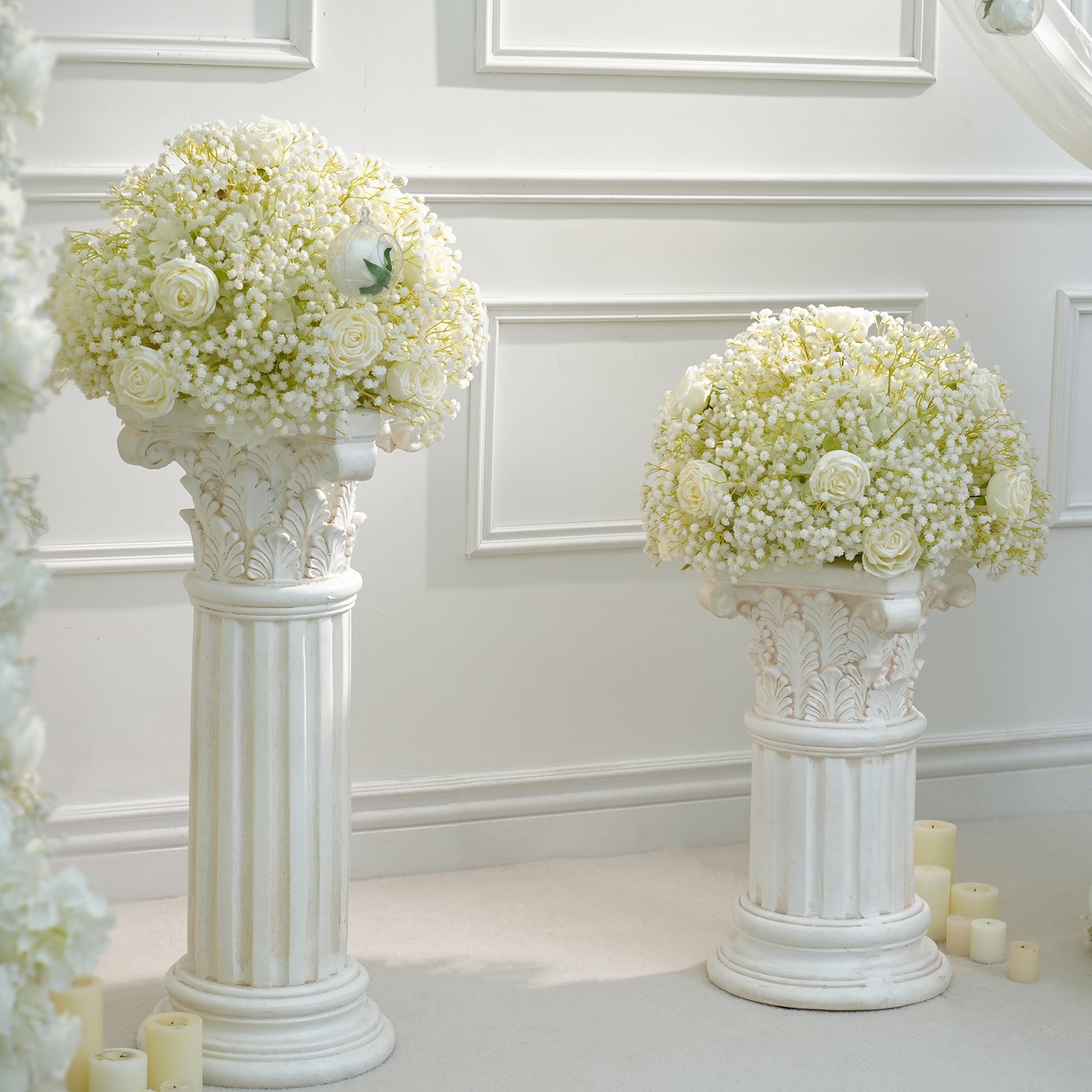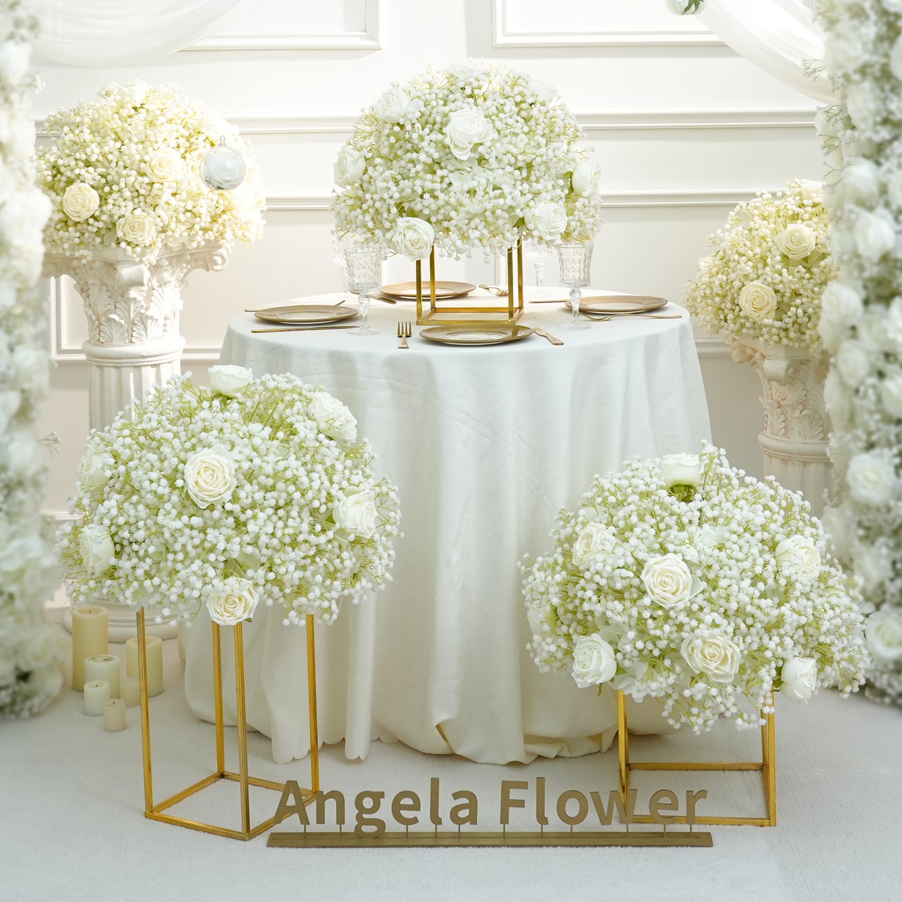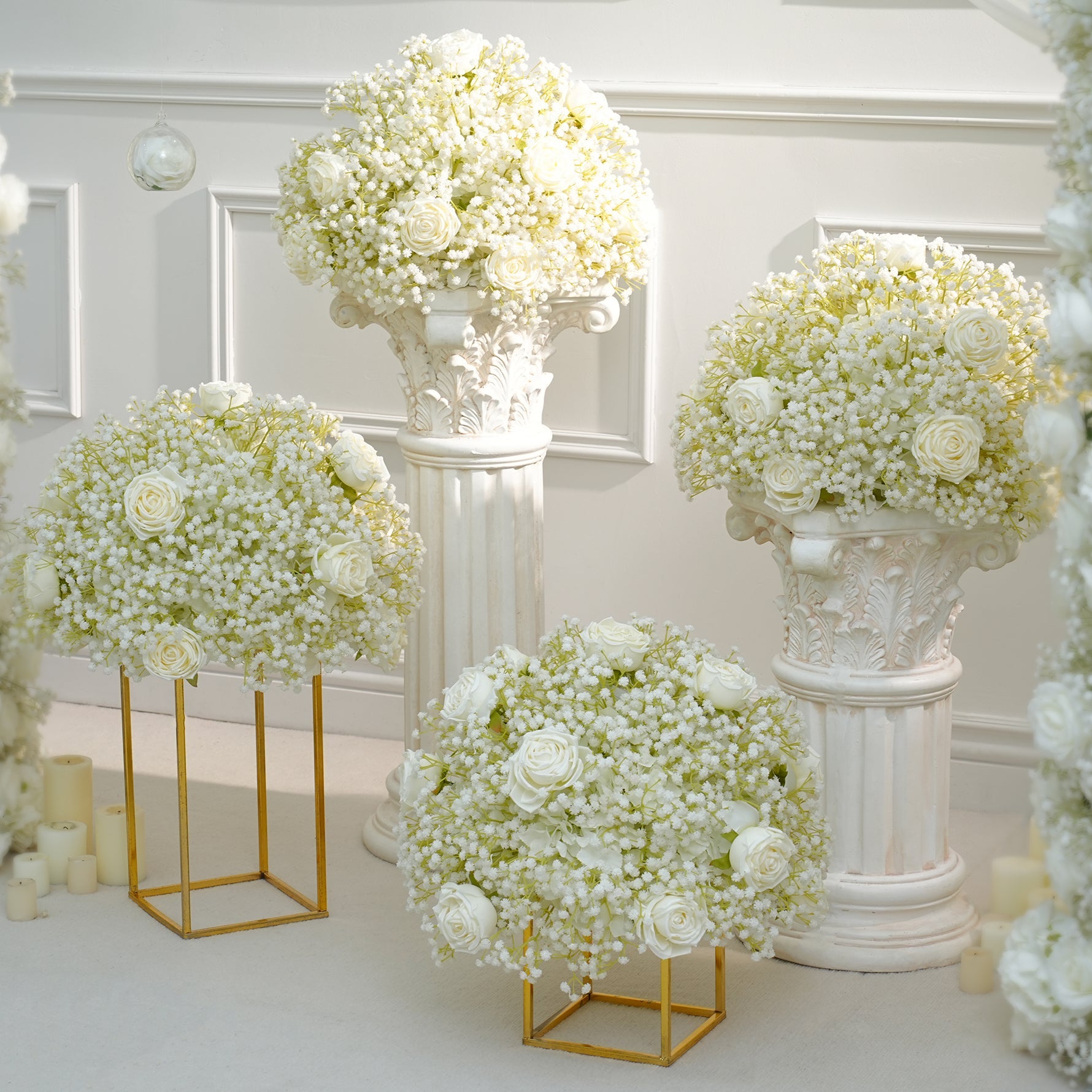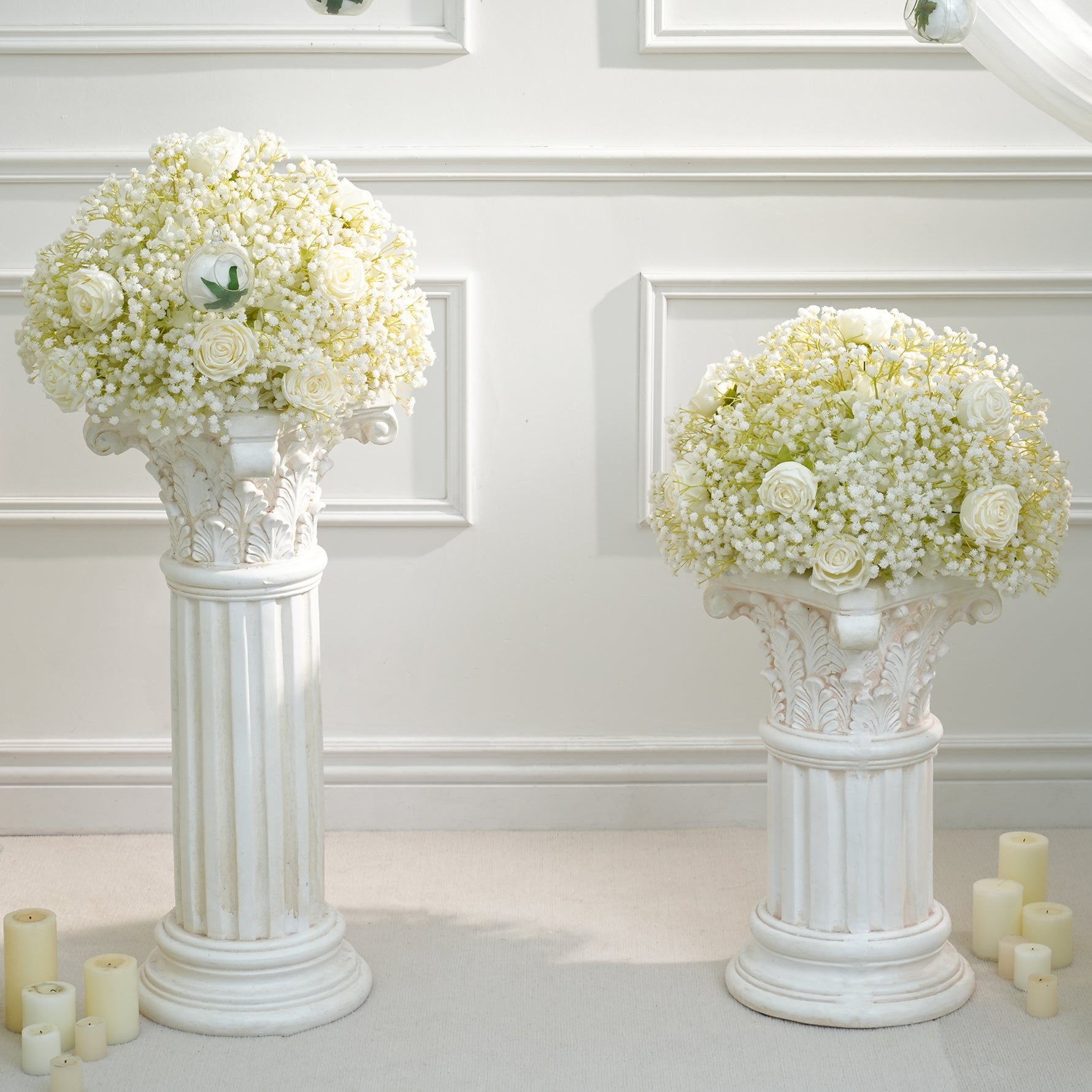 A8843 White Baby's Breath Rose Flower Ball Wedding Table Centerpieces Decor
