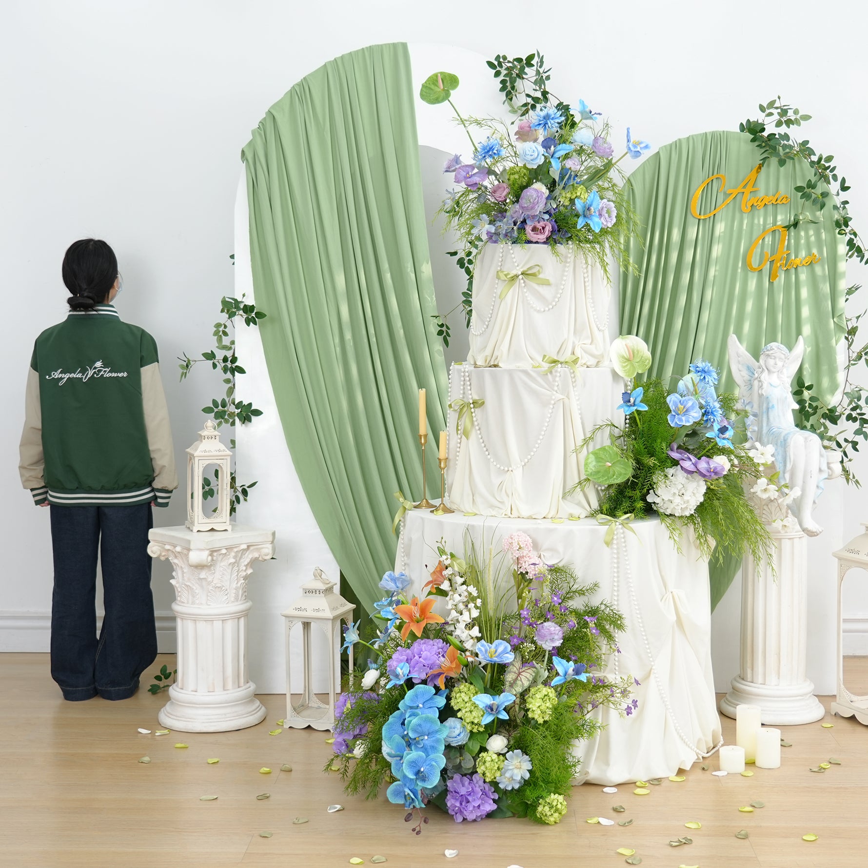 Color Inspiration: This Mori table flower, with blue and purple as the main color, with a variety of natural flowers representing nature, purity and freshness, can not only beautify the wedding site, but also make the whole banquet environment more elegant and romantic, giving you an unforgettable Mori wedding.