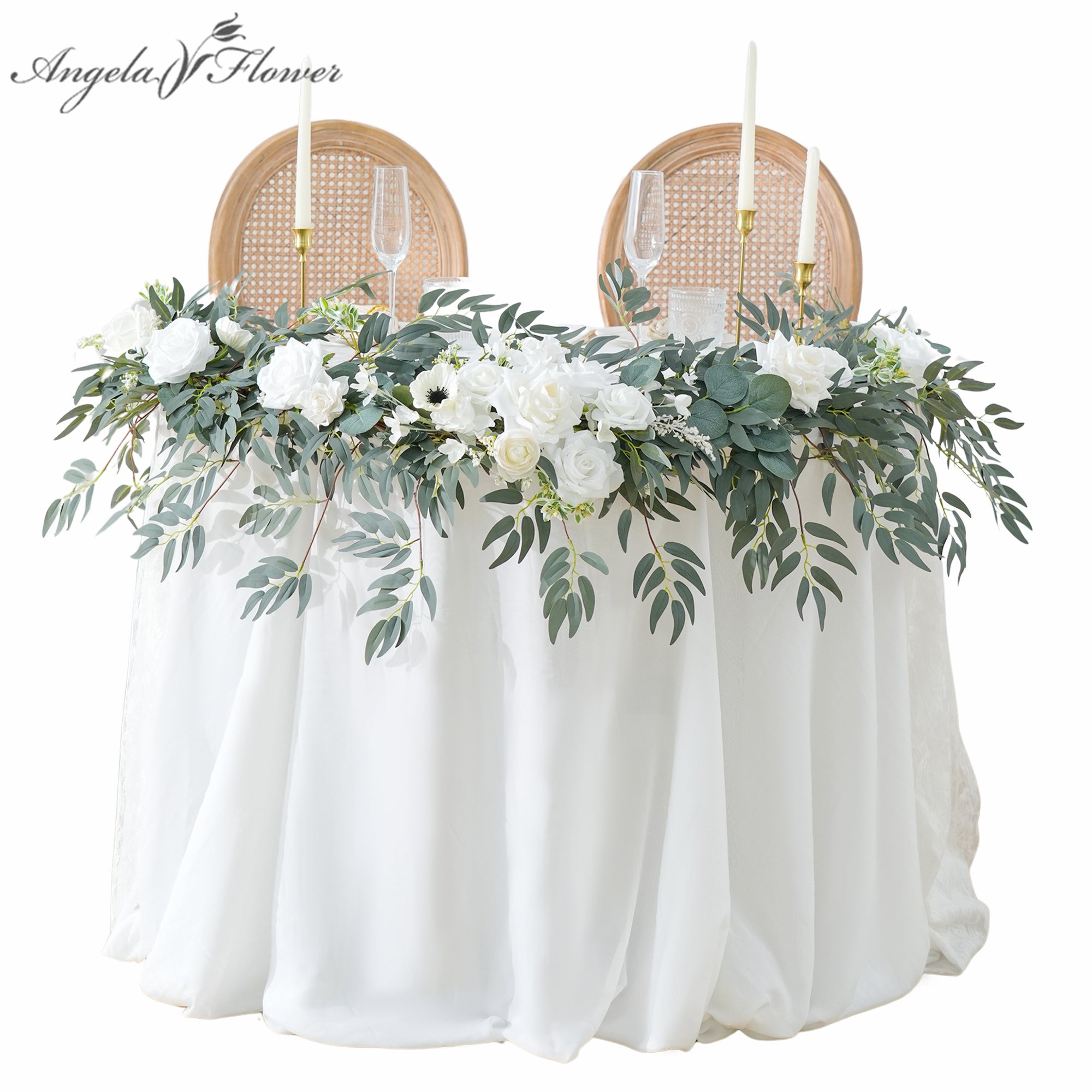 Color Inspiration: This floral garland features premium materials including lifelike silk roses, willow vines, baby's breath, and eucalyptus leaves. The pure white blossoms intertwined with emerald green foliage create a fresh and elegant woodland aesthetic.