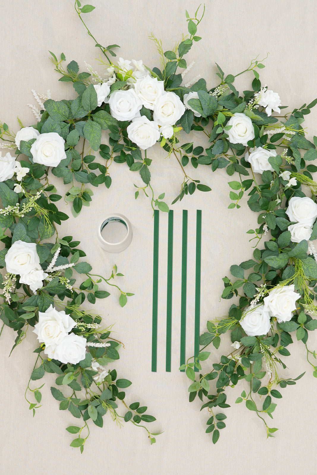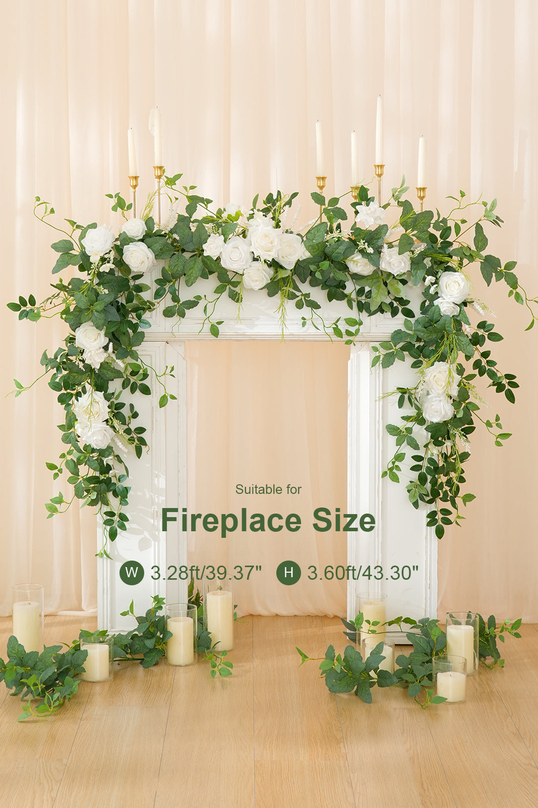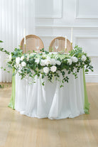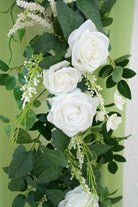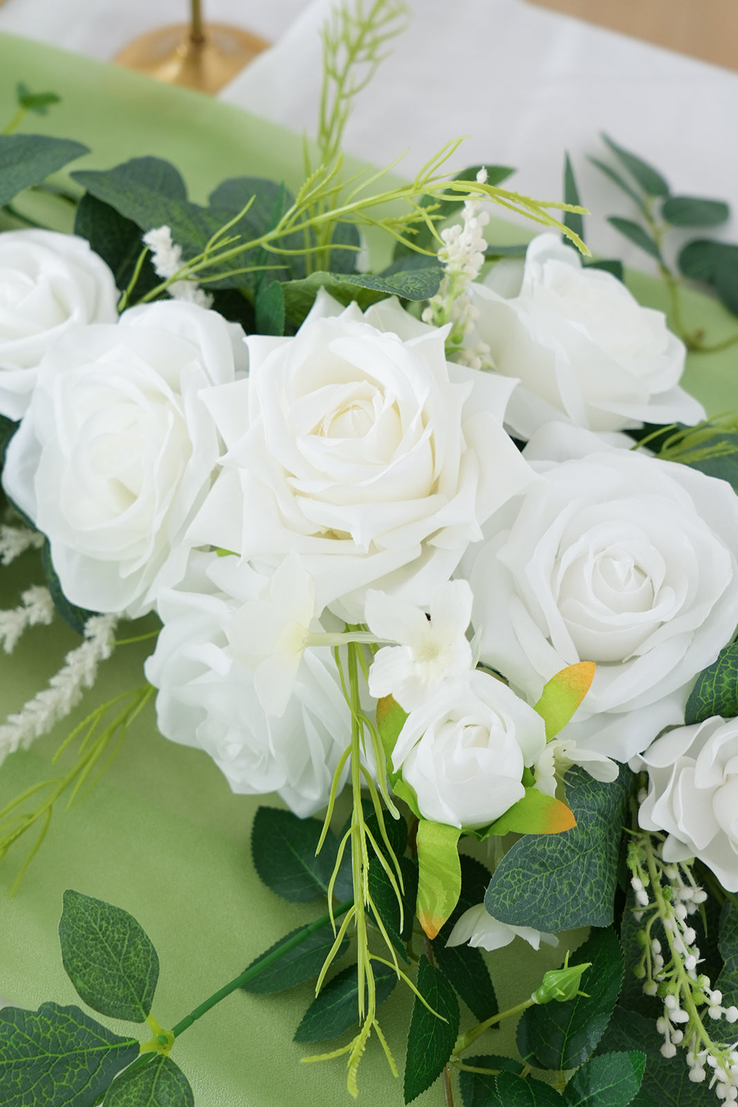 Color Inspiration: Transform any space with our exquisitely crafted floral garland. Featuring premium materials like lifelike silk roses, delicate willow vines, airy baby's breath, and vibrant eucalyptus leaves, this garland embodies natural beauty. The pure white roses create a striking contrast against the emerald green foliage, evoking a fresh, woodland aesthetic. Drape it across mantels, arches, or tables for an elegant touch.