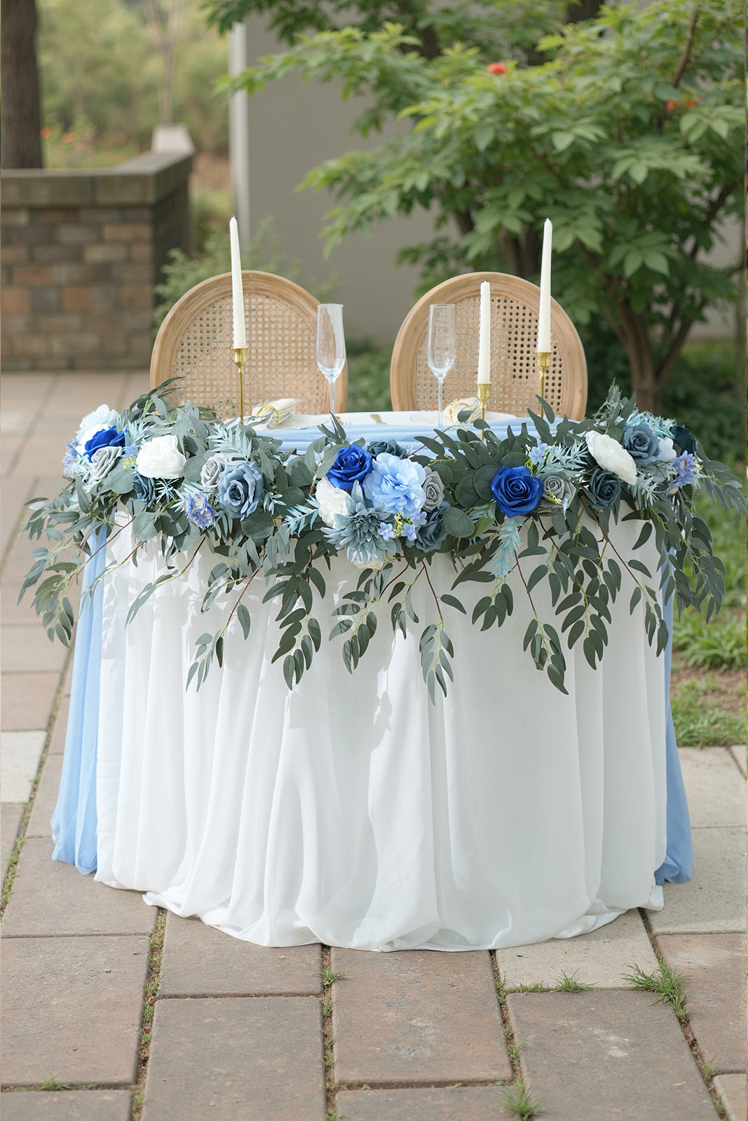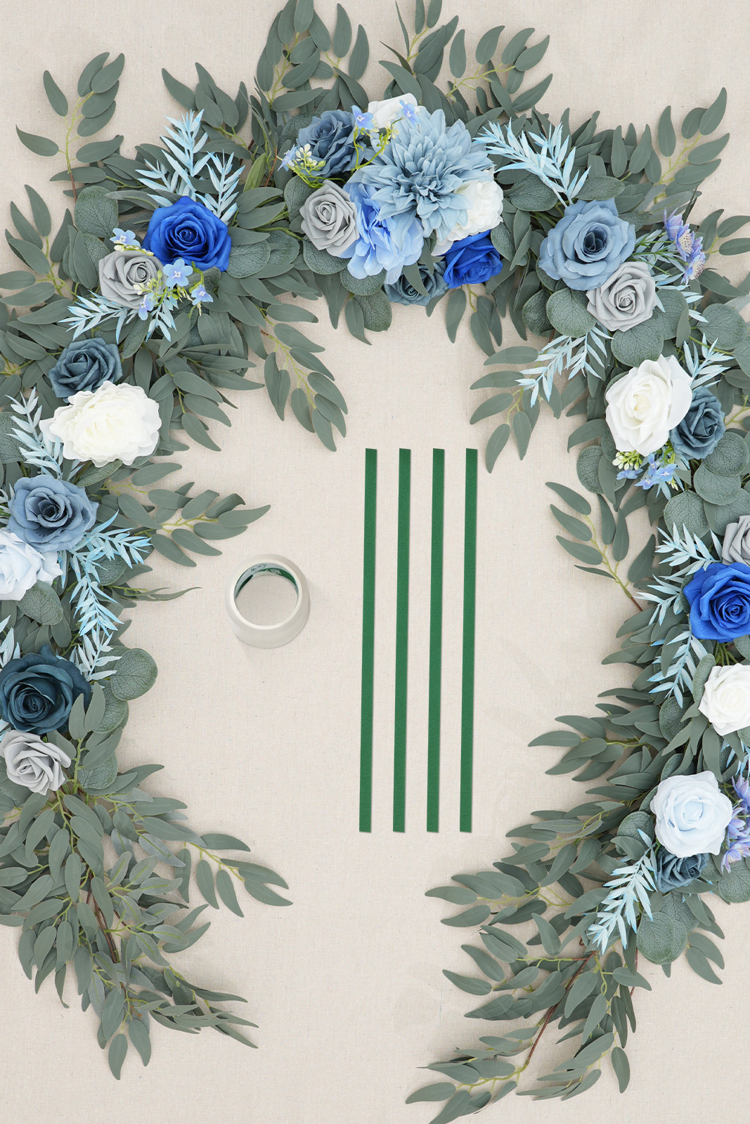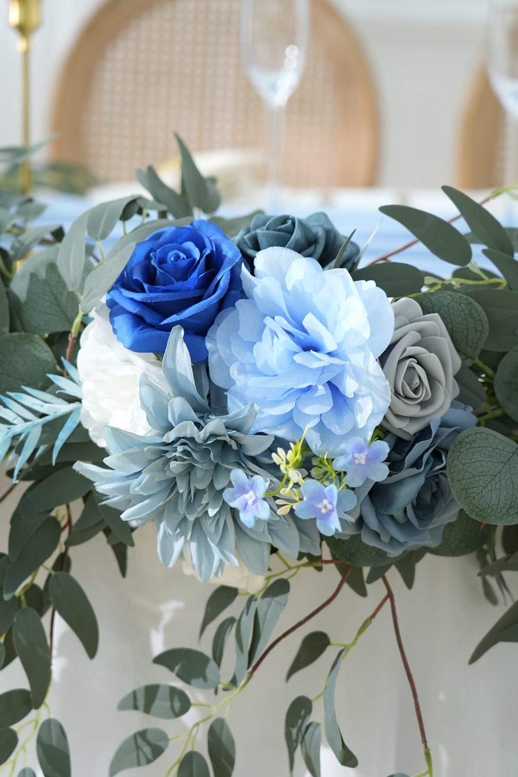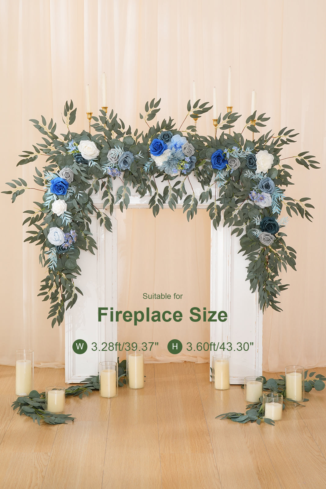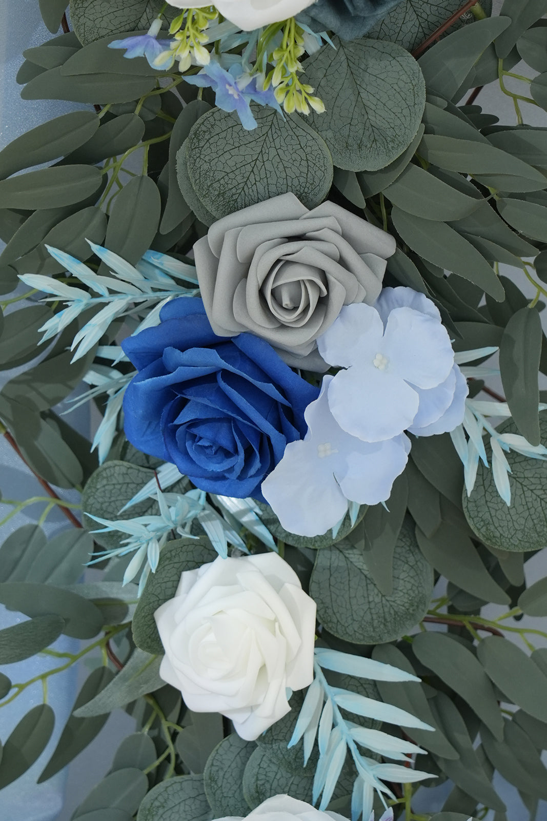 Color Inspiration: Transform your wedding with our 7ft blue greenery garland! Featuring a mix of white, royal blue, and other blue florals amidst lush greenery, it's perfect for arches, tables, or walls. High-quality materials provide a realistic look and long-lasting beauty. Easily customize your wedding décor with this versatile and stunning garland.