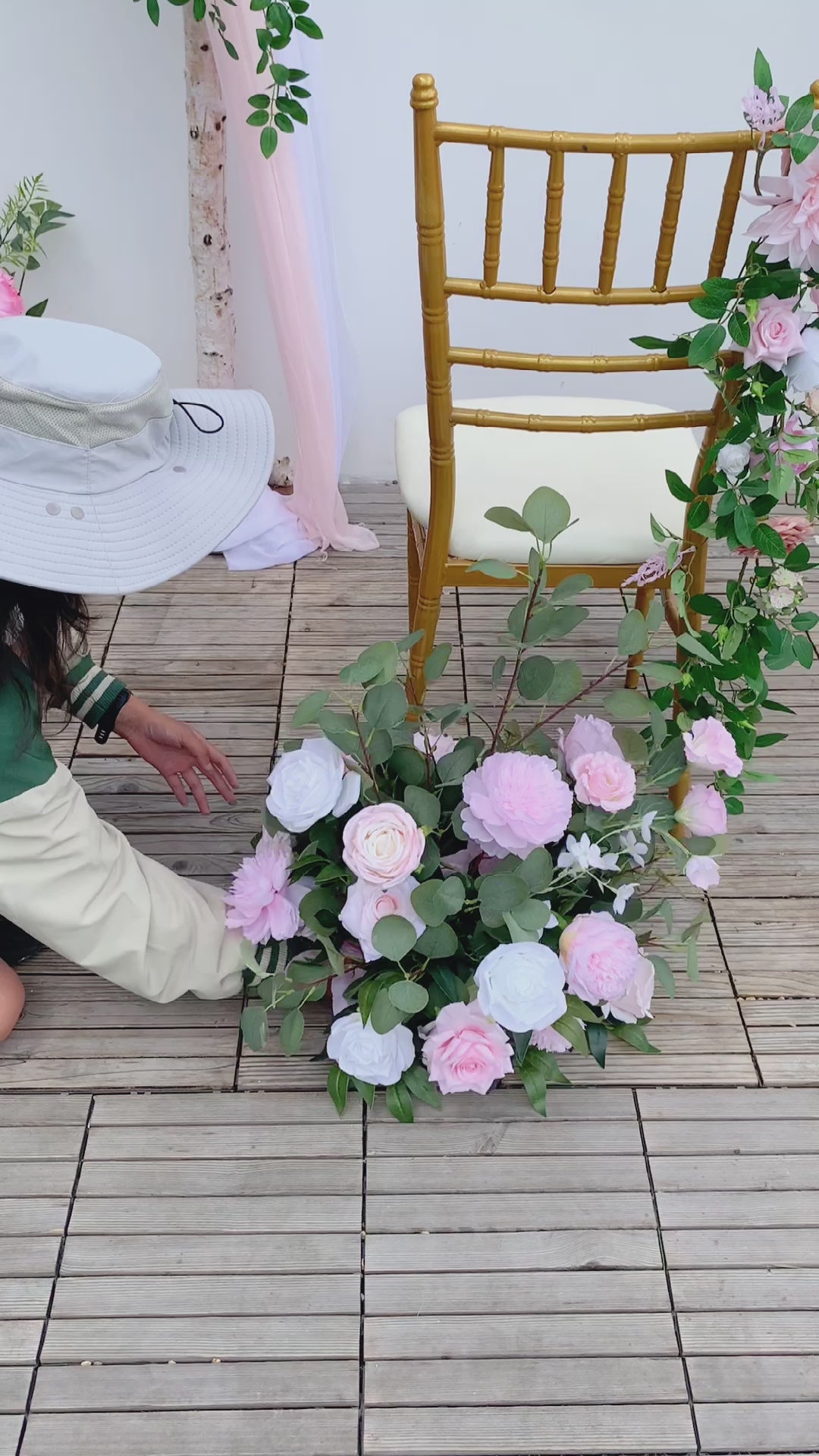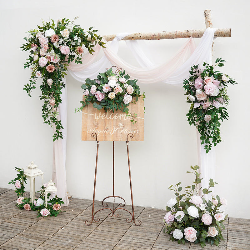 A864017 Pink White Rose Greenery Floor Flower Wedding Floral Arrangement