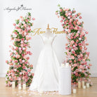 A8934 Pink Rose Greenery Flower Row Horn Arch Wedding Event Decor Props