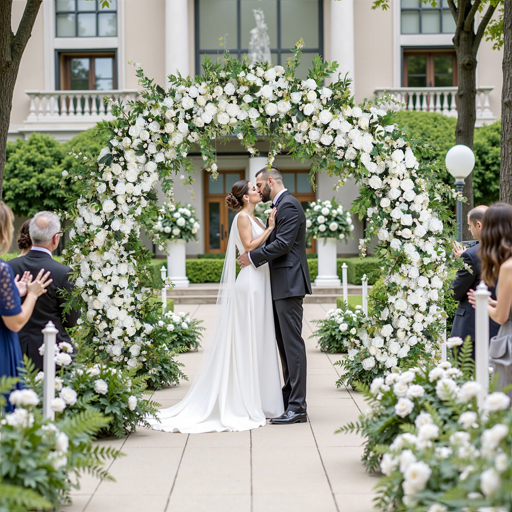 A8111 White Rose With Green Wedding Round Arch Decor Floral Arrangement