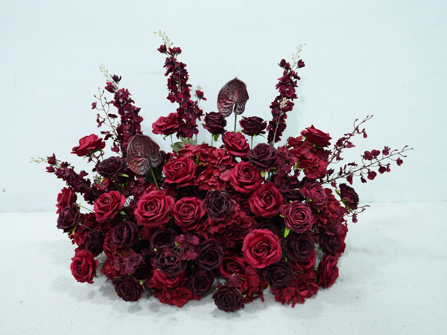 Main Materials: Rose, hydrangea, delphinium, plam, etc.
