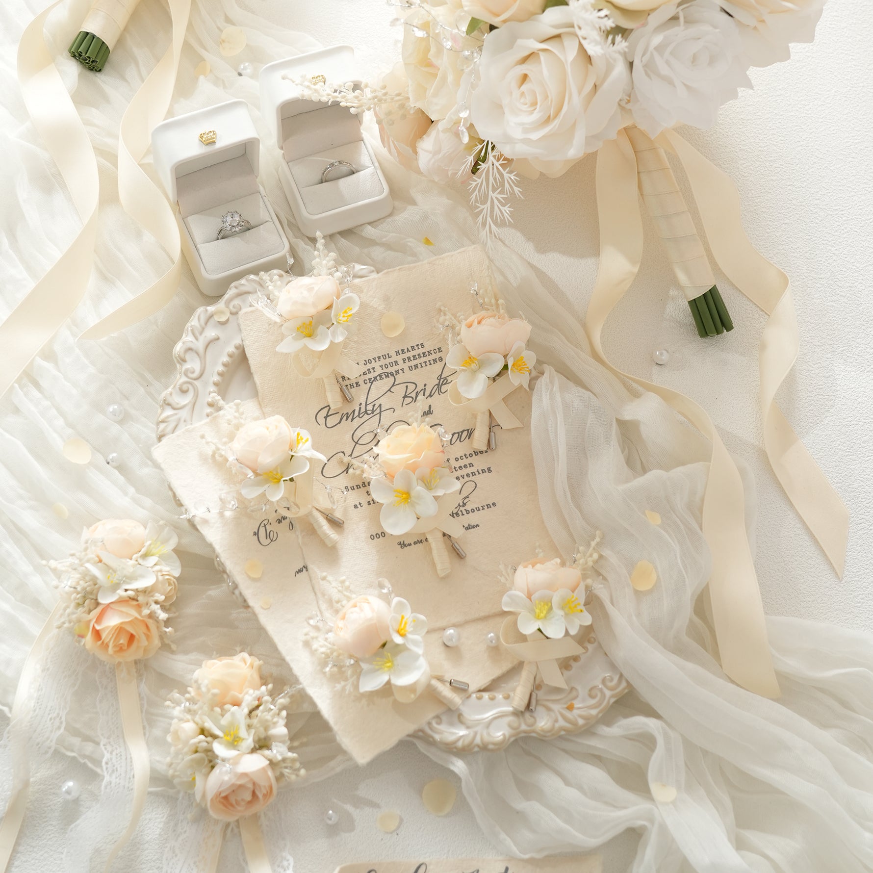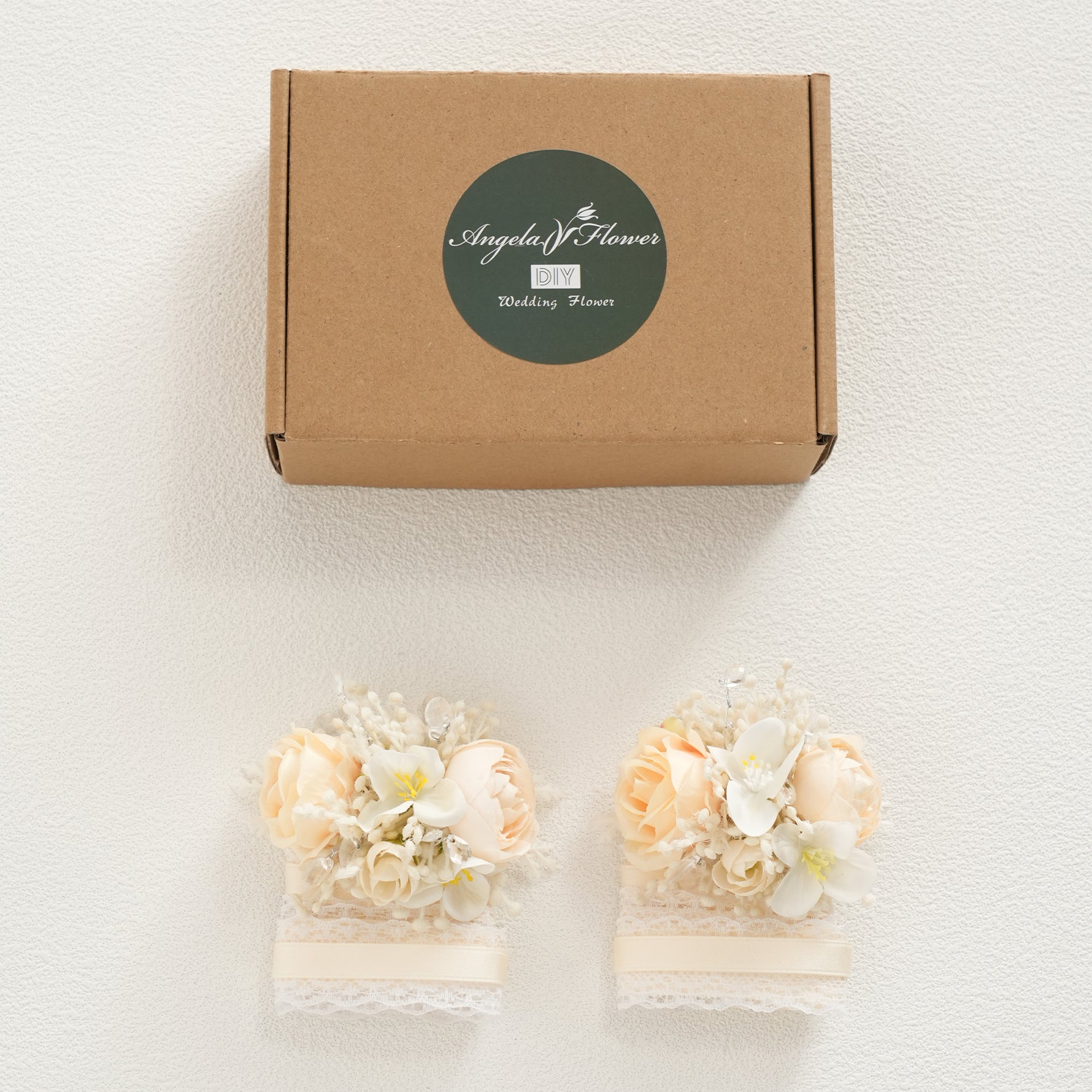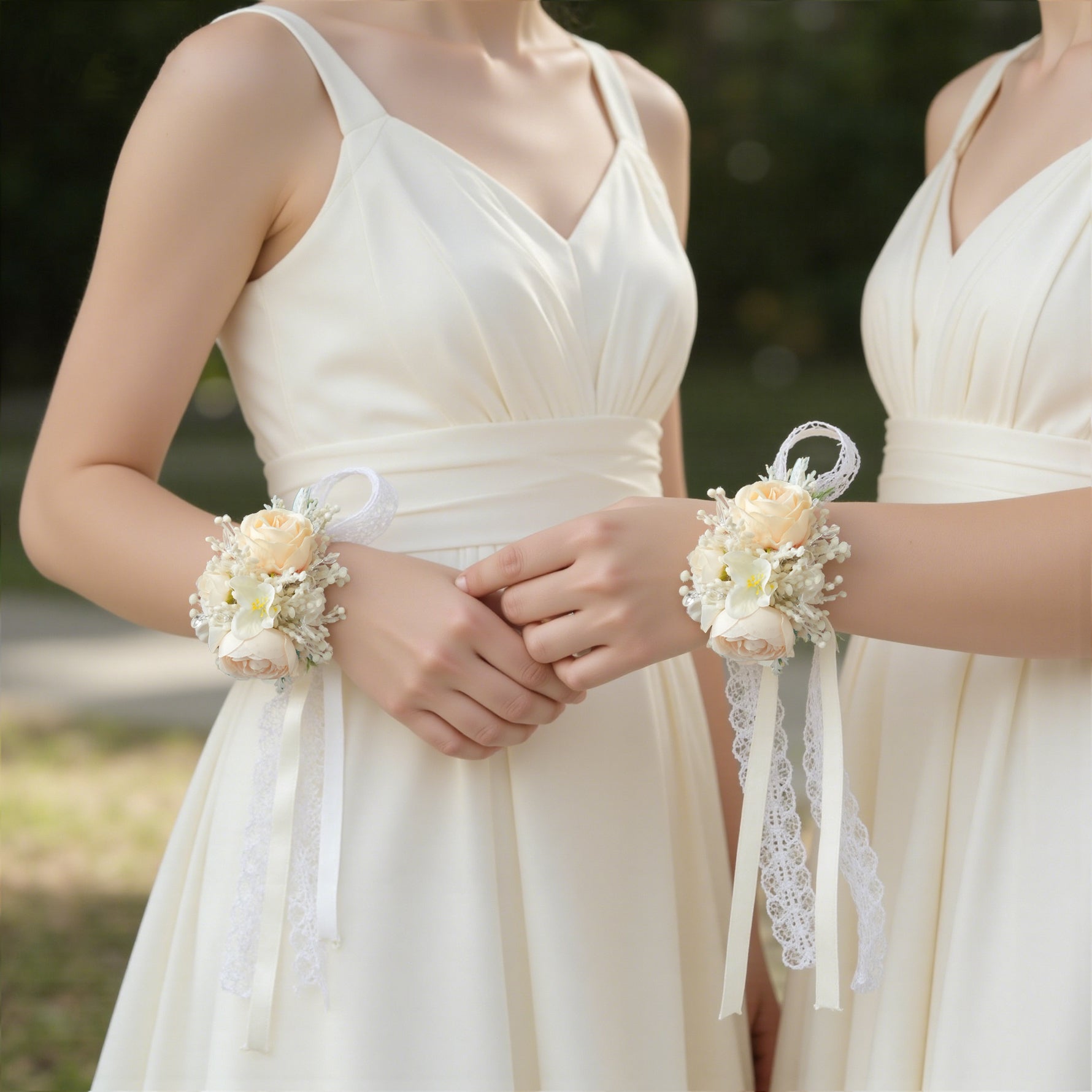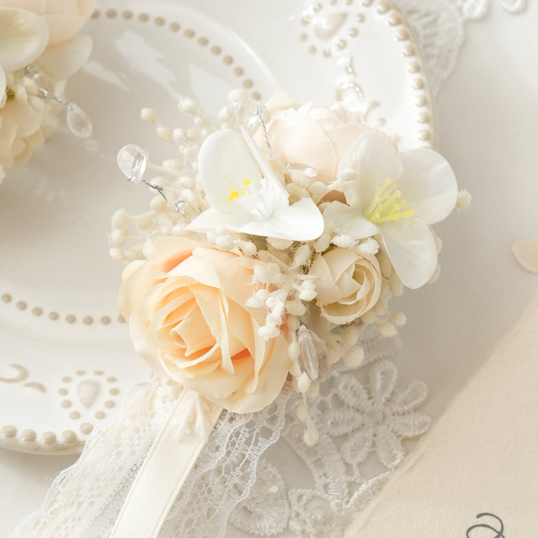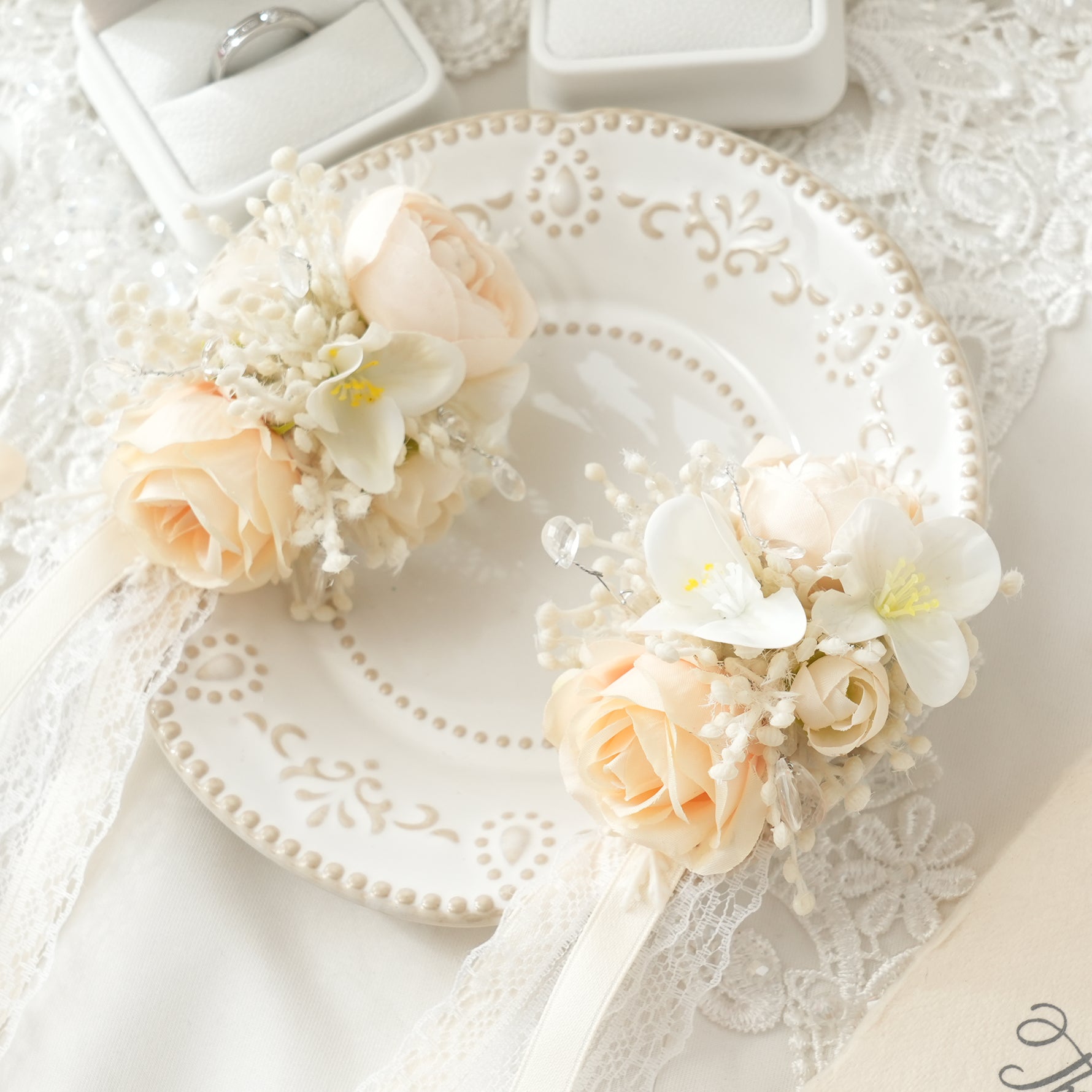 A9009 2pcs/set White Champagne Rose Corsage Wrist Flower Bridesmaid Wedding Decor