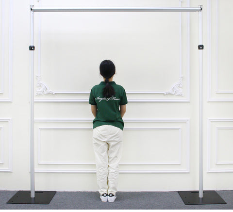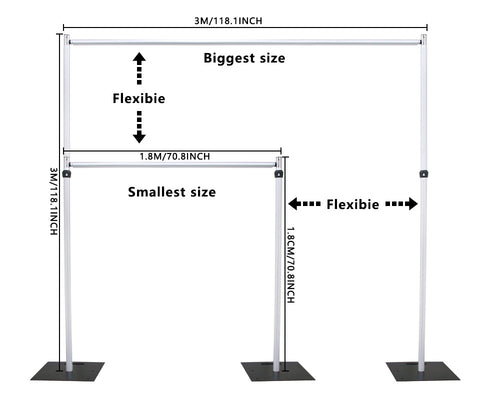 Stabila Duobla Poluso Alĝustigebla Aluminia Aloja Kadro Geedziĝa Fono Kvadrata Breto Kurteno Ŝtofo Floro Muro Stando Festo Prop Rack