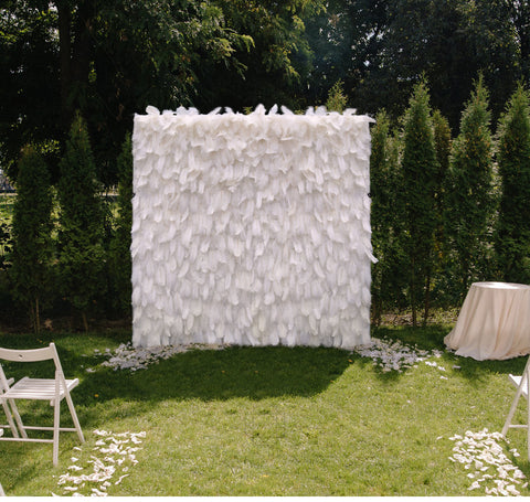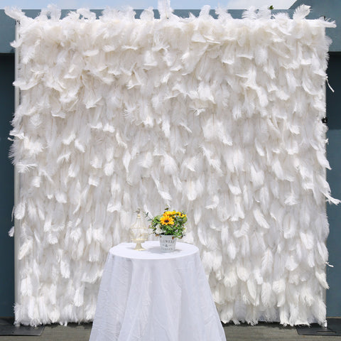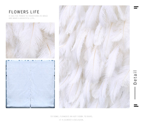 3D Blanka Pluma Ŝtofo Ruliĝanta Kurteno Flora Muro Ŝtofo Artefarita Planto Muro Geedziĝa Fono Dekoracio Festo Scena Aranĝo A049