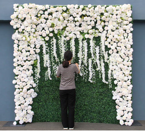 Ŝtofo Planto Muro Blanka Artefarita Rozo Ruliĝi Ŝtofo Verda Gazono Subĉiela Geedziĝa Fono Flora Muro Festo Apogi Fenestroj A068